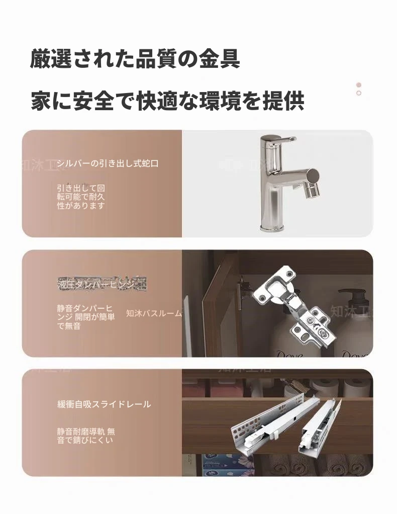 スマートミラーキャビネット+セラミック一体型ボウル-オーク130-180cm