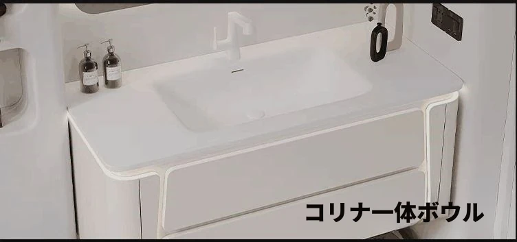 スマートミラー+セラミック一体型ボウル-オーク100cm