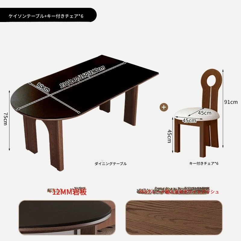 130x80x75cm/凱旋門半島ダイニングテーブル+6脚霊芝椅子