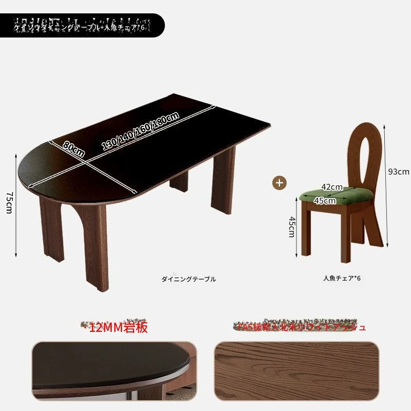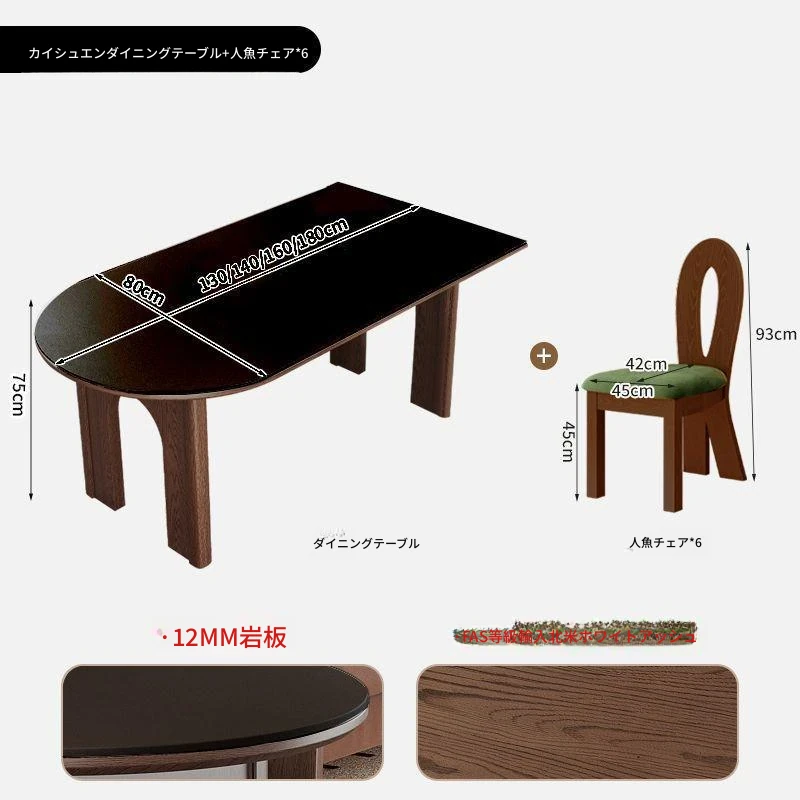 180x80x75/凱旋門半島ダイニングテーブル+6脚人魚椅子