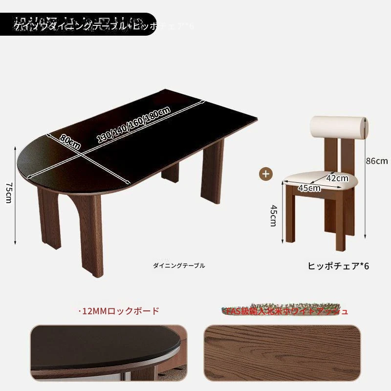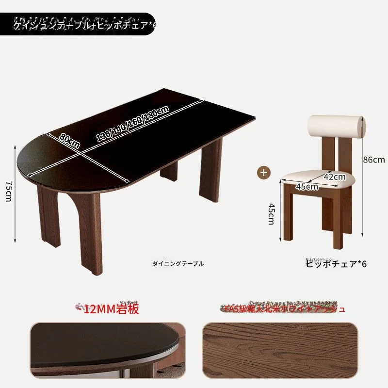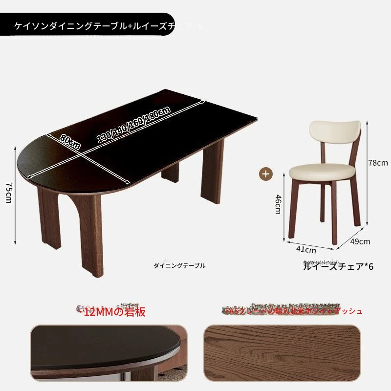180x80x75/凱旋門半島ダイニングテーブル+6脚霊芝椅子