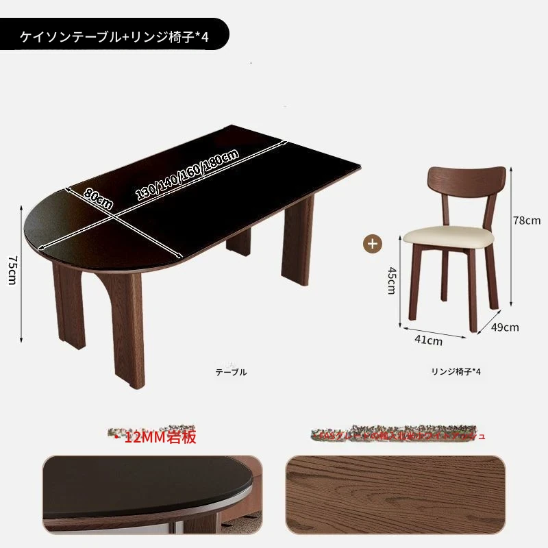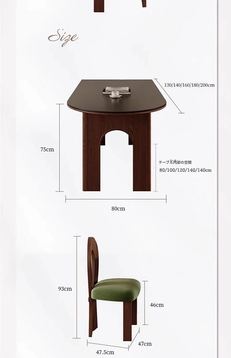 160x80x75cm/凱旋門半島ダイニングテーブル+4脚霊芝椅子