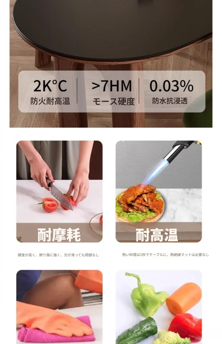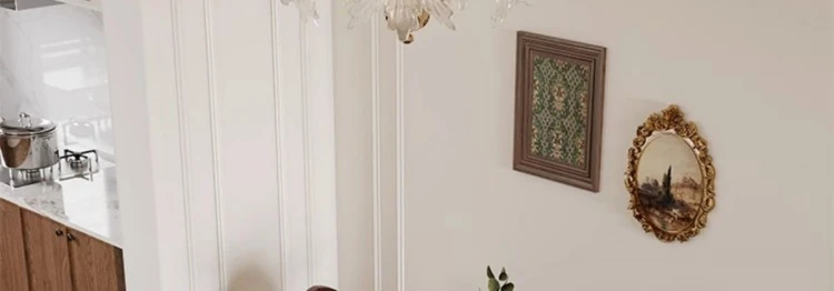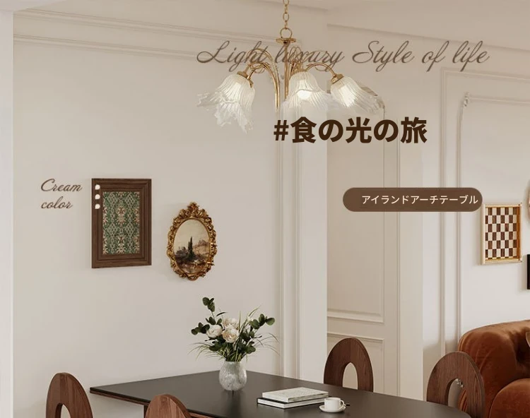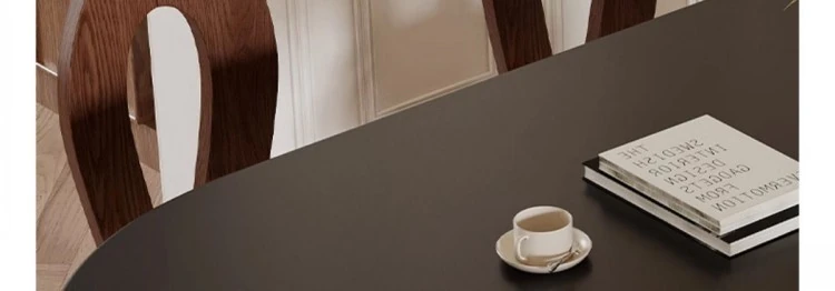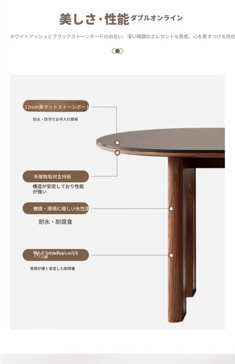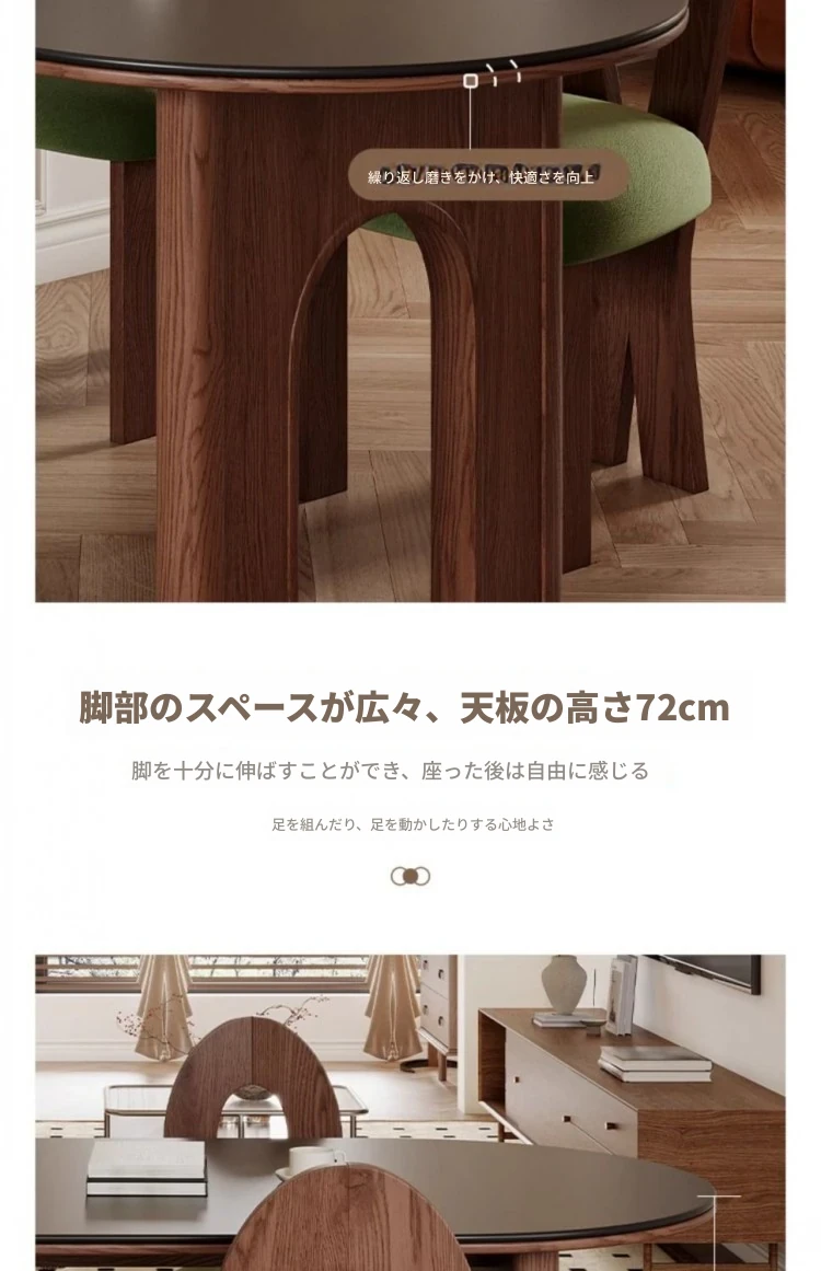 フレンチヴィンテージスタイルの壁付け半円形楕円アイランドダイニングテーブル - レトロな無垢材と岩板使用、コンパクトな小型住宅にぴったりの食卓セット!