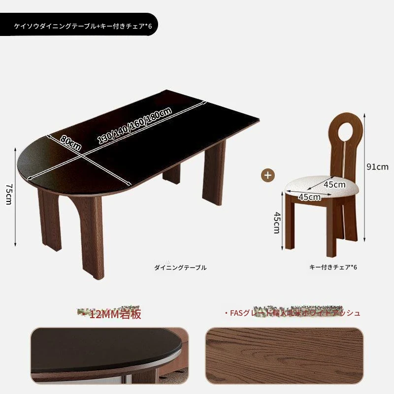 160x80x75cm/凱旋門半島ダイニングテーブル+6脚霊芝椅子