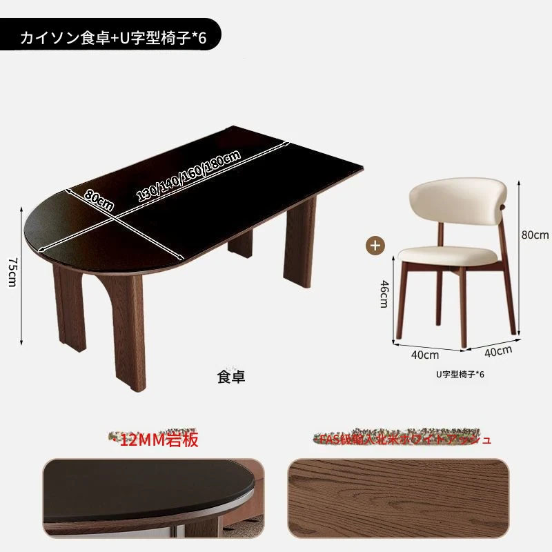 130x80x75cm/凱旋門半島ダイニングテーブル+6脚U型椅子