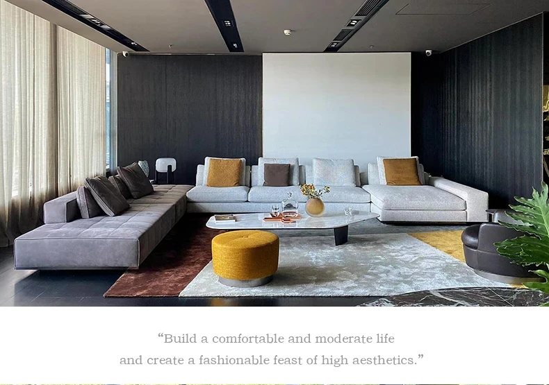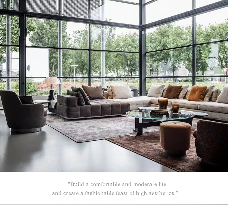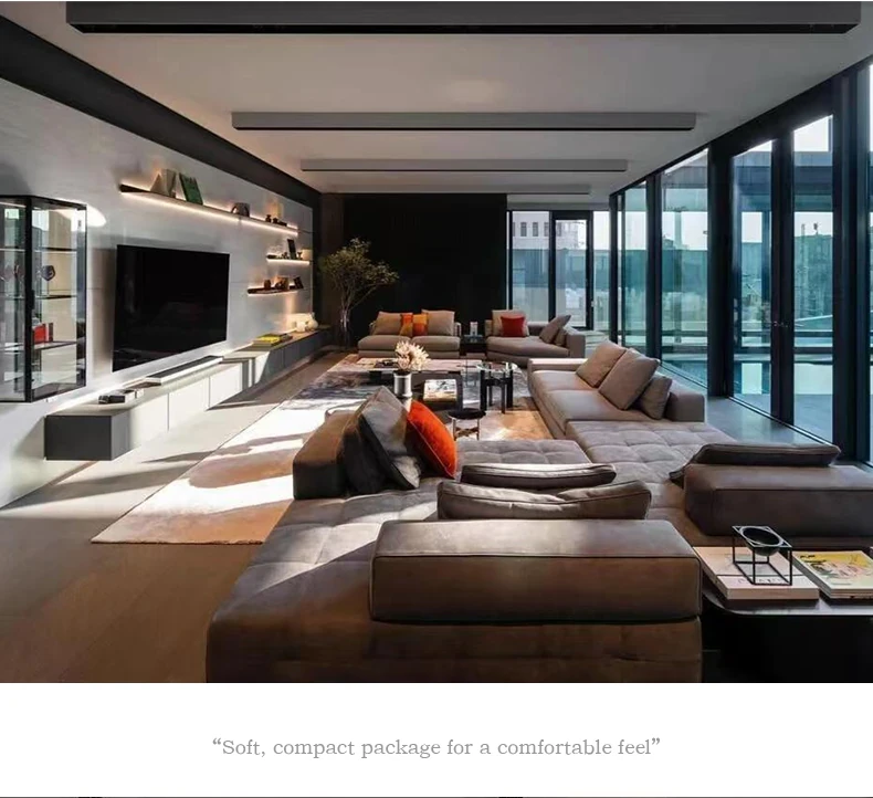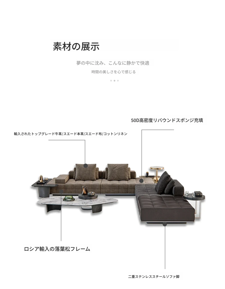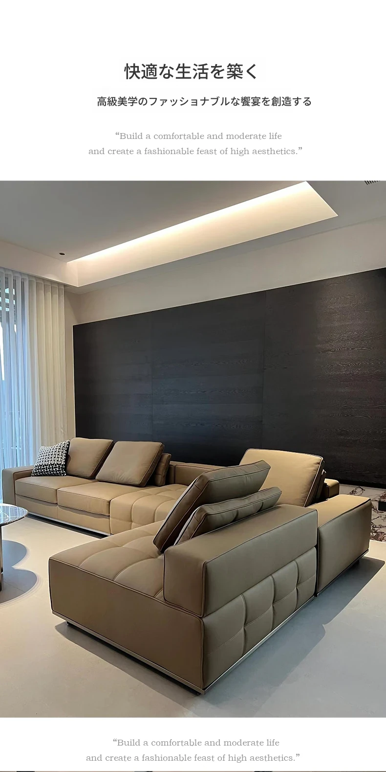 福爵 イタリアンミニマリズム ローレンスソファー 本革使用 リビング用 ヴィラ&広々としたフラットに最適なカウチコンビネーション