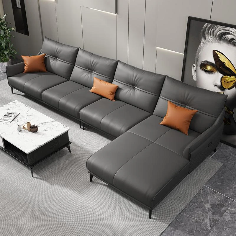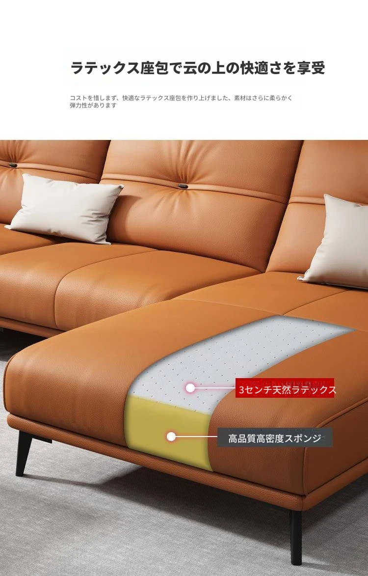 本革使用!イタリアンミニマリズムデザインの高級レザーコーナーソファ - モダンでシンプル、リビングルームにぴったりのコンパクトサイズ。ラグジュアリーなラテックスクッションで快適な座り心地を実現!