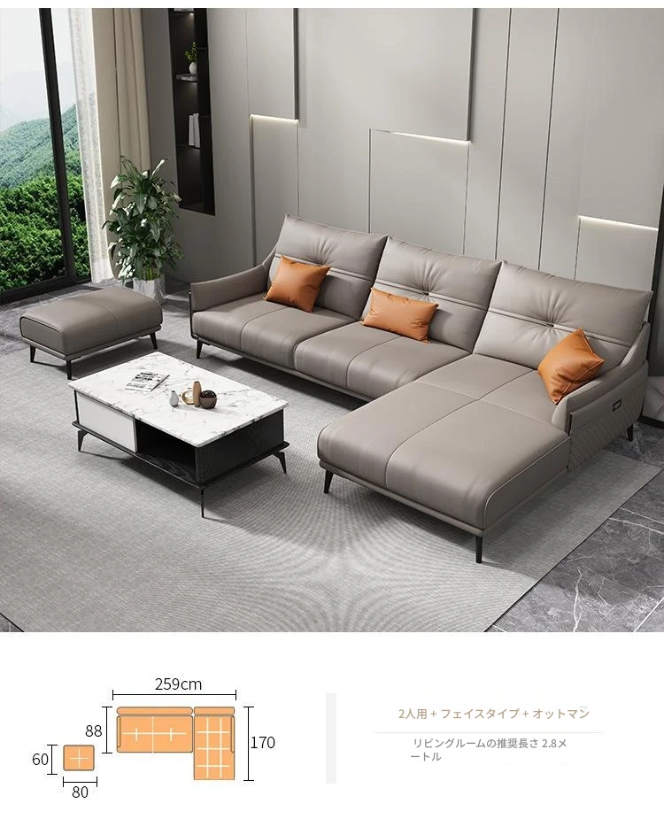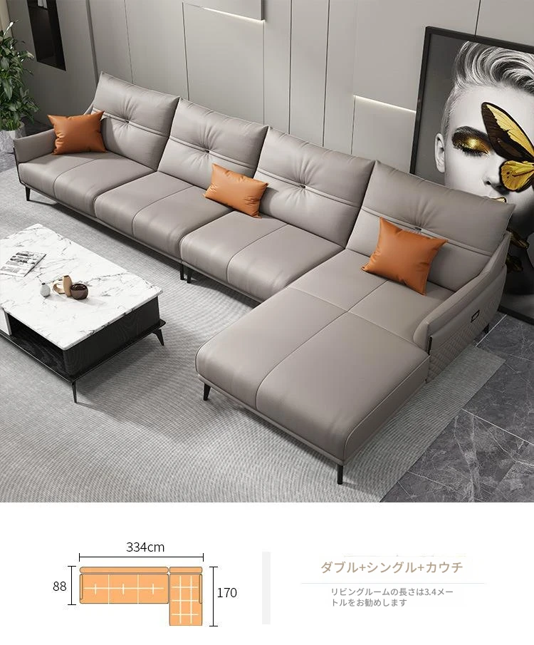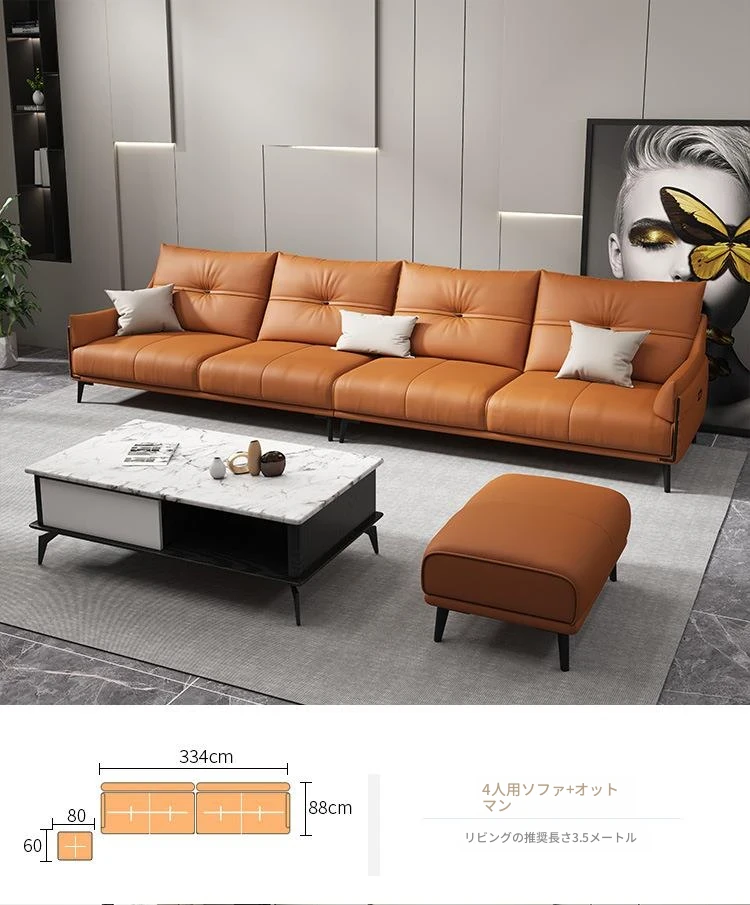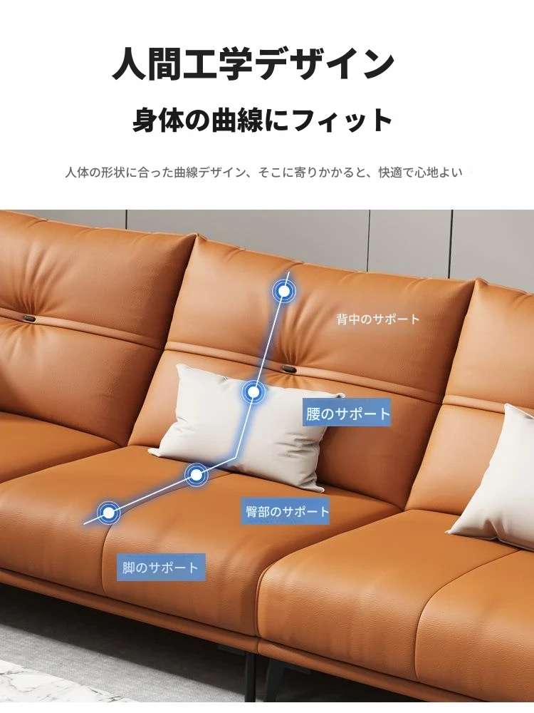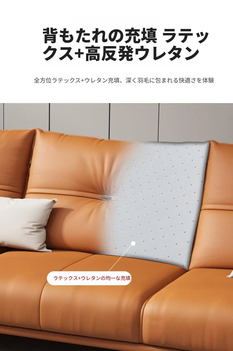 接触面(輸入)本革+全実木内枠+高密度スポンジ+電鍍加工ソファ脚