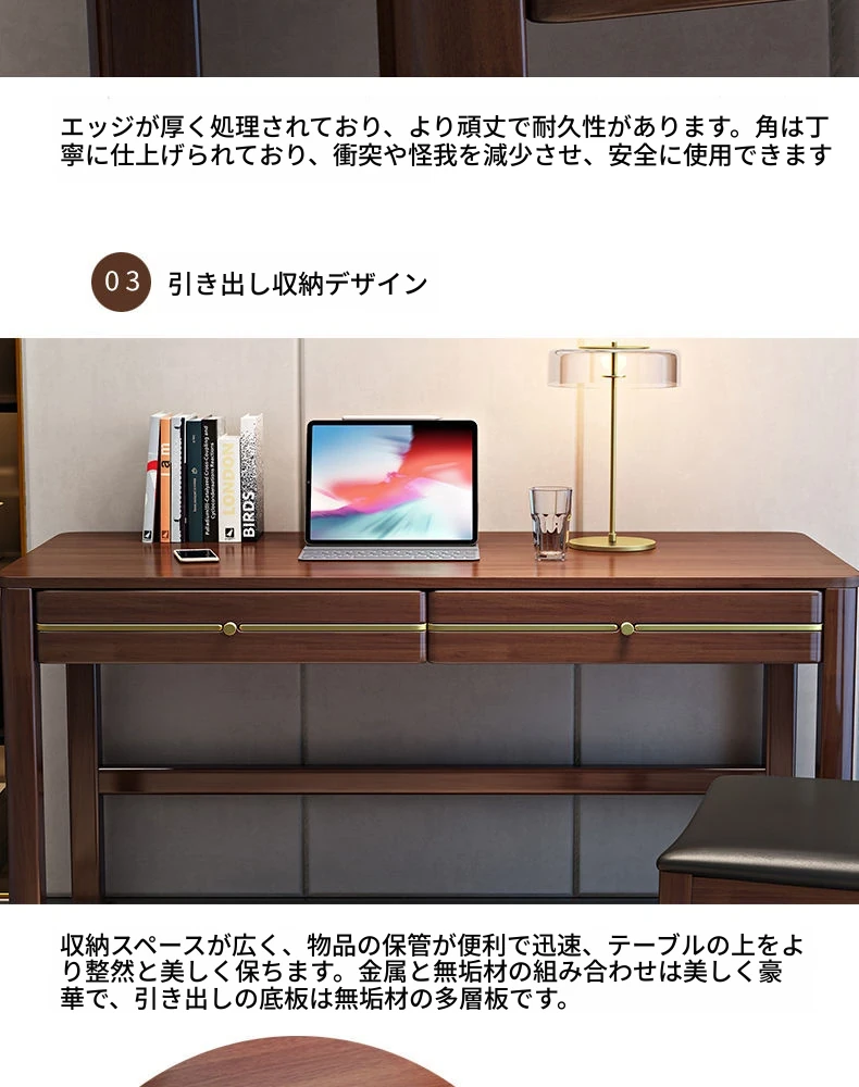 高級感溢れる中華スタイルの無垢材デスク - 新しい寝室や書斎に最適!自宅での快適な作業空間を実現する、スタイリッシュな書き物台。コンピューターデスクとしても大活躍!