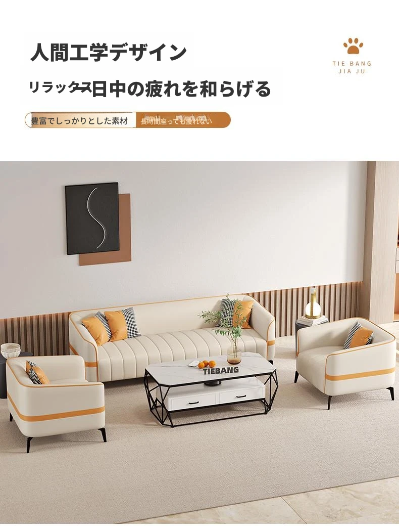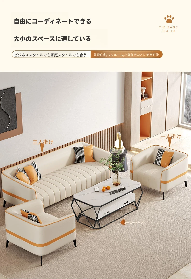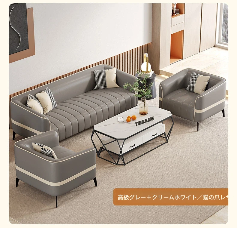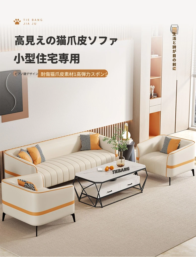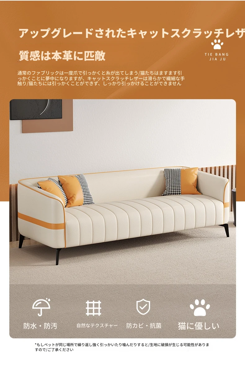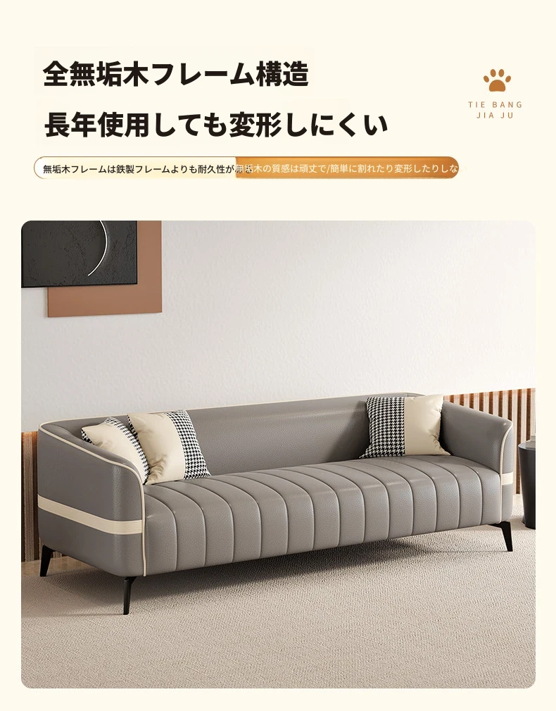 鉄邦の猫爪皮ソファ - 小型住宅にぴったり!シンプルでモダンなデザイン、2人掛け・3人掛けも対応。ピアノ鍵盤スタイルで、くつろぎながらおしゃれな空間を演出します。
