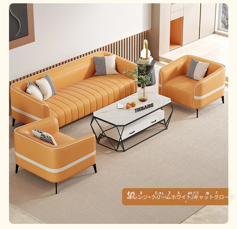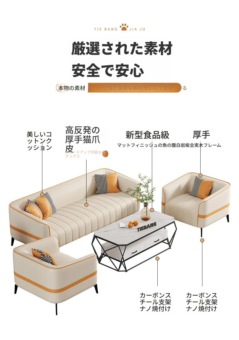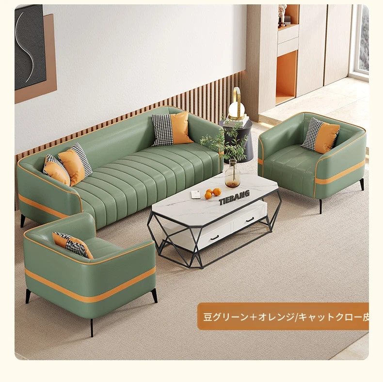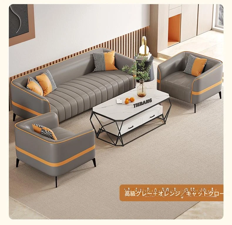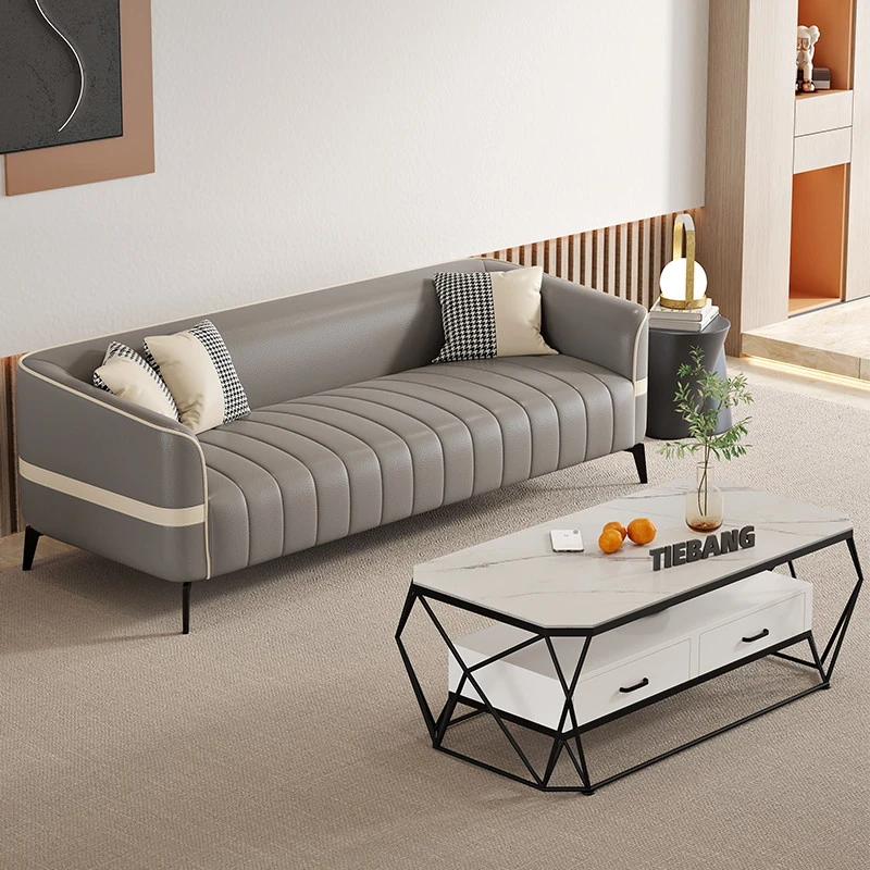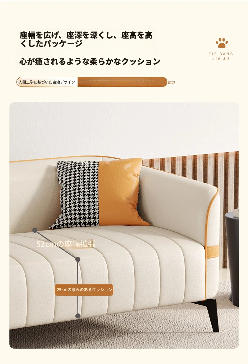 鉄邦の猫爪皮ソファ - 小型住宅にぴったり!シンプルでモダンなデザイン、2人掛け・3人掛けも対応。ピアノ鍵盤スタイルで、くつろぎながらおしゃれな空間を演出します。