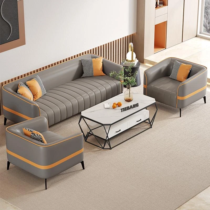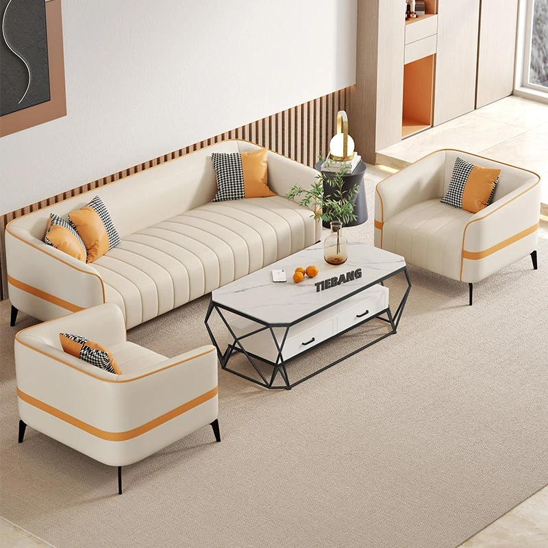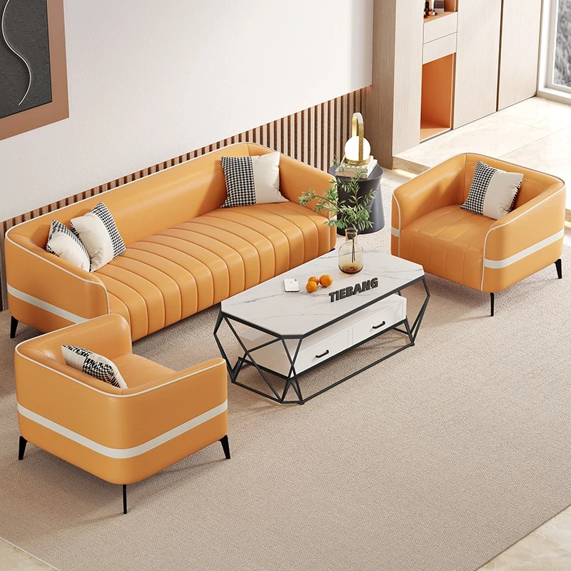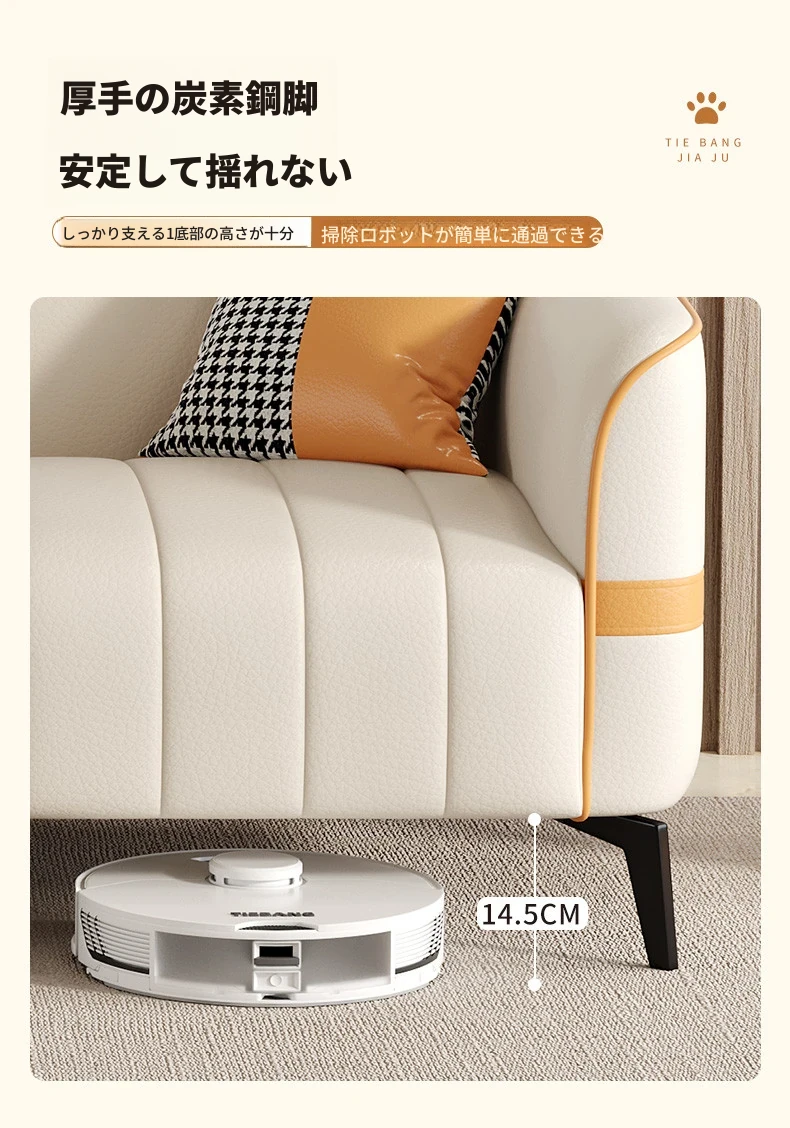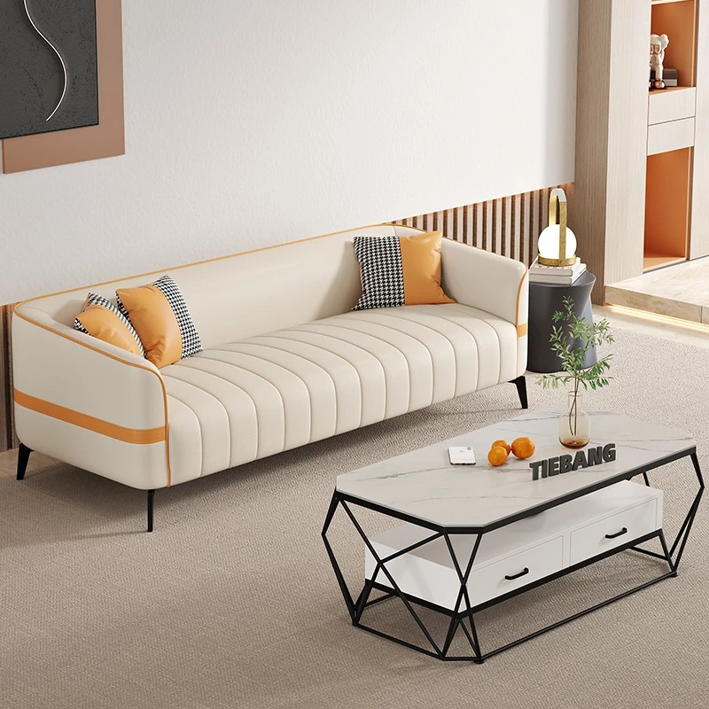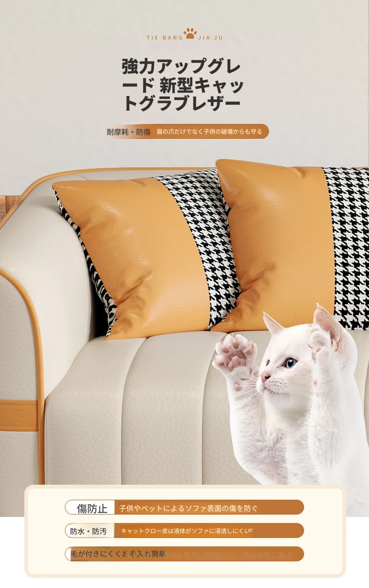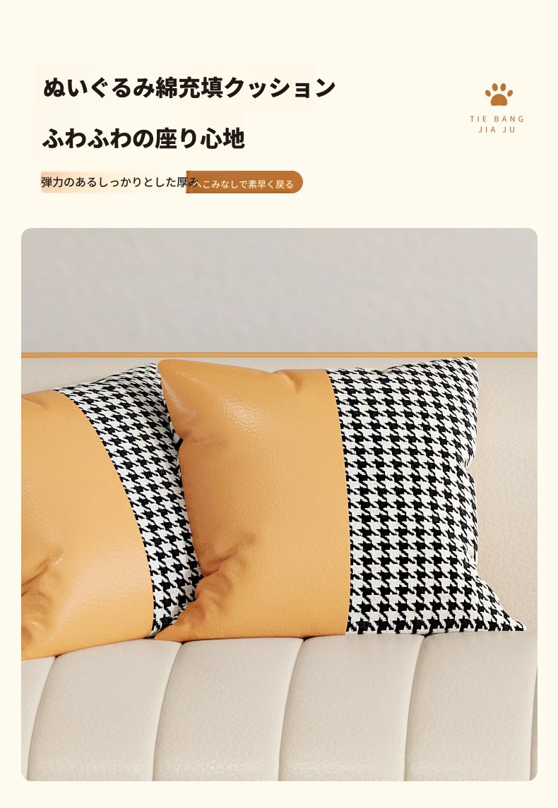 鉄邦の猫爪皮ソファ - 小型住宅にぴったり!シンプルでモダンなデザイン、2人掛け・3人掛けも対応。ピアノ鍵盤スタイルで、くつろぎながらおしゃれな空間を演出します。