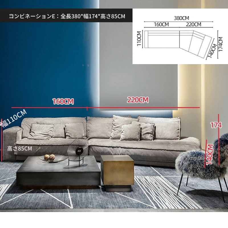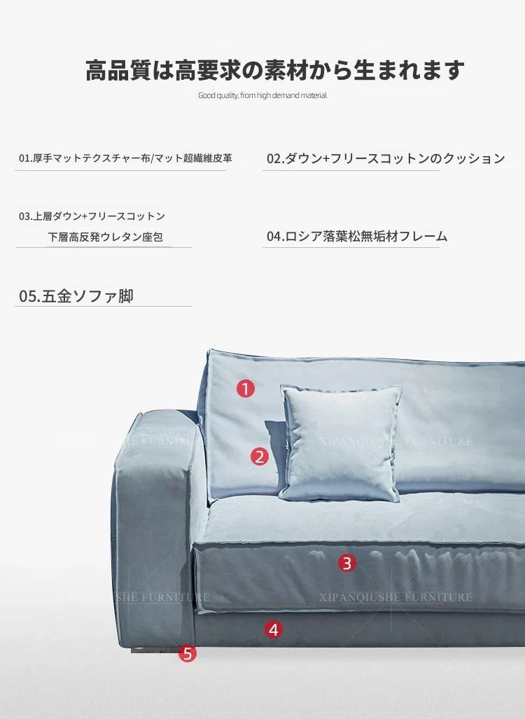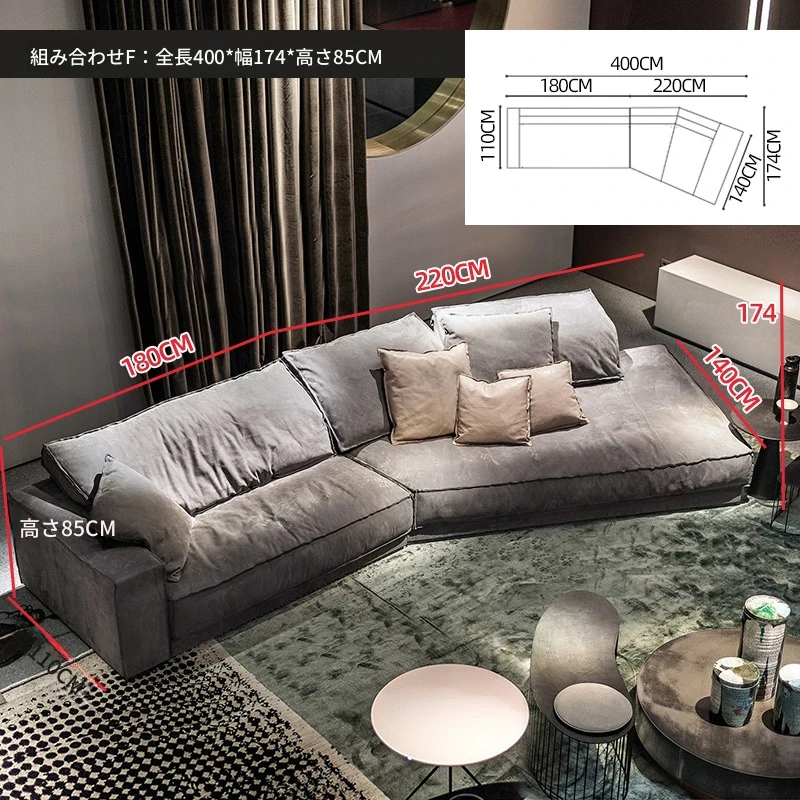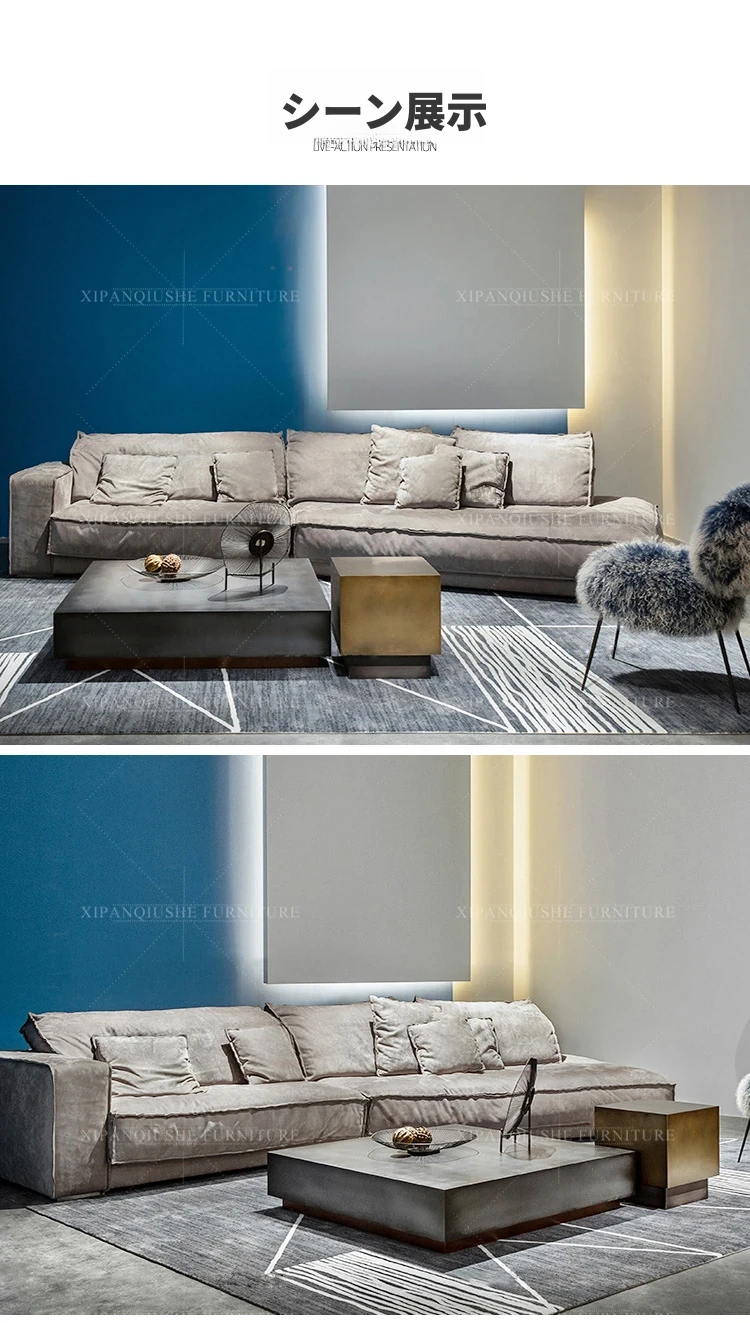 イタリア製B-Kater技術の布張りXソファ S050異形コーナー、シンプルでエレガントなイタリアンスタイルの軽奢羽毛ソファ!あなたのリビングに洗練された雰囲気をプラスします。