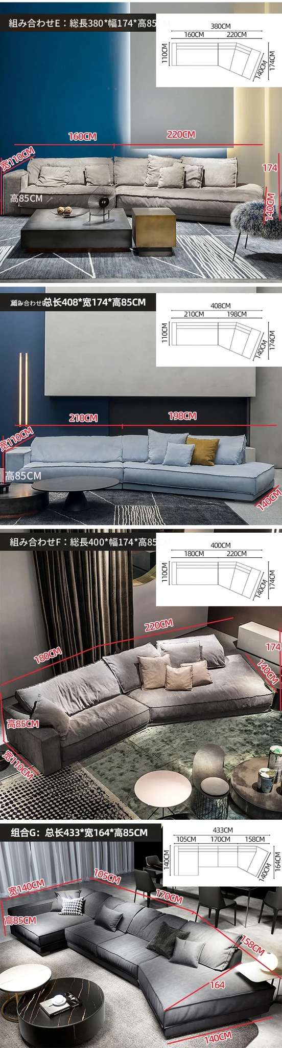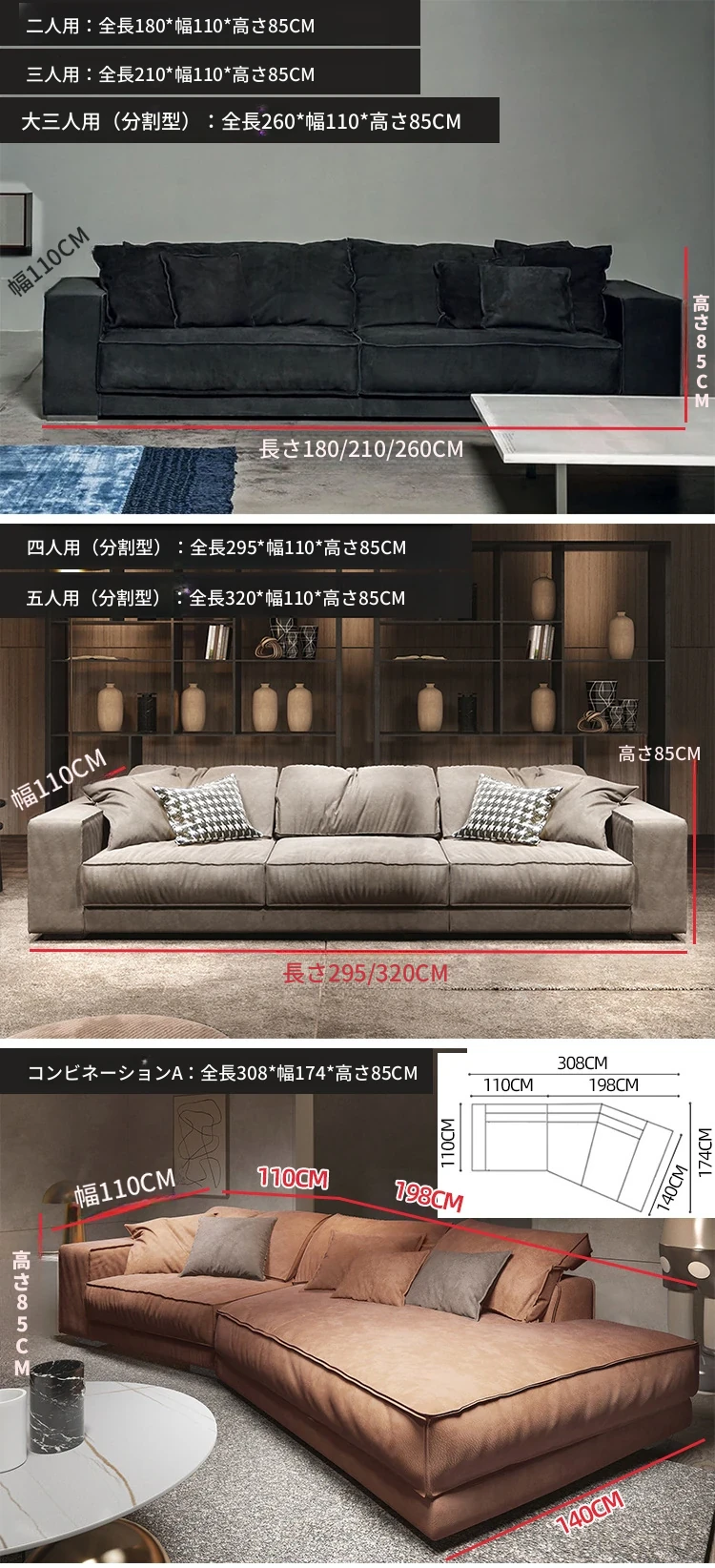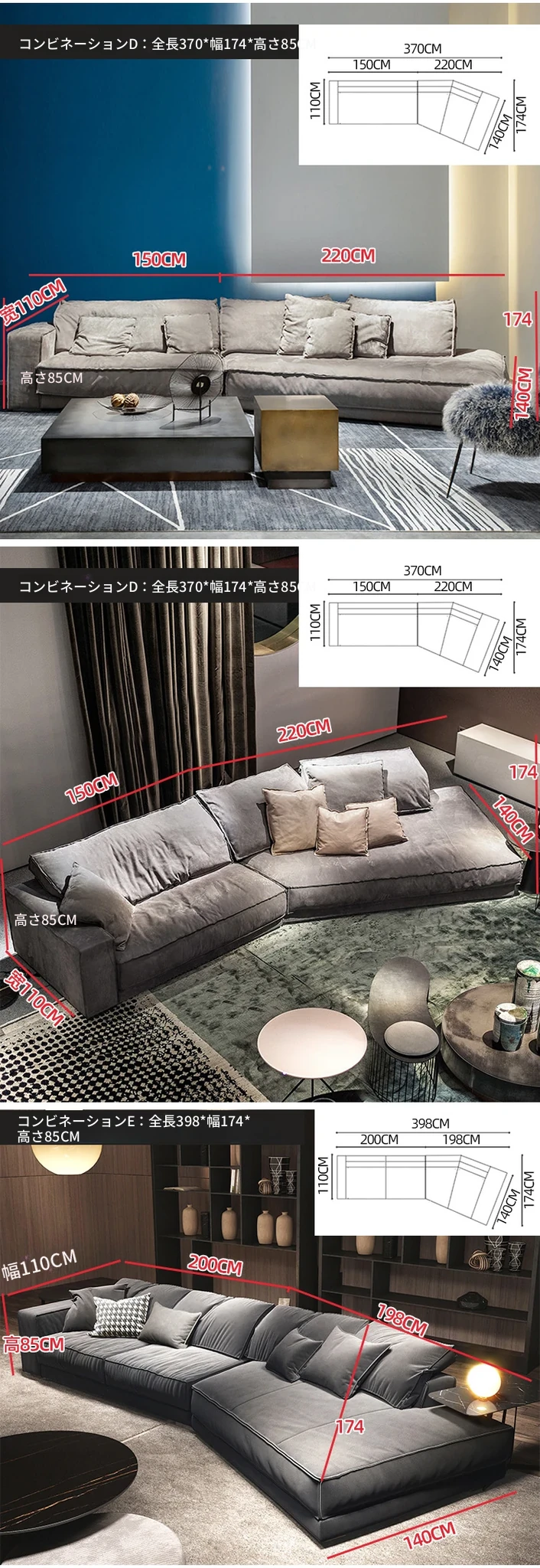 セットD:3.88メートル(直線1.9メートル(2つの座包)+コーナー1.98メートル)