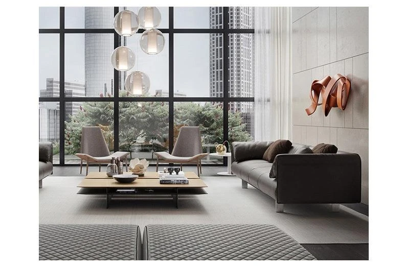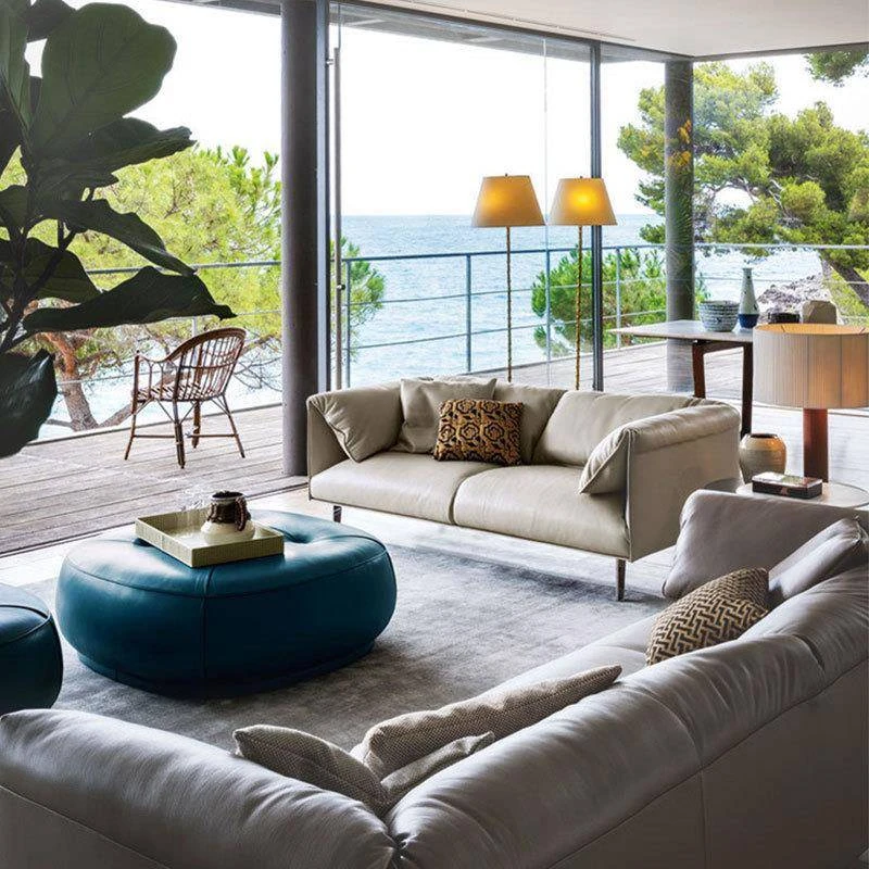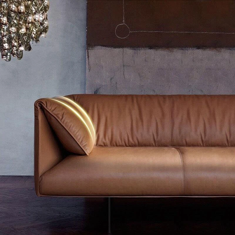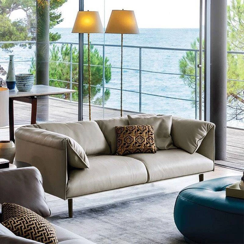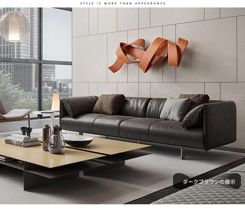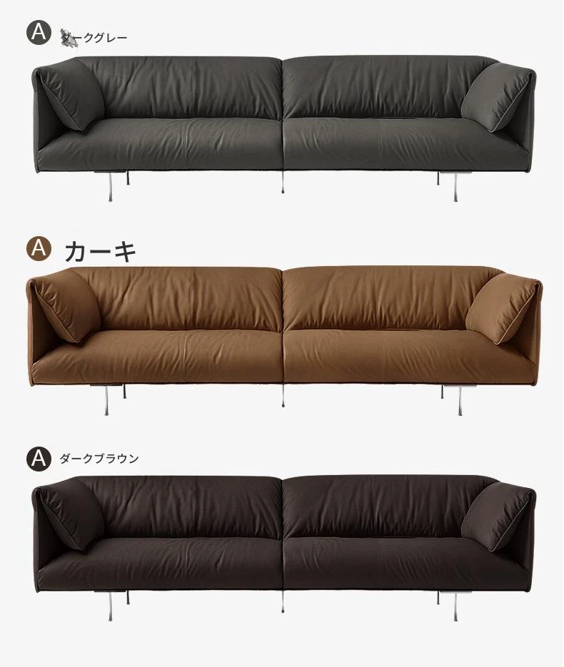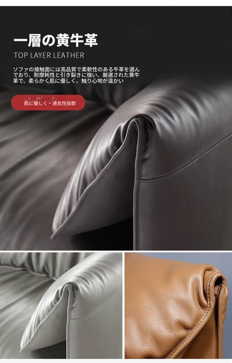 イタリアンミニマリズム3人掛け本革ソファ - モダンでシンプルなリビングや寝室に最適!中小型住宅にもピッタリな高級牛革ソファセット。スタイリッシュな空間を演出します!
