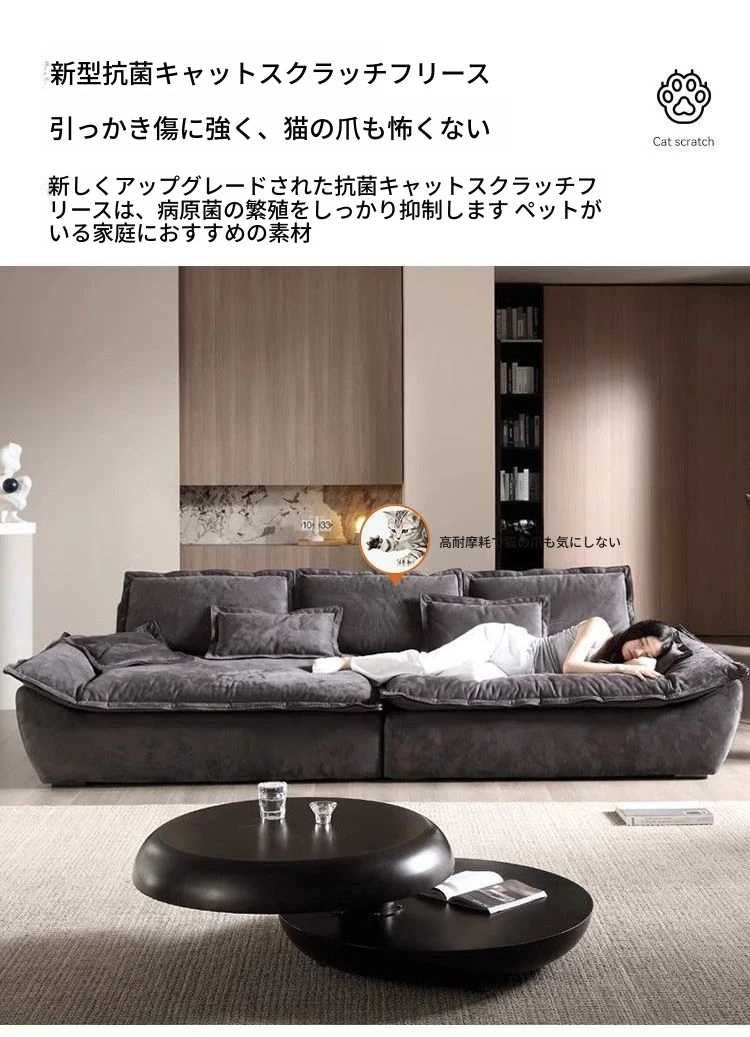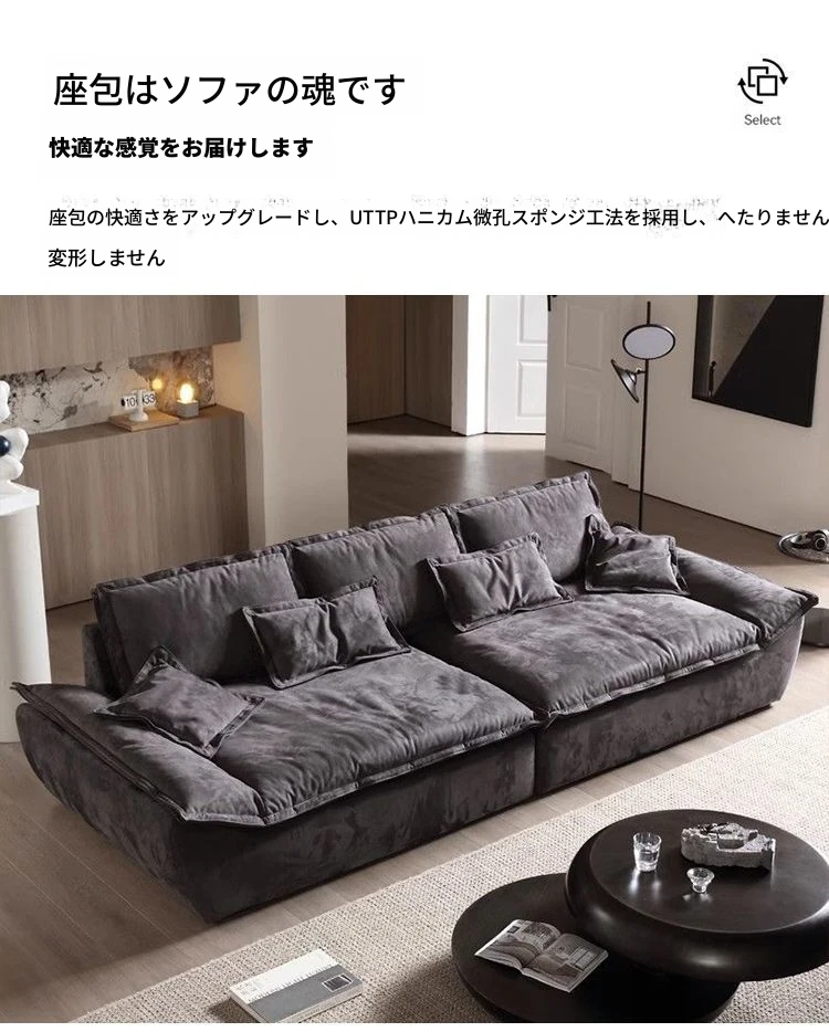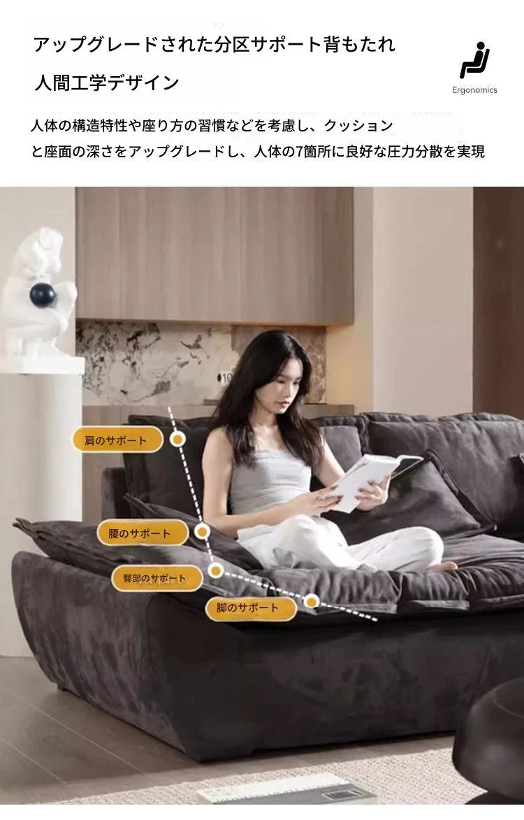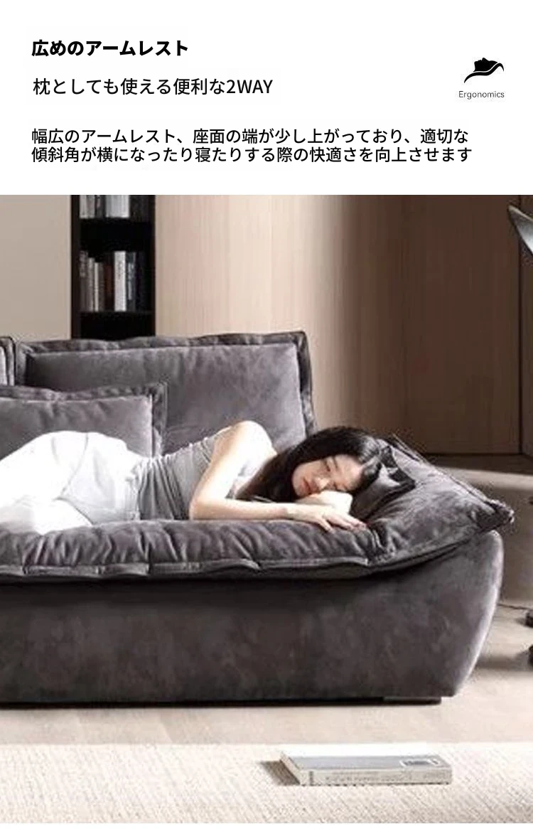 イタリアンミニマリズムのテクノロジー布製ソファ - モダンでシンプルなデザイン、狭いリビングにもぴったりな3人掛け直線型セーリングソファ。快適さとスタイルを両立し、あなたの家を洗練された空間に変えます。