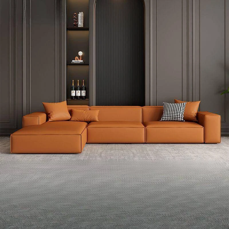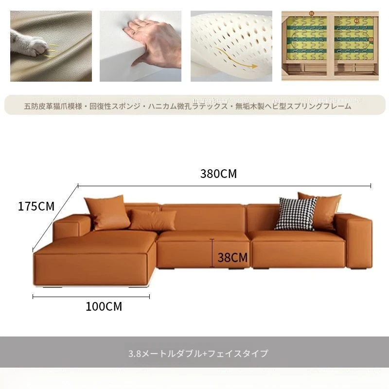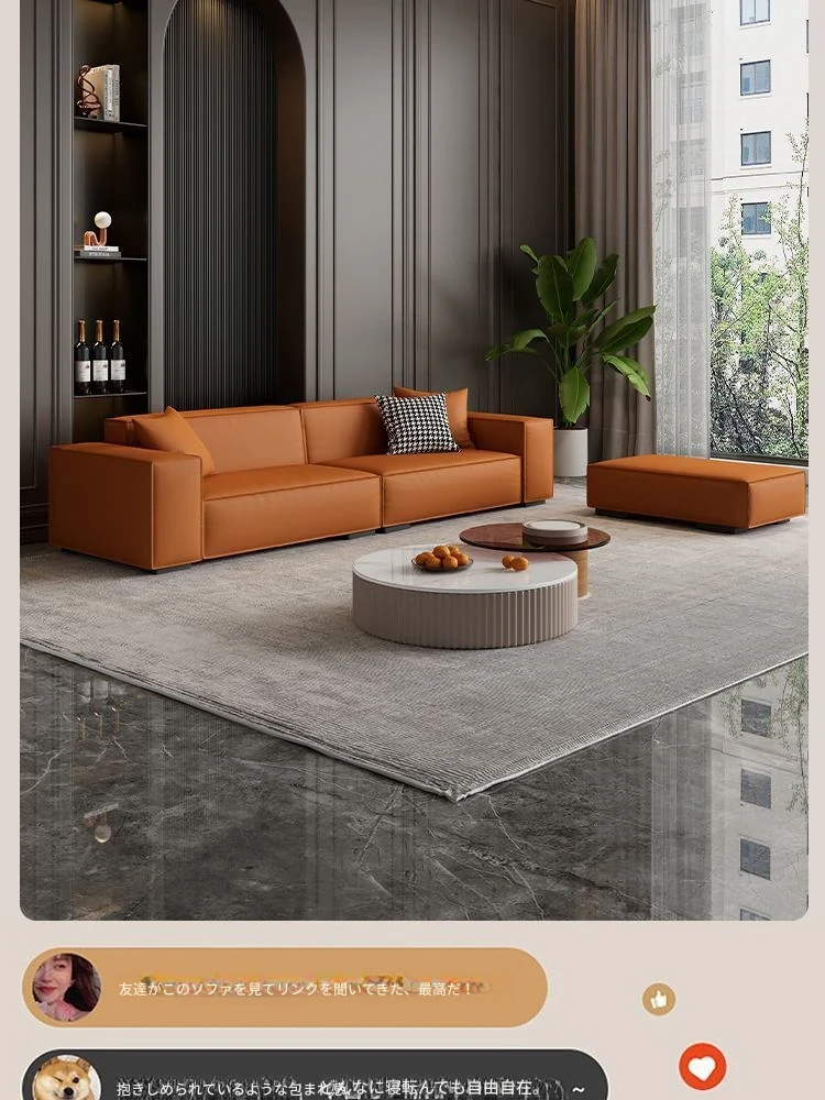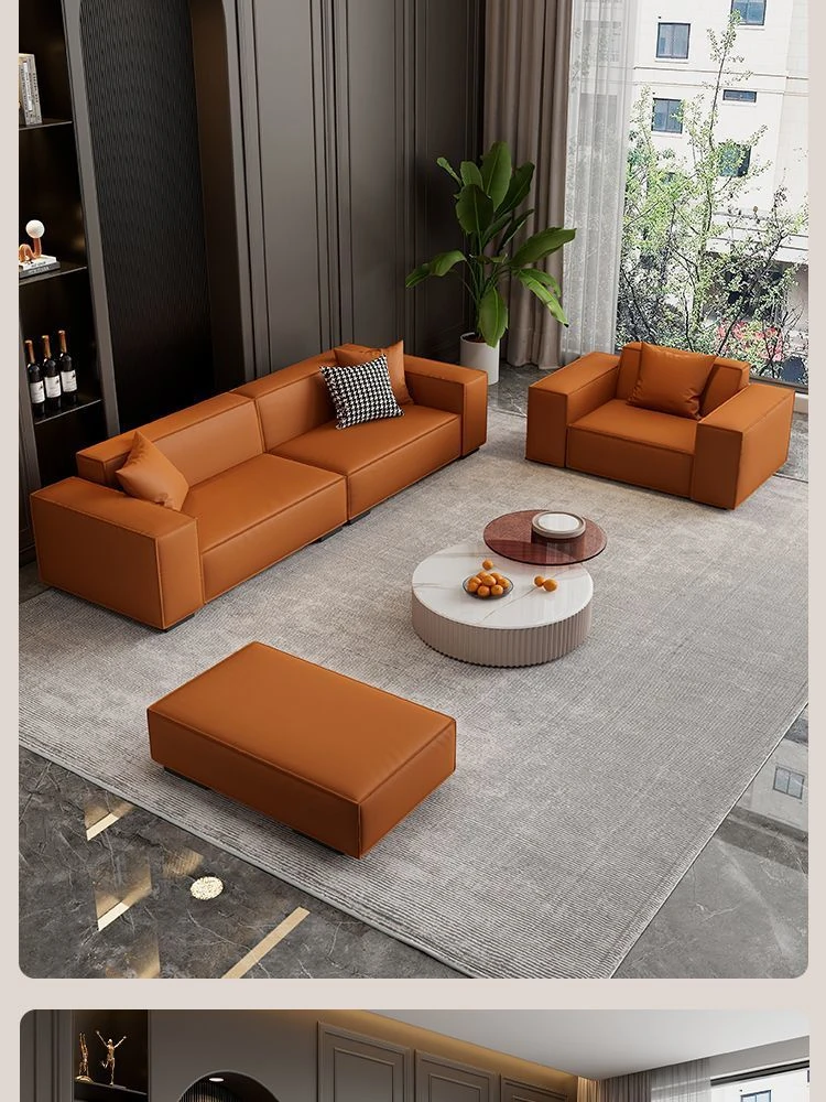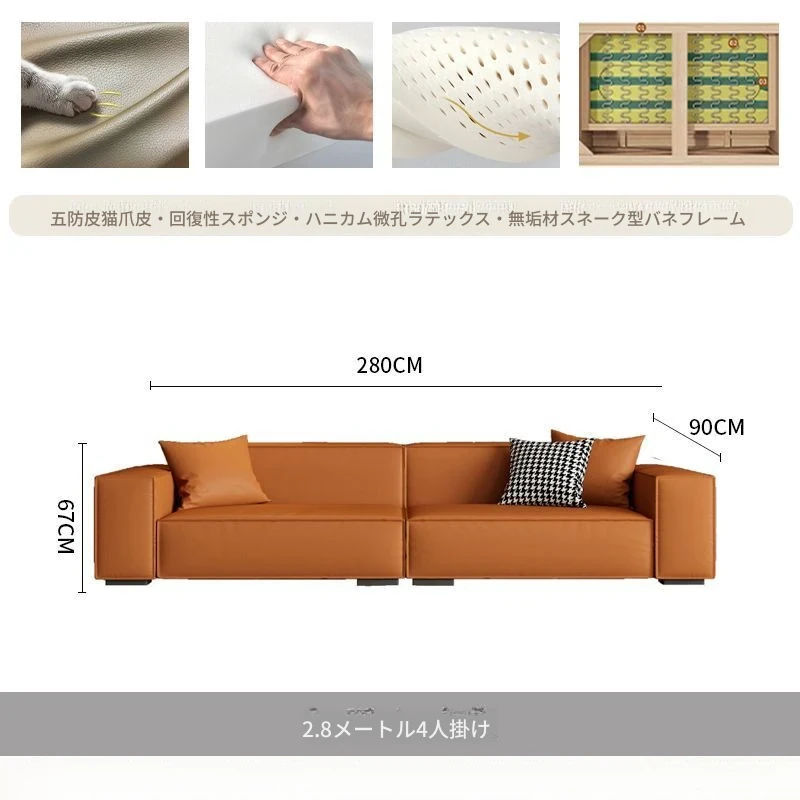 イタリアン軽奢華現代高級猫爪レザーソファー 小型リビングにぴったりの高級豆腐ブロック直置きデザイン フェミニンな貴妃ソファで、おしゃれで快適な空間を演出!