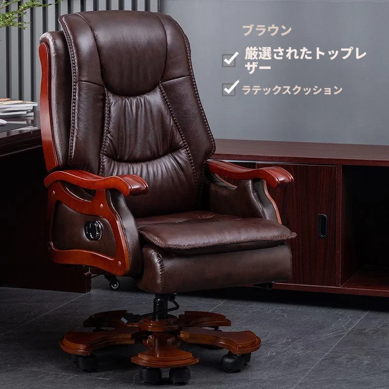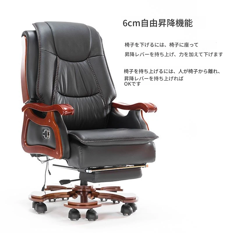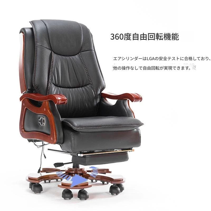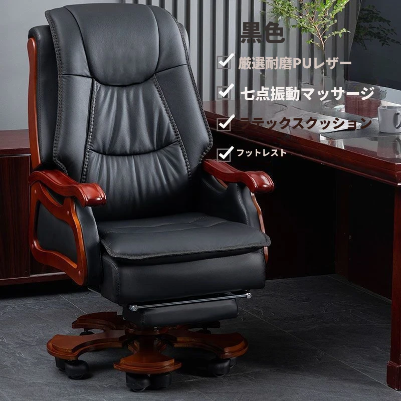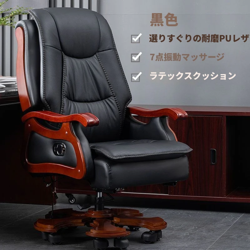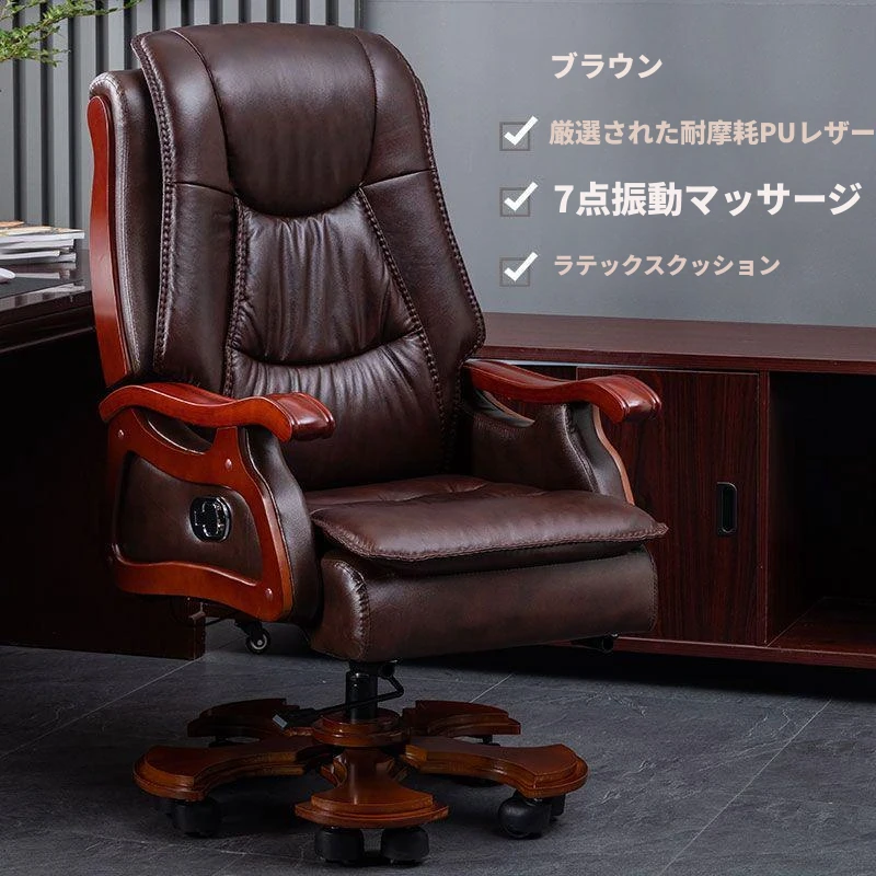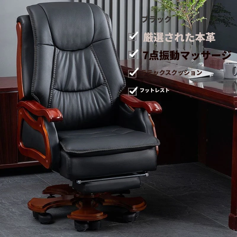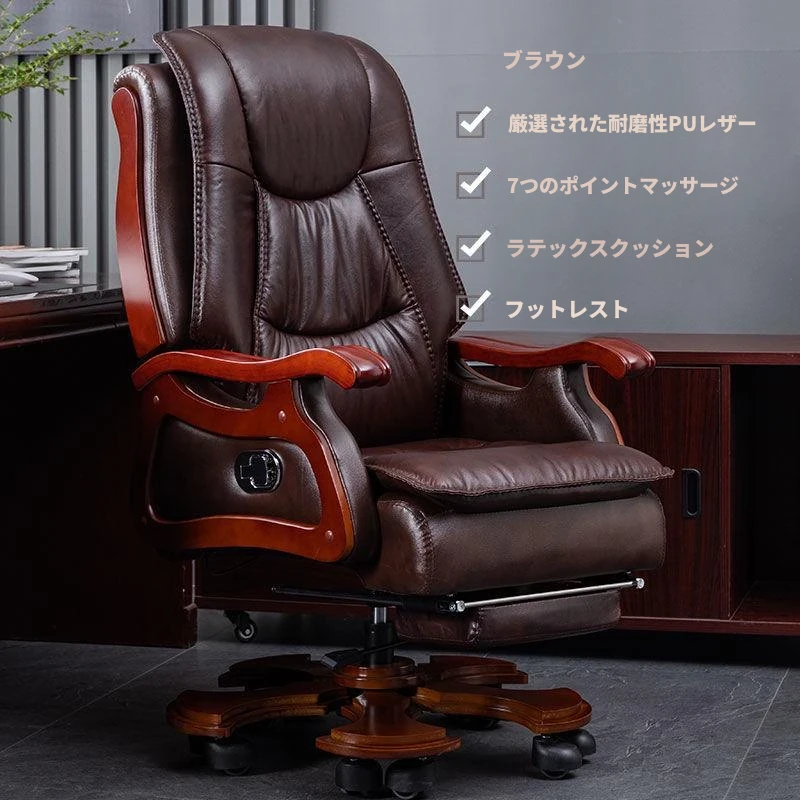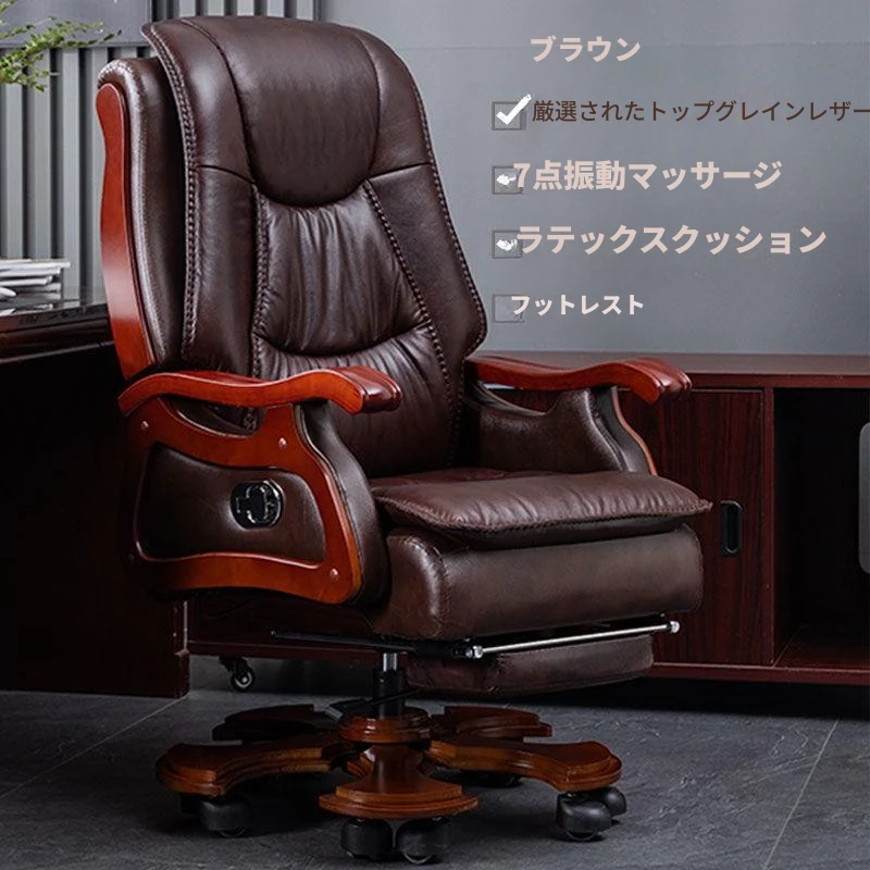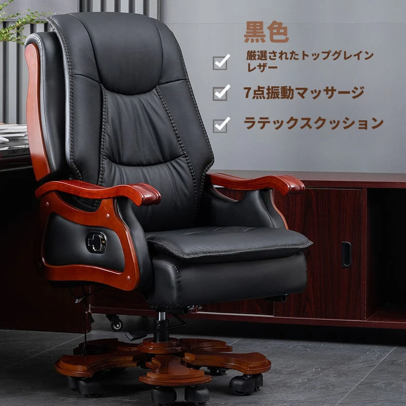 高級本革ビジネスチェア - リラックスできるマッサージ機能付き、在宅勤務にも最適!長時間の座り作業も快適にサポートするエレガントなデザインのオフィスチェア。