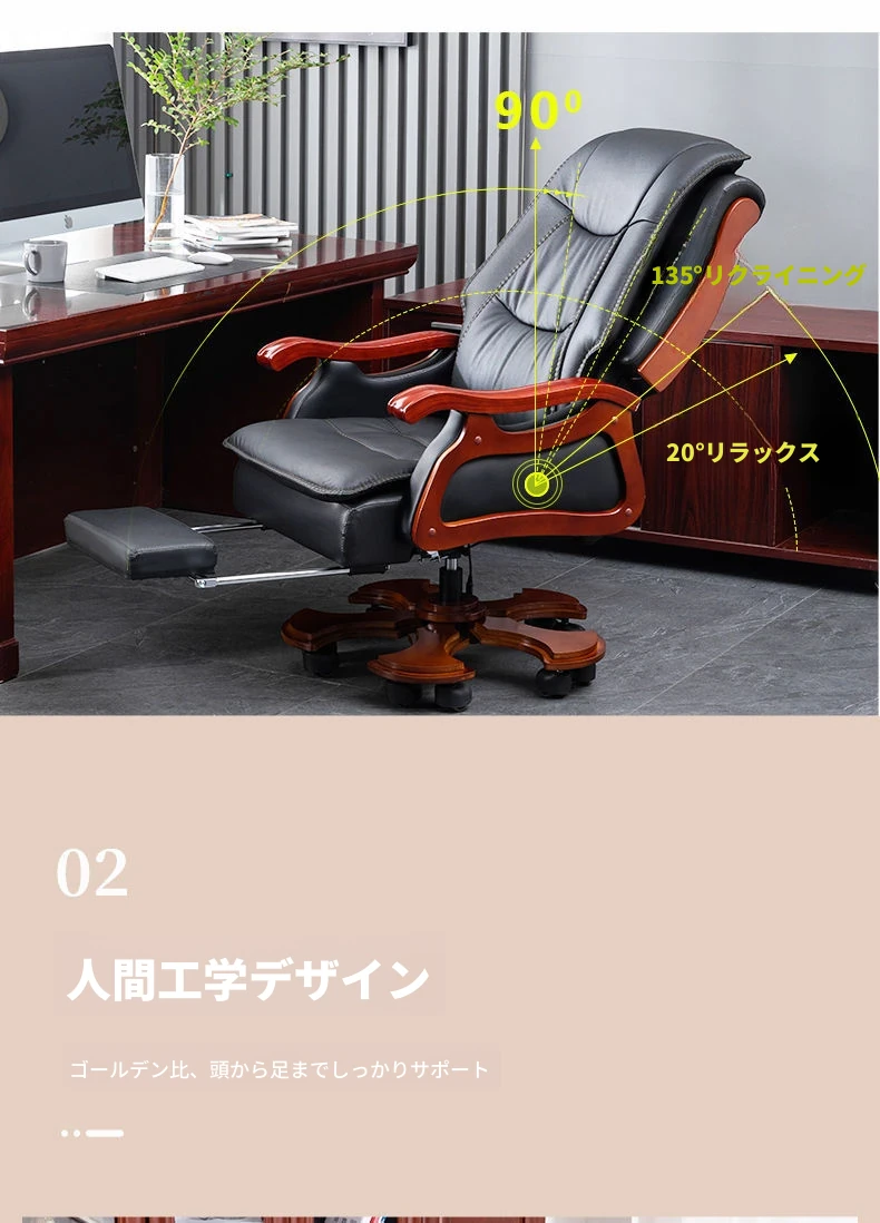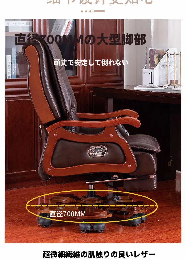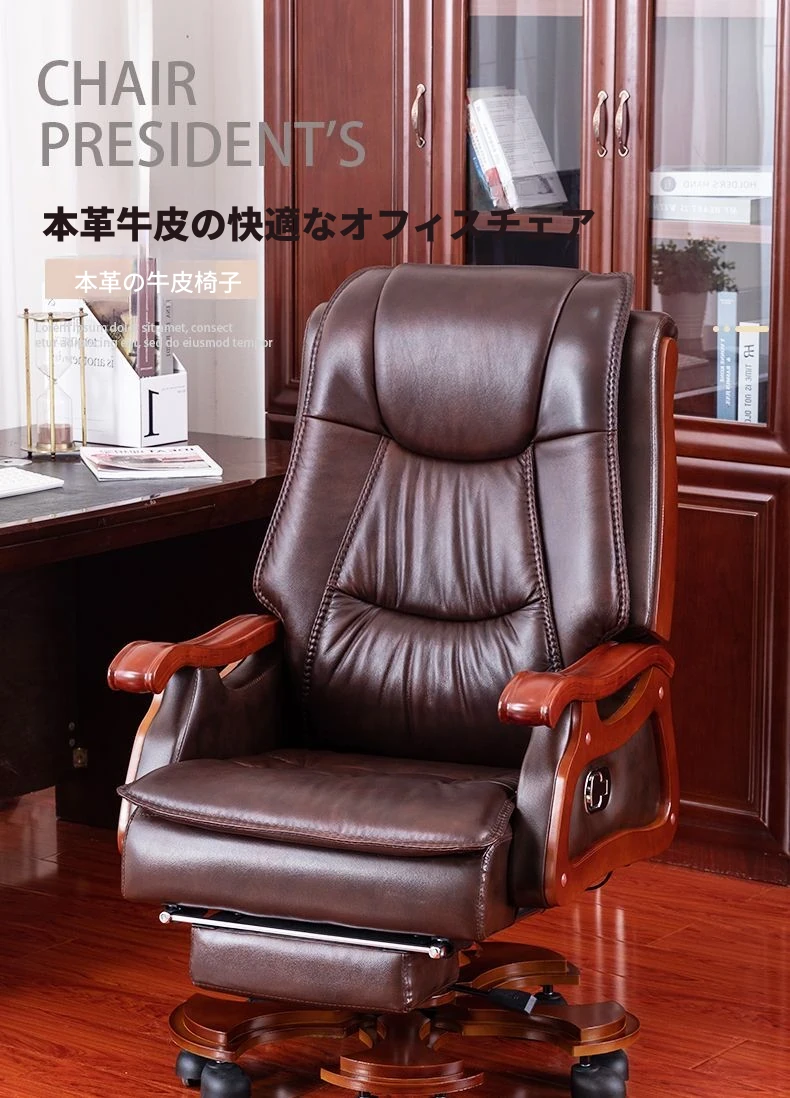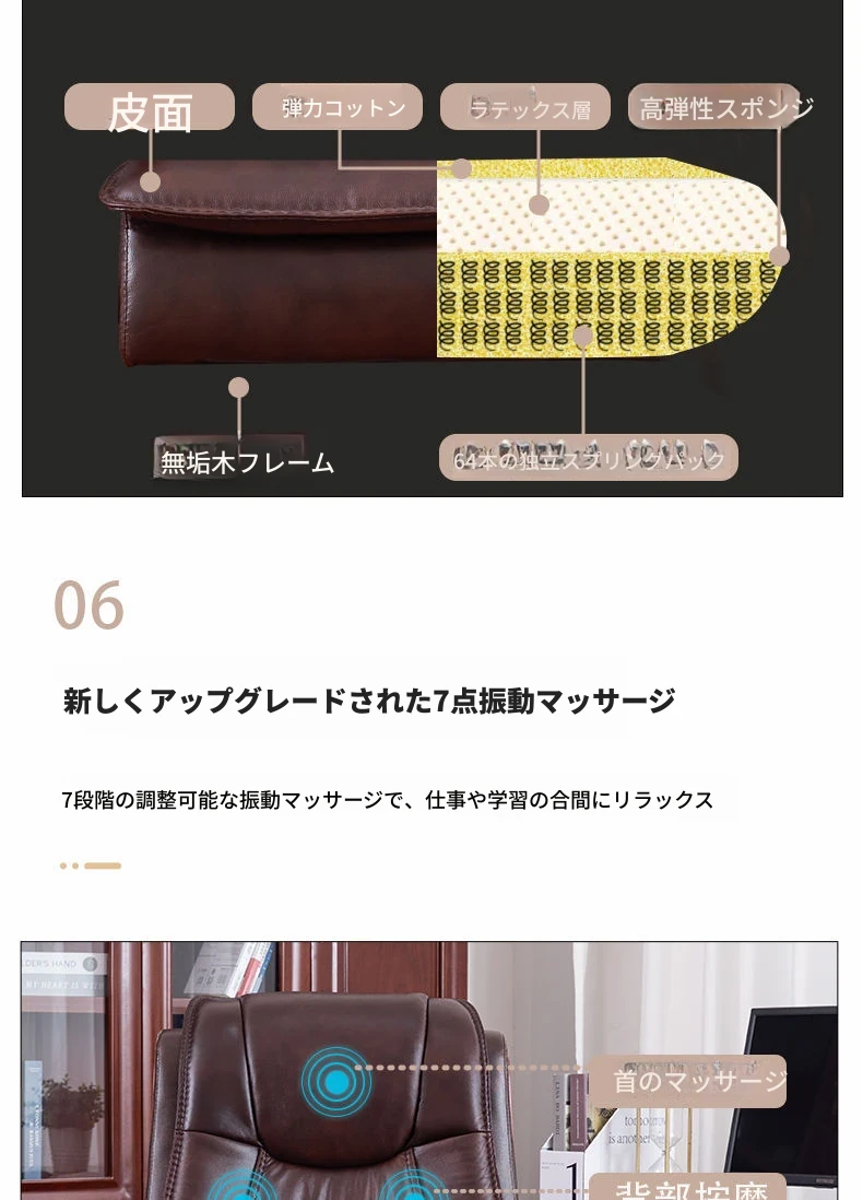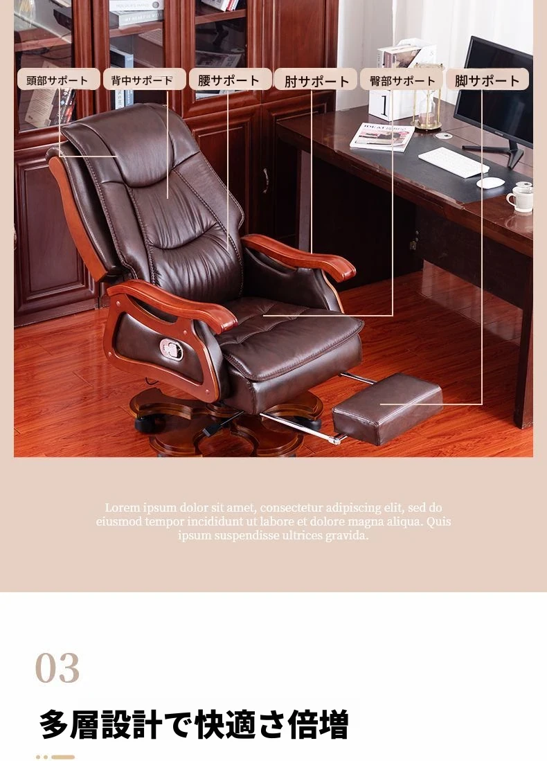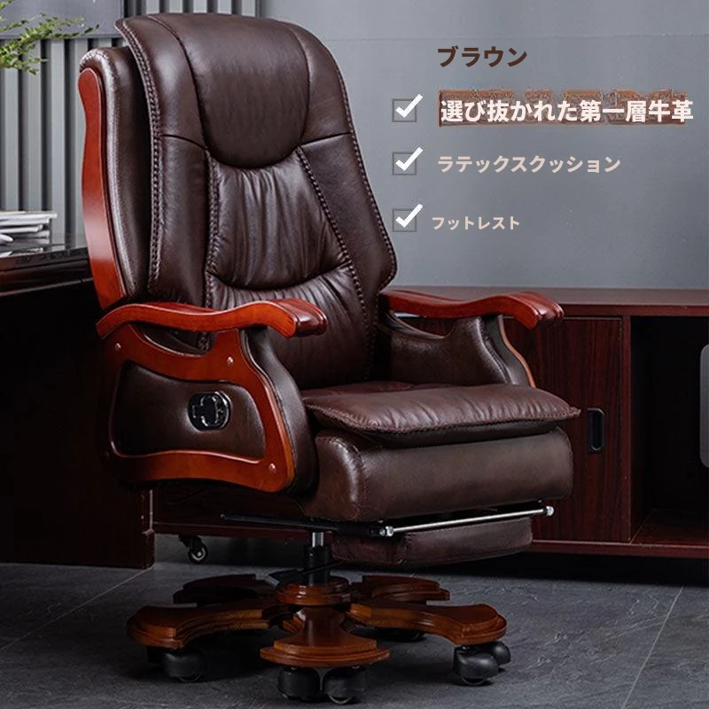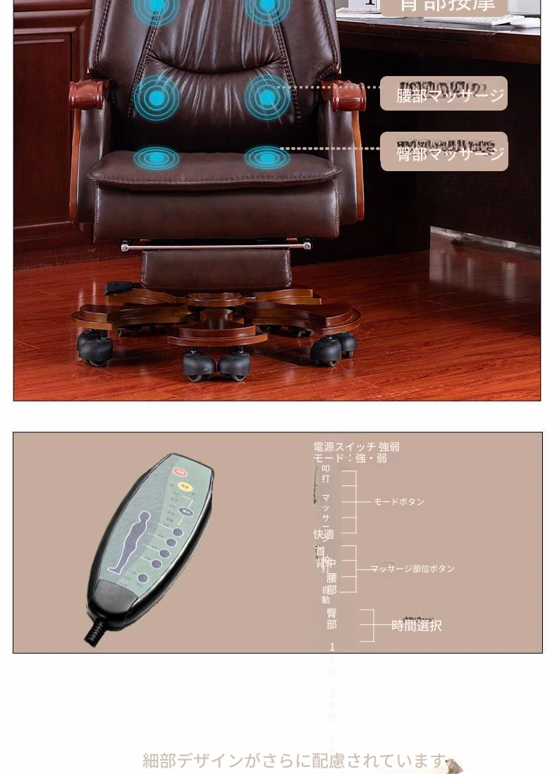 高級本革ビジネスチェア - リラックスできるマッサージ機能付き、在宅勤務にも最適!長時間の座り作業も快適にサポートするエレガントなデザインのオフィスチェア。