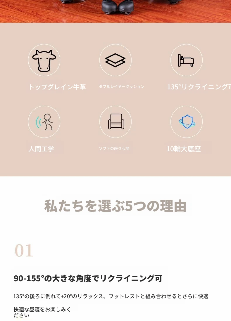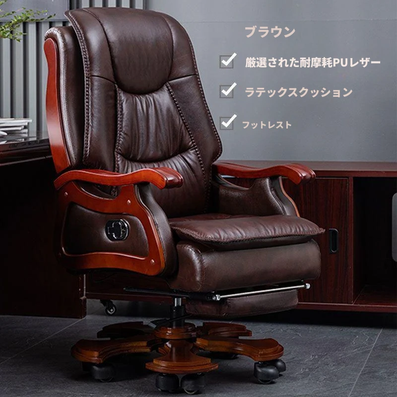 茶色の耐摩耗PUリクライニング+フットレスト
