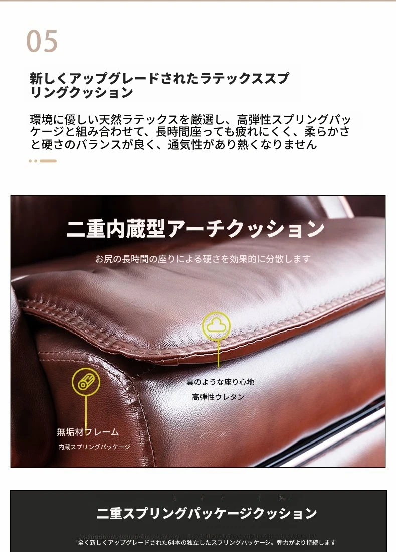 茶色の選りすぐりのトップレザー牛革リクライニング+マッサージ