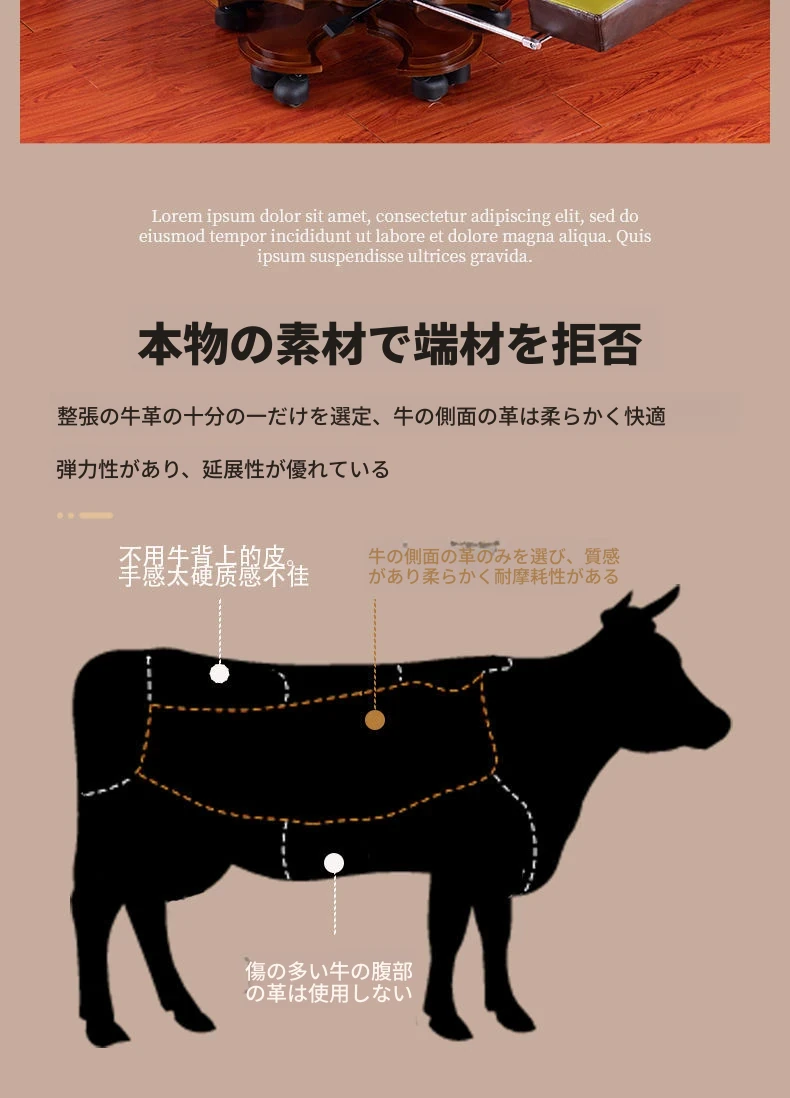 茶色の選りすぐりのトップレザー牛革リクライニング+フットレスト+マッサージ