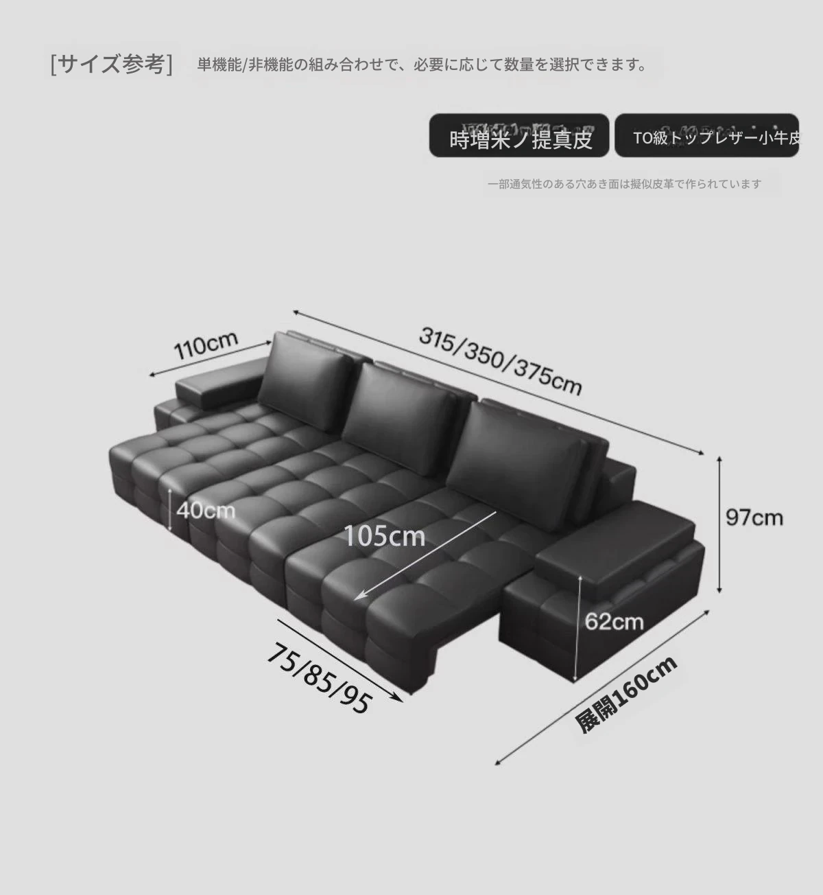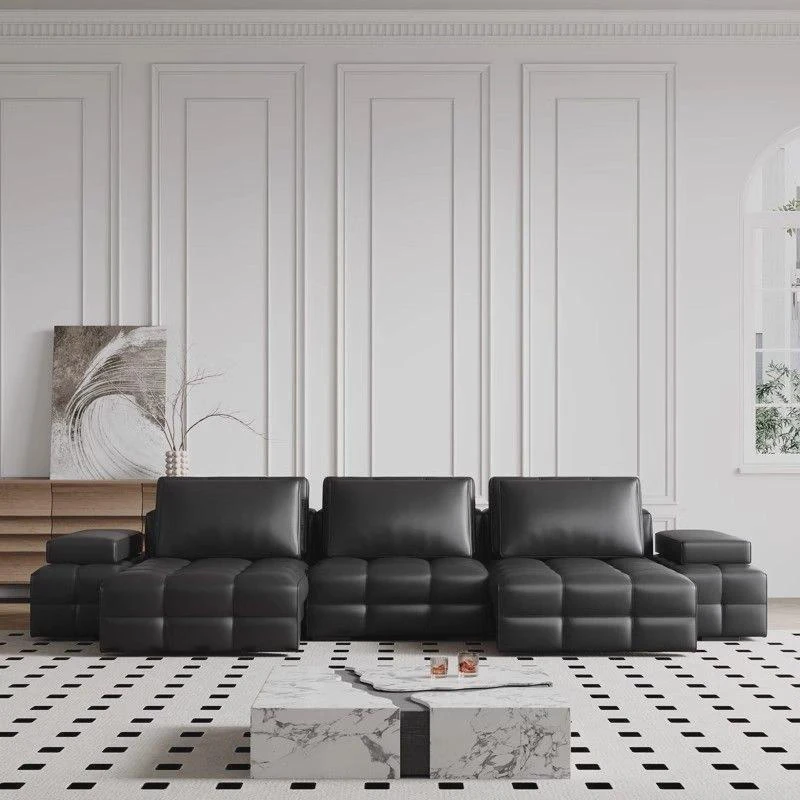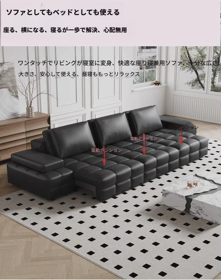 ローレンスの本革電動リクライニングソファ - イタリアンミニマリズムで魅力的なデザイン、どんなサイズのリビングにもぴったり!上質な本牛革使用で、快適な座り心地を実現。あなたの空間に洗練されたスタイルを加えます。