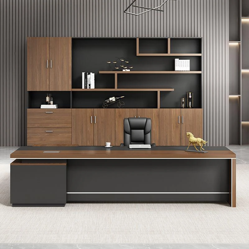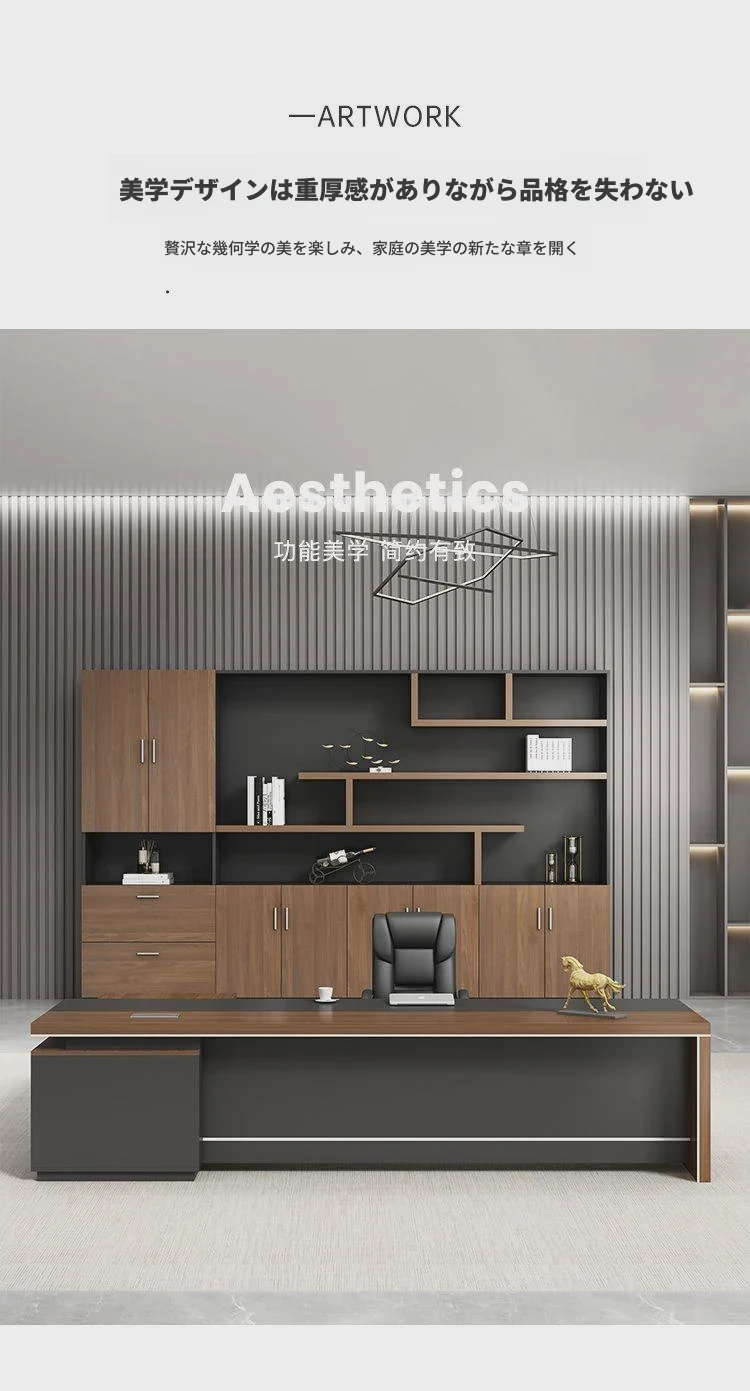 2.6メートル社長デスク+社長椅子+8ドアファイルキャビネット