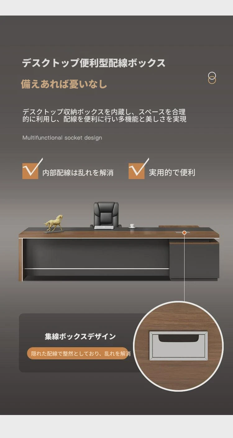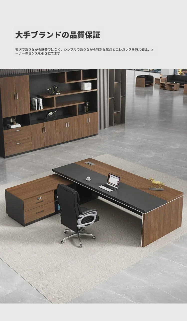 2.4メートル社長デスク+社長椅子+6ドアファイルキャビネット
