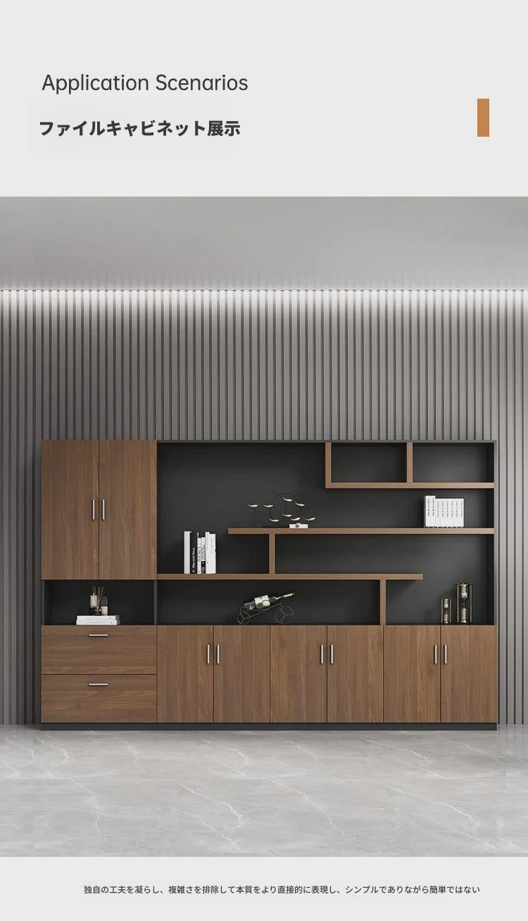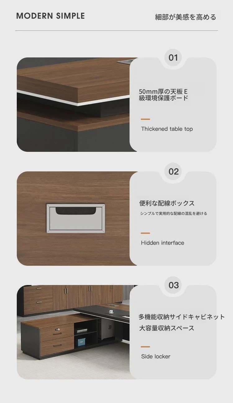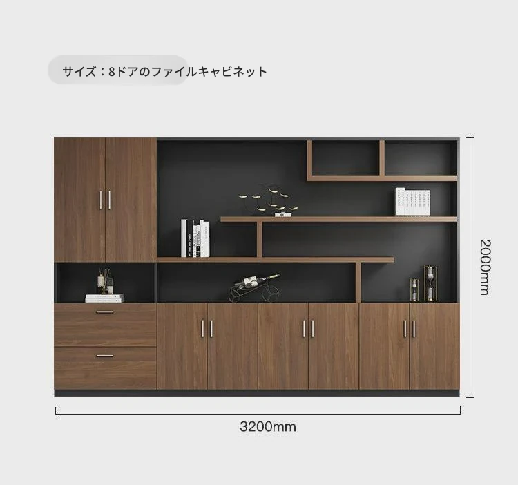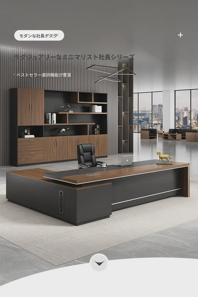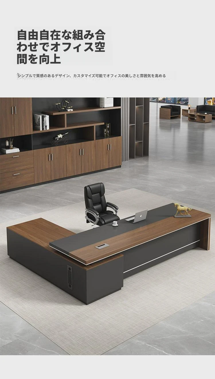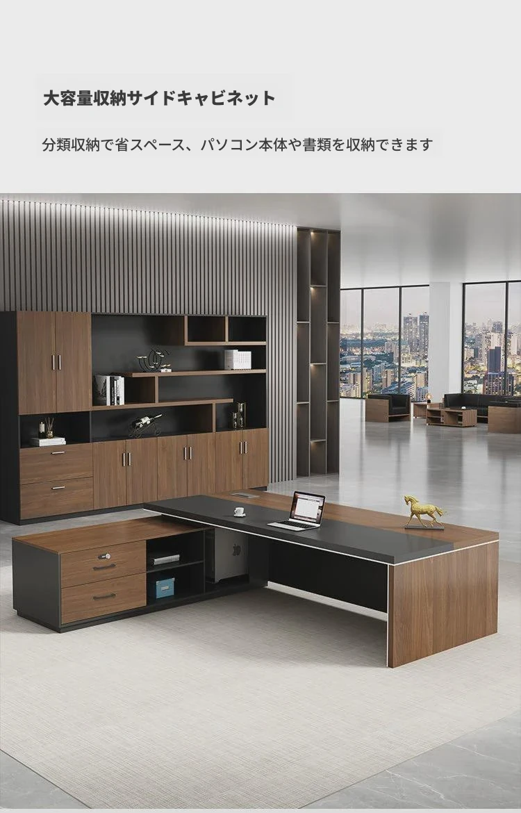 3.0メートル社長デスク+社長椅子+8ドアファイルキャビネット