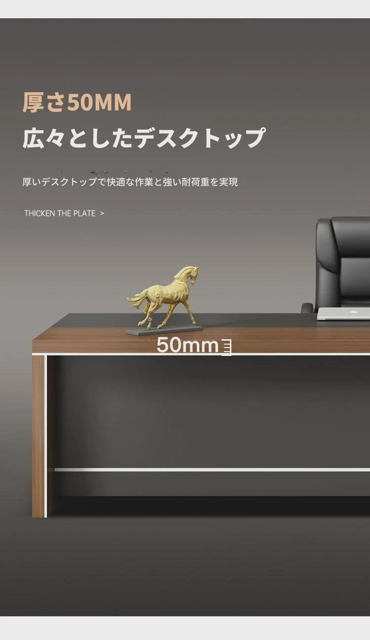 1.8メートル社長デスク+社長椅子+5ドアファイルキャビネット