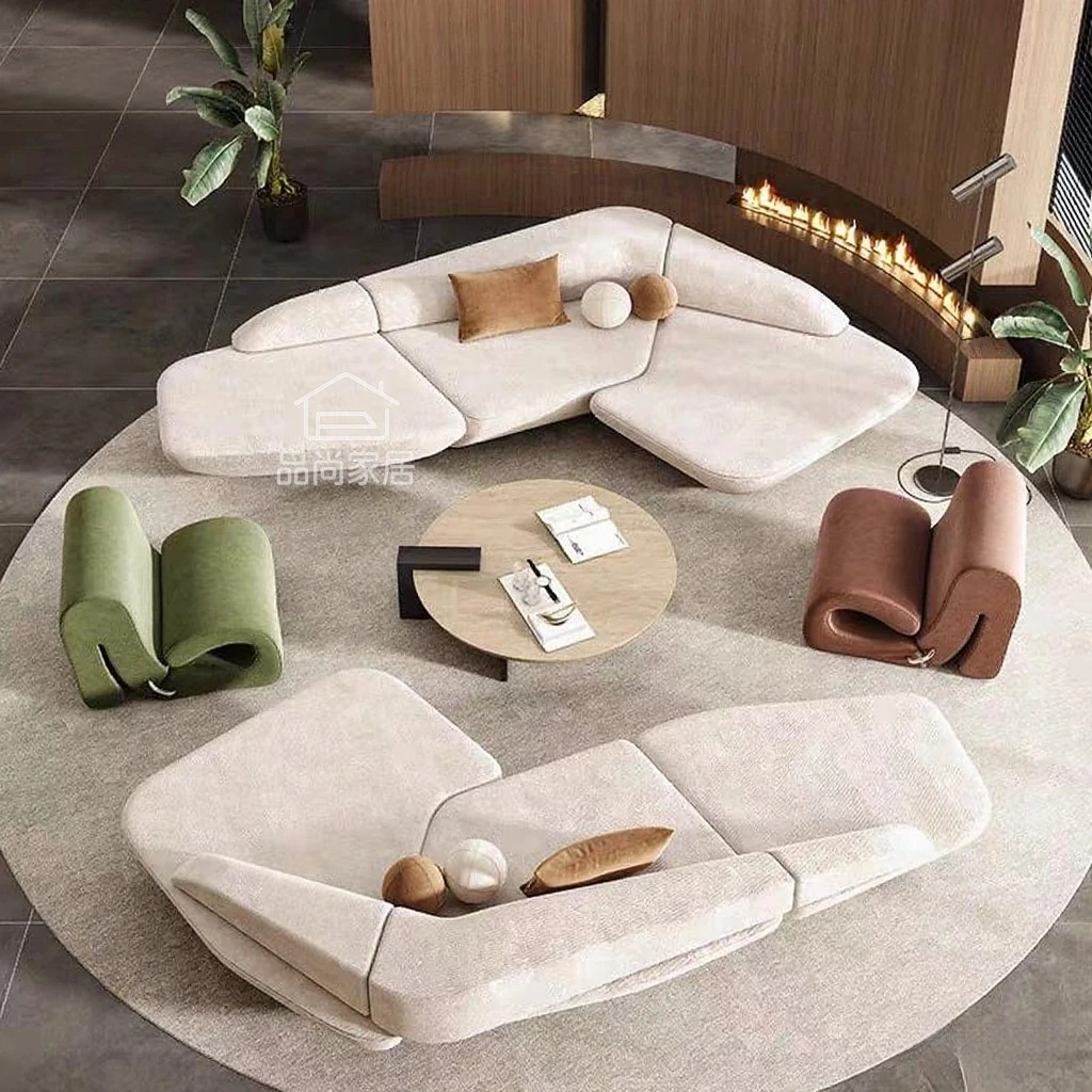 ホテルロビー用アーチ型ソファ|ラグジュアリーな休息空間を演出|サロンやクラブのためのスタイリッシュなデザイン|美容院の待機スペースに最適なユニークな形状ソファ