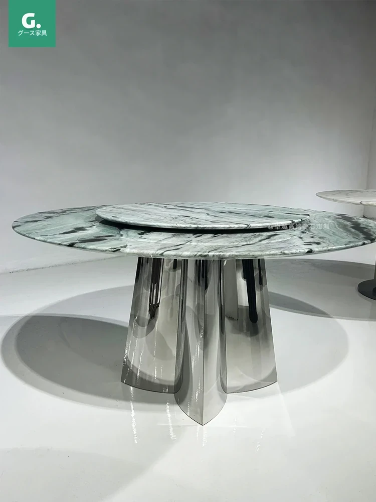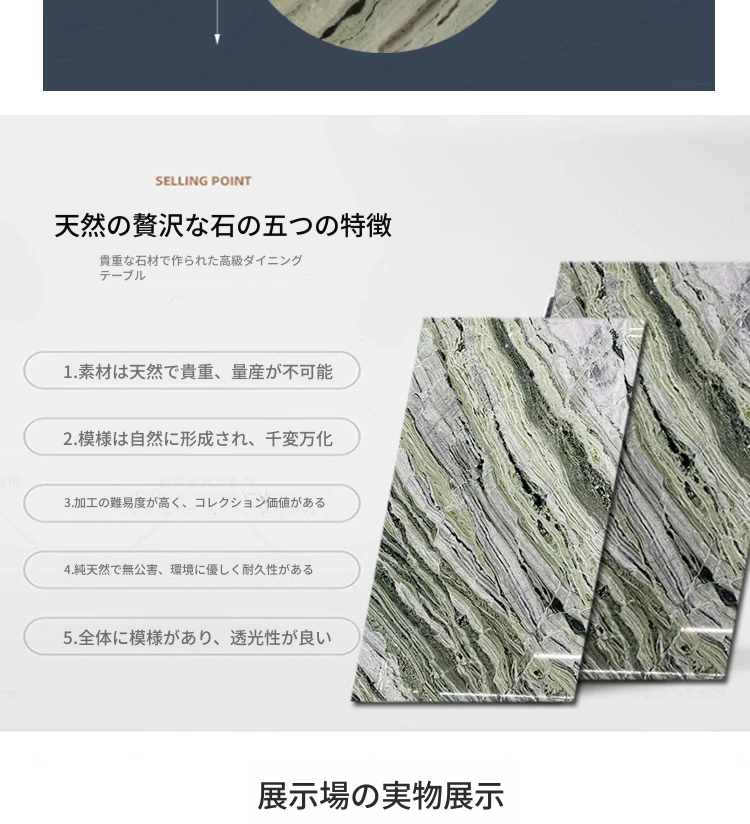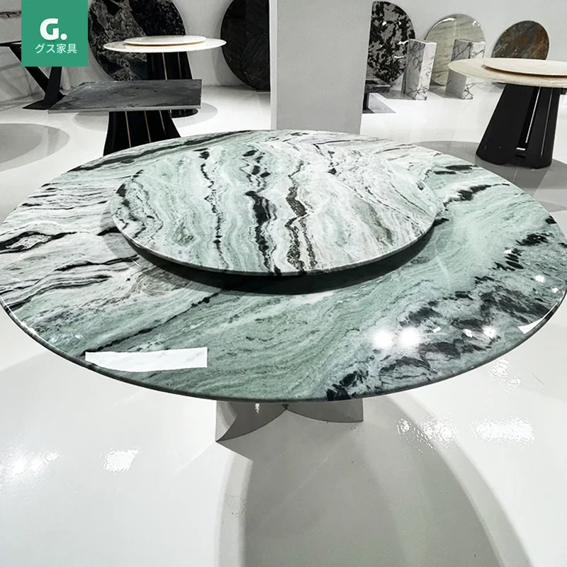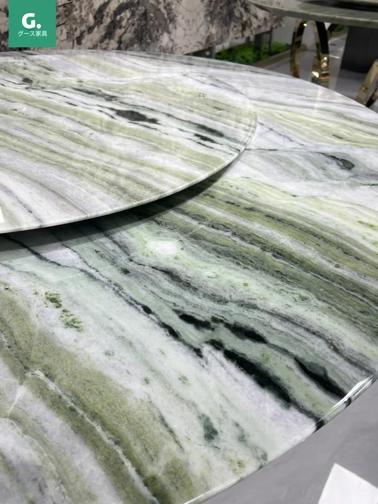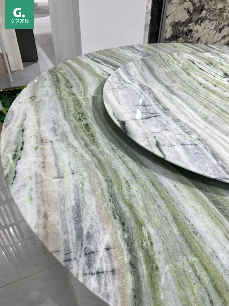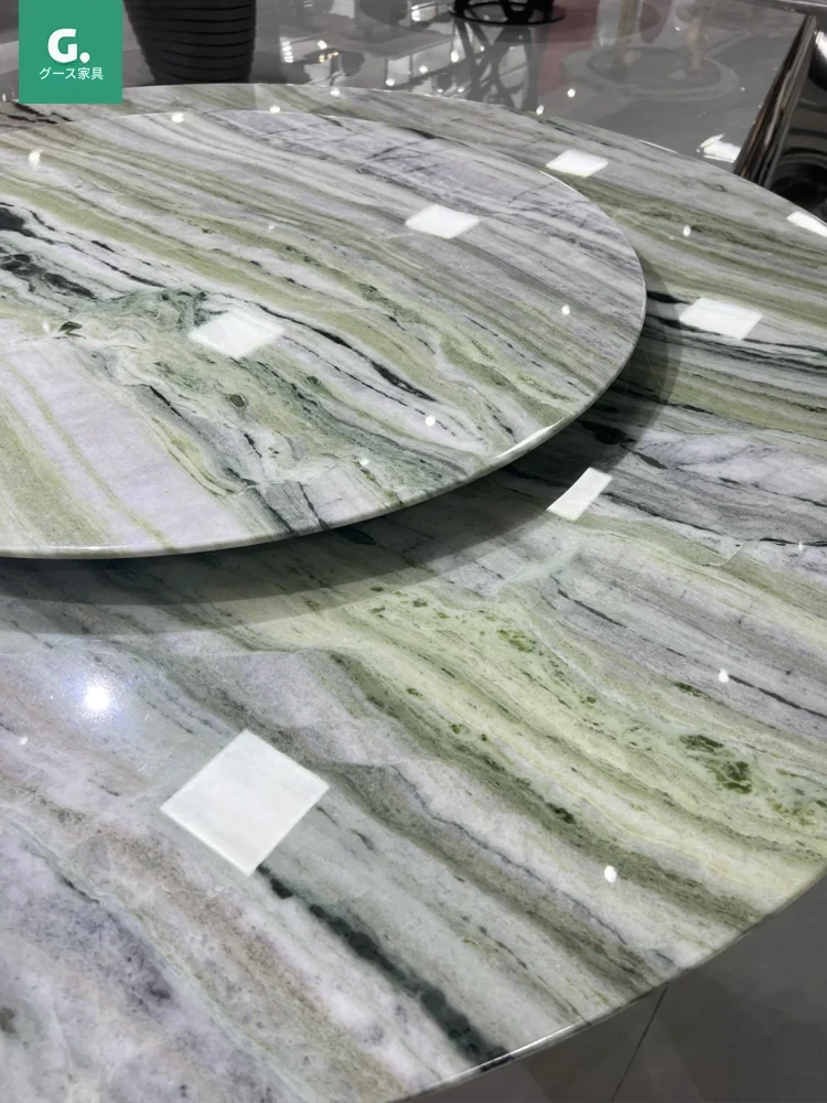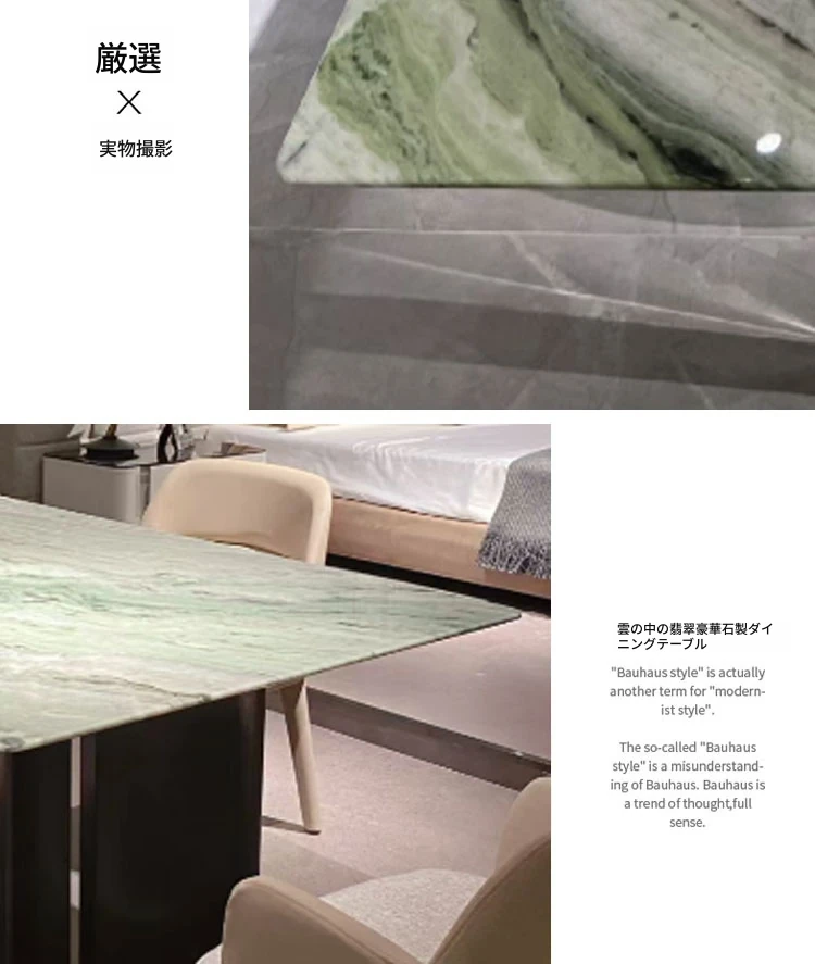 雲中エメラルド天然大理石ダイニングテーブル - 高級感あふれるデザイン、広々とした大サイズの長方形テーブルで、贅沢な食事体験を提供します。家族や友人との特別なひとときをお楽しみください!