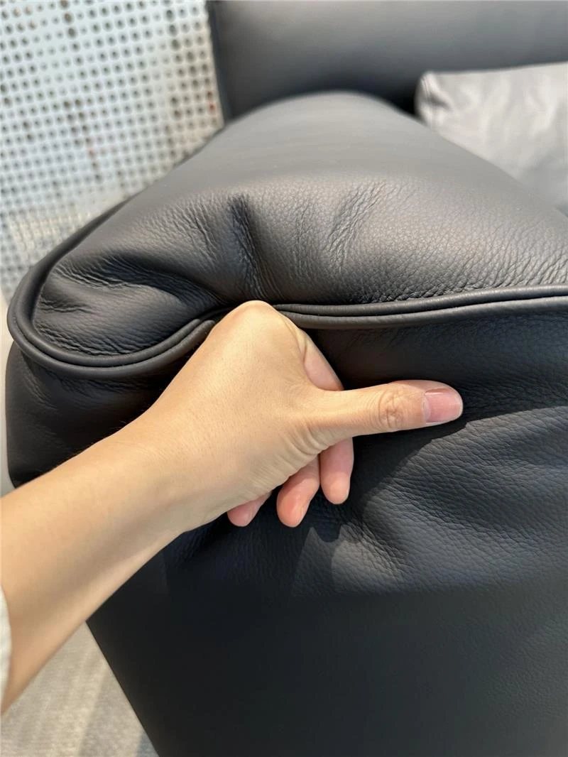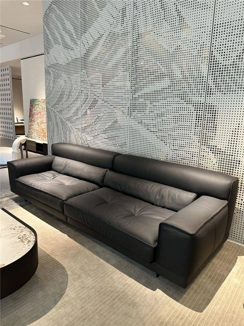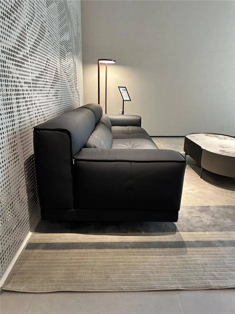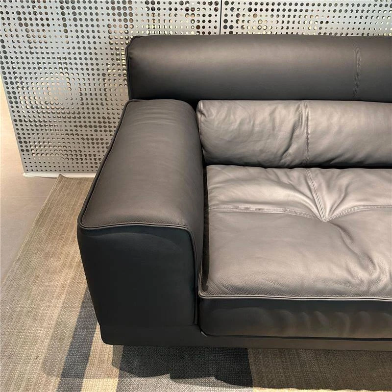高級イタリアンミニマルデザインの本革ソファ - ブラック、3〜4人掛け、ダウン入りの牛革で贅沢な快適さを実現!リビングルームに最適なスタイリッシュな選択。