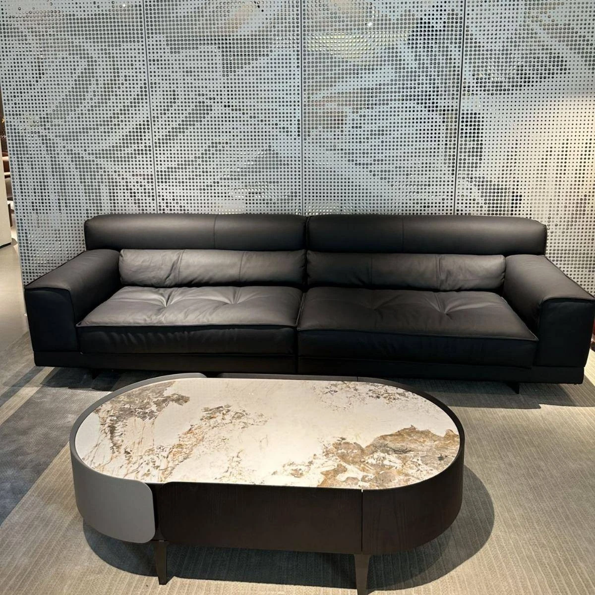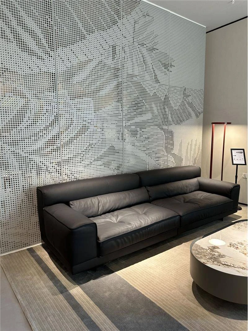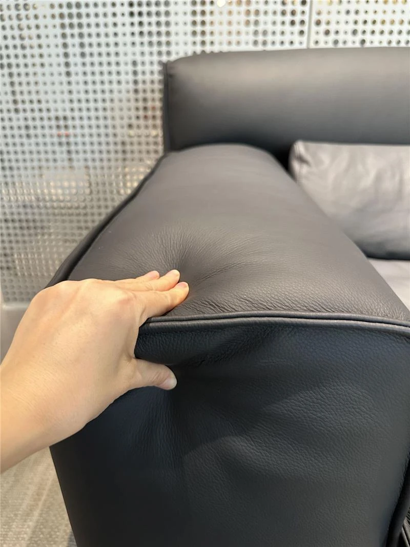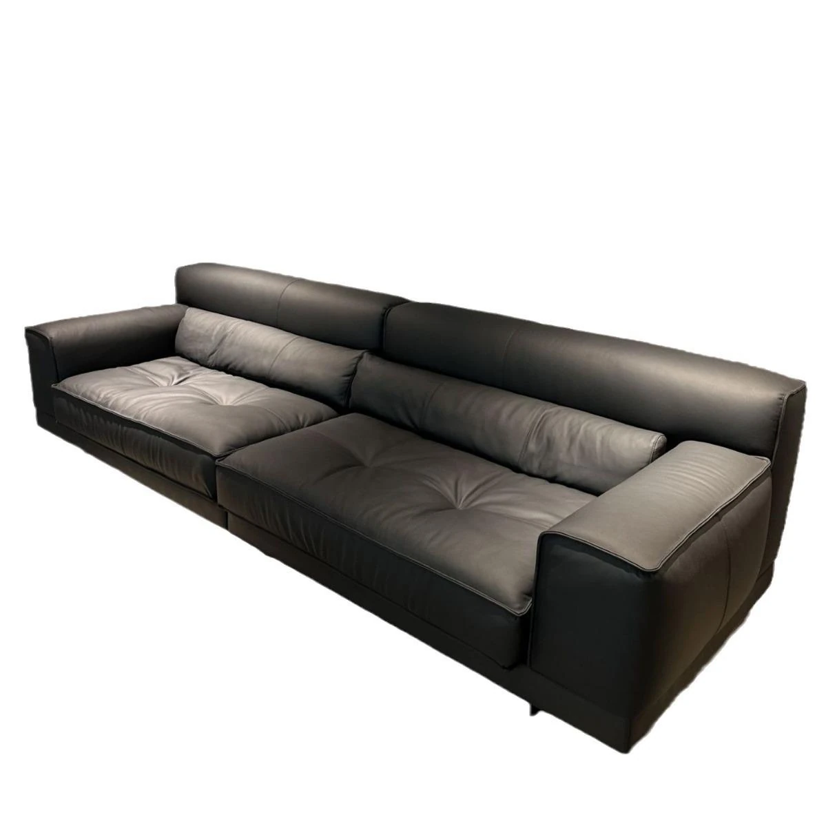 高級イタリアンミニマルデザインの本革ソファ - ブラック、3〜4人掛け、ダウン入りの牛革で贅沢な快適さを実現!リビングルームに最適なスタイリッシュな選択。