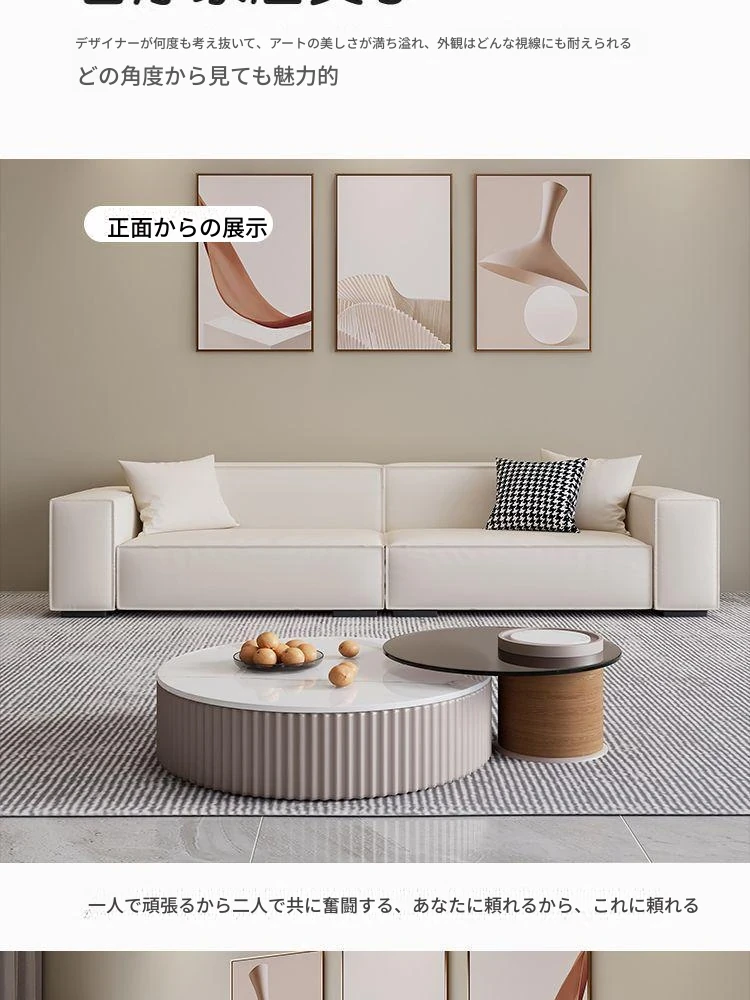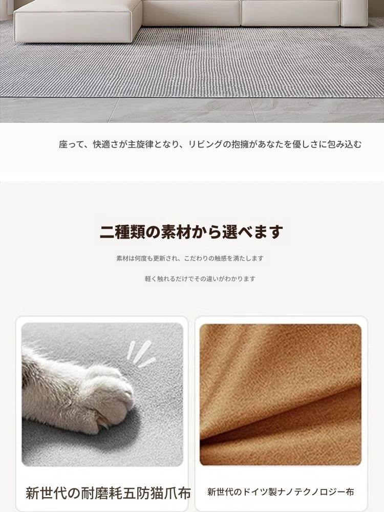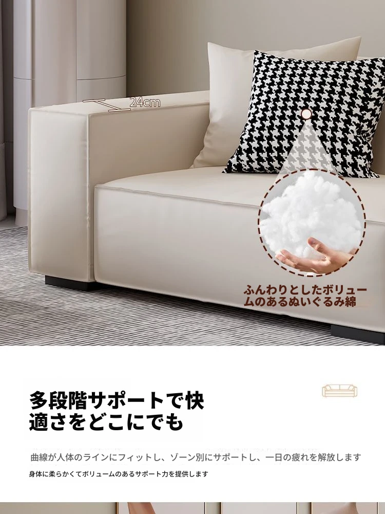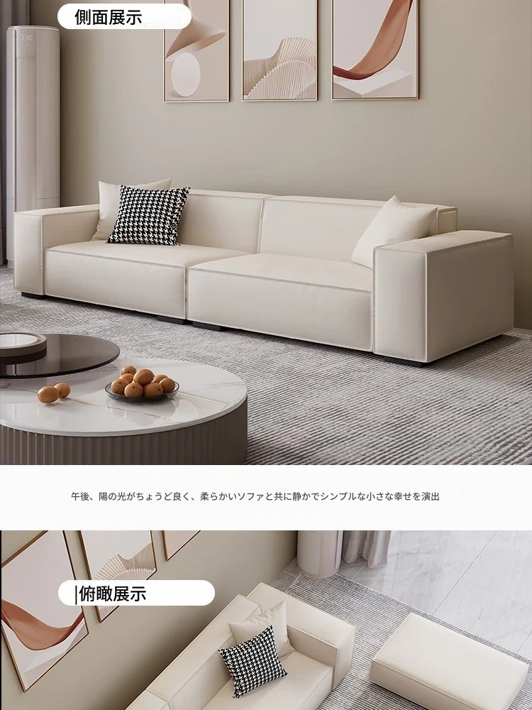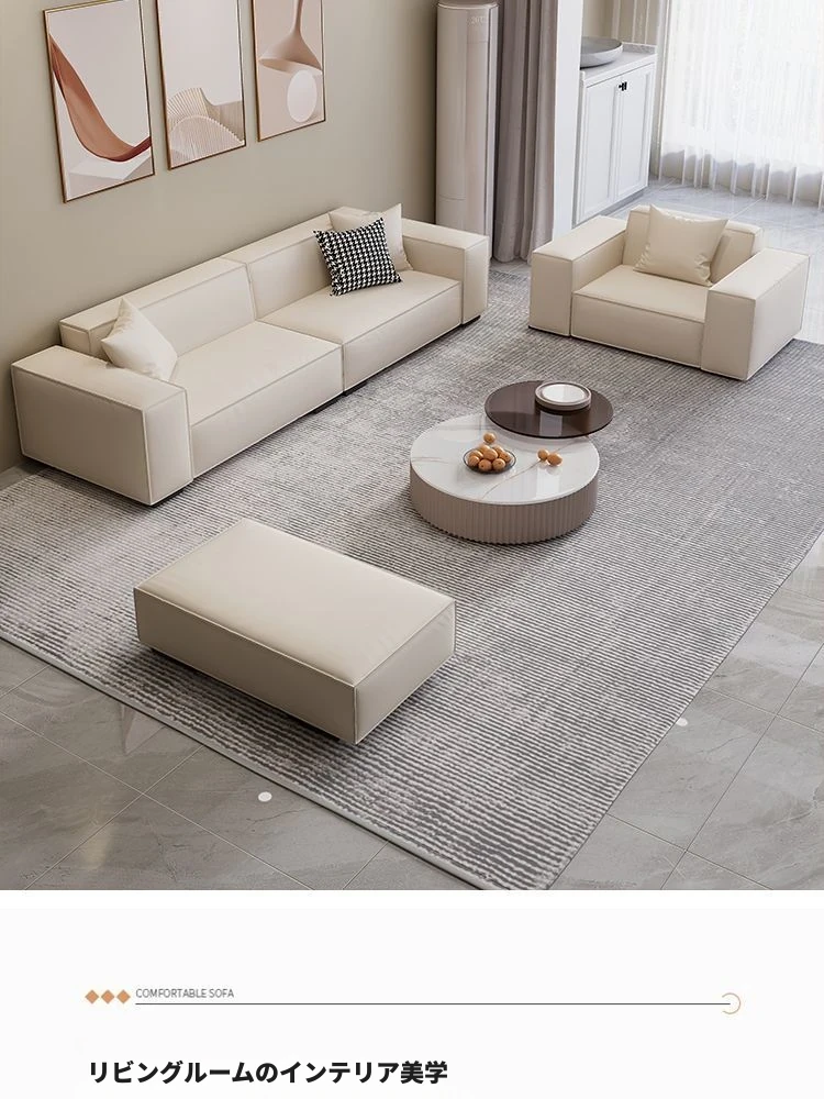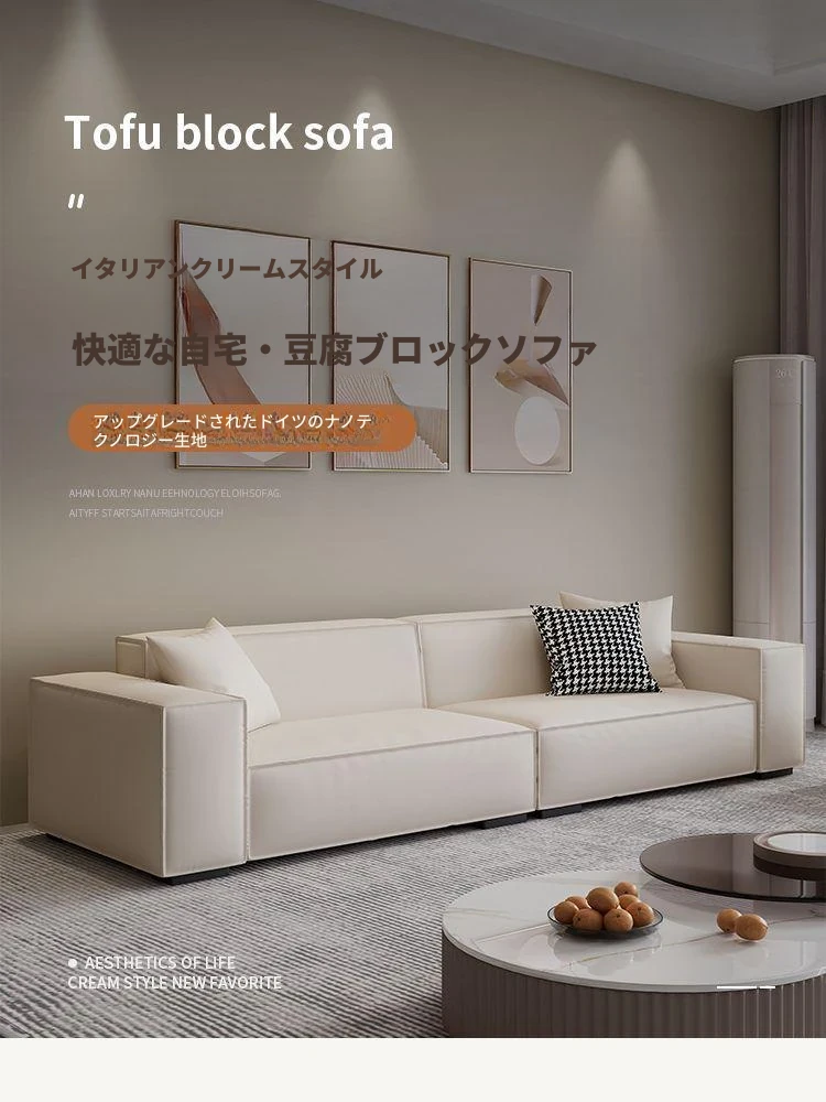 シンプルでスタイリッシュなクリーム色の豆腐ブロックソファ - モダンなリビングにぴったり!人気のテクノロジー布を使用した直線的なデザインで、快適さと美しさを両立。あなたの理想の空間を演出します!