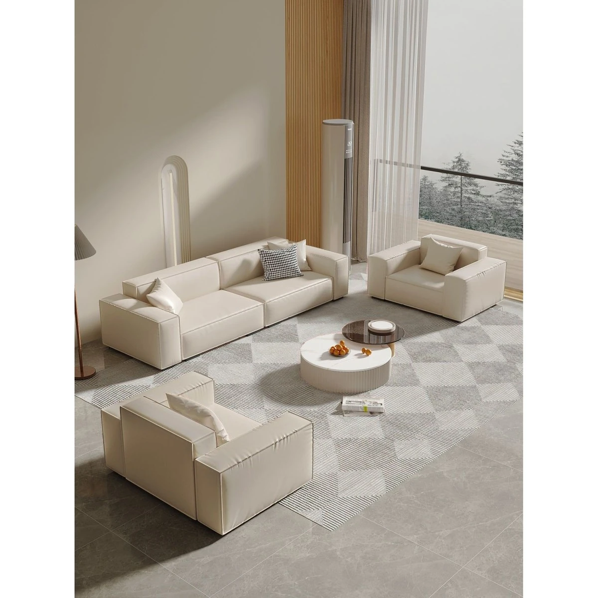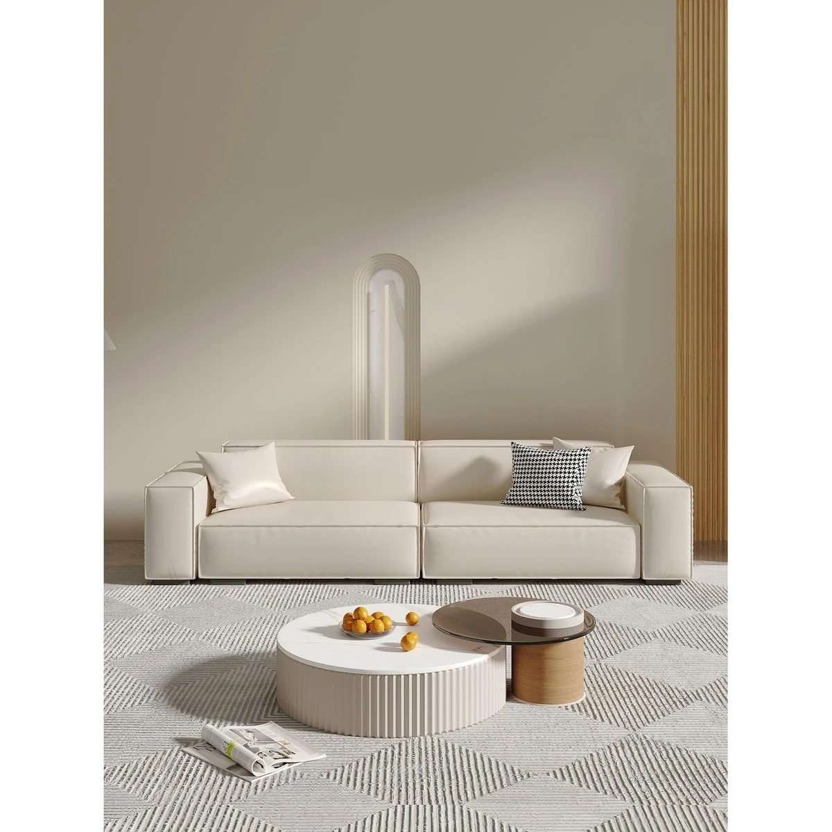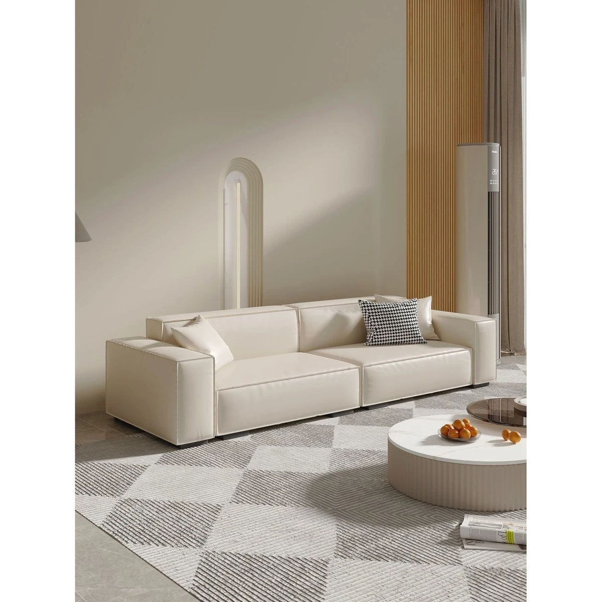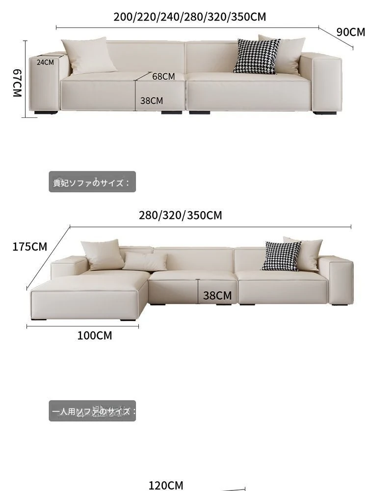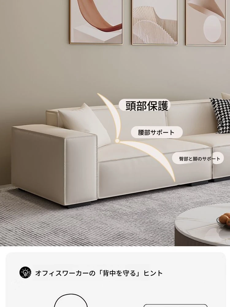 シンプルでスタイリッシュなクリーム色の豆腐ブロックソファ - モダンなリビングにぴったり!人気のテクノロジー布を使用した直線的なデザインで、快適さと美しさを両立。あなたの理想の空間を演出します!