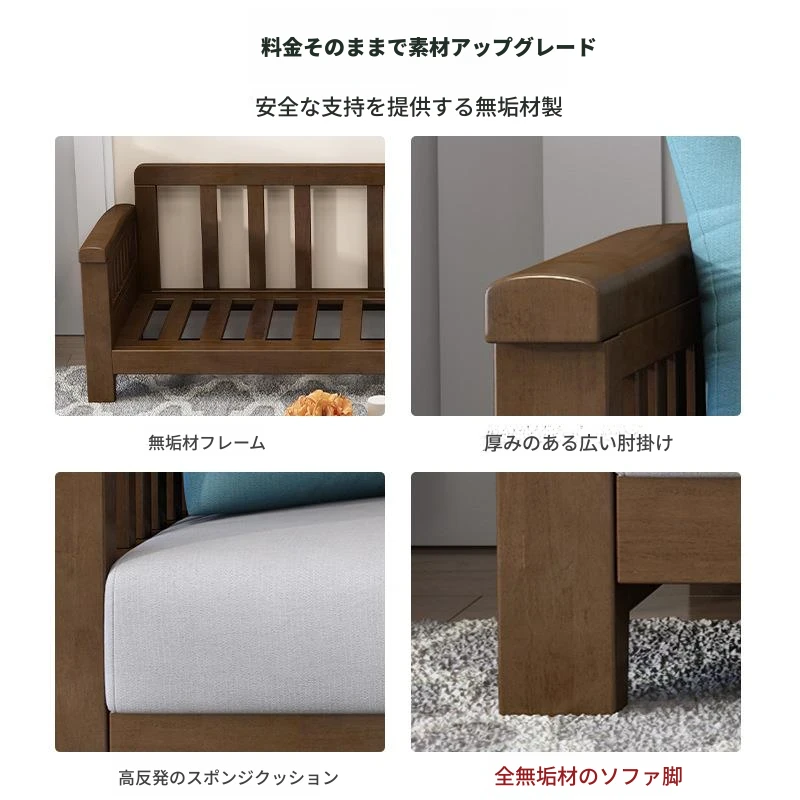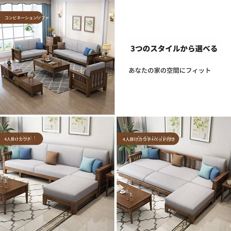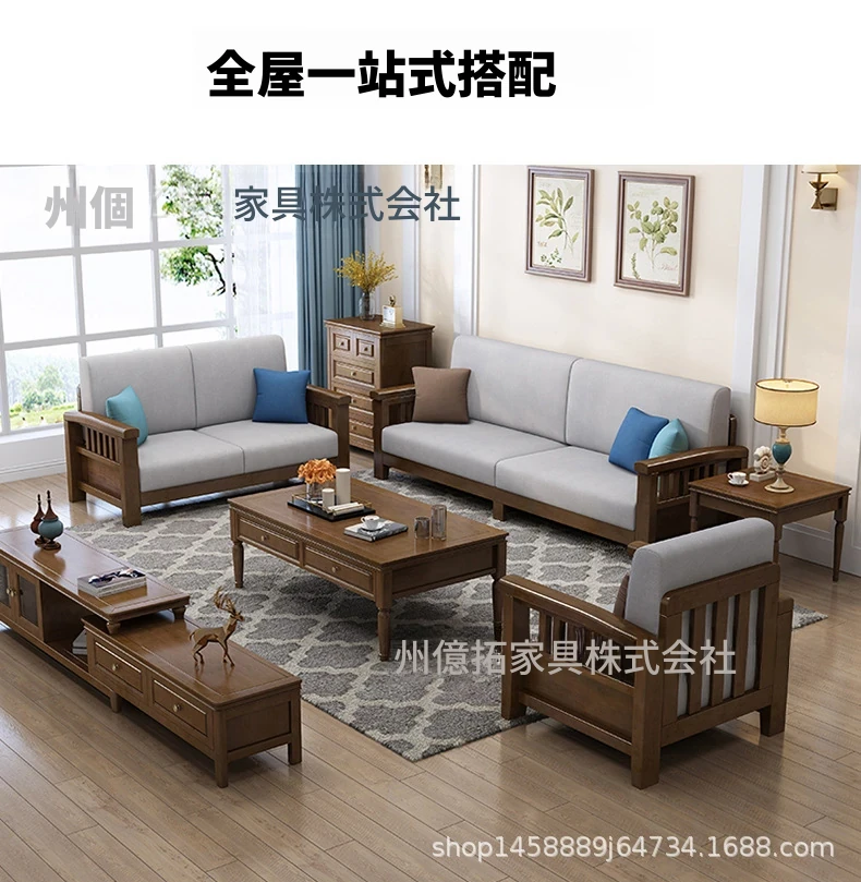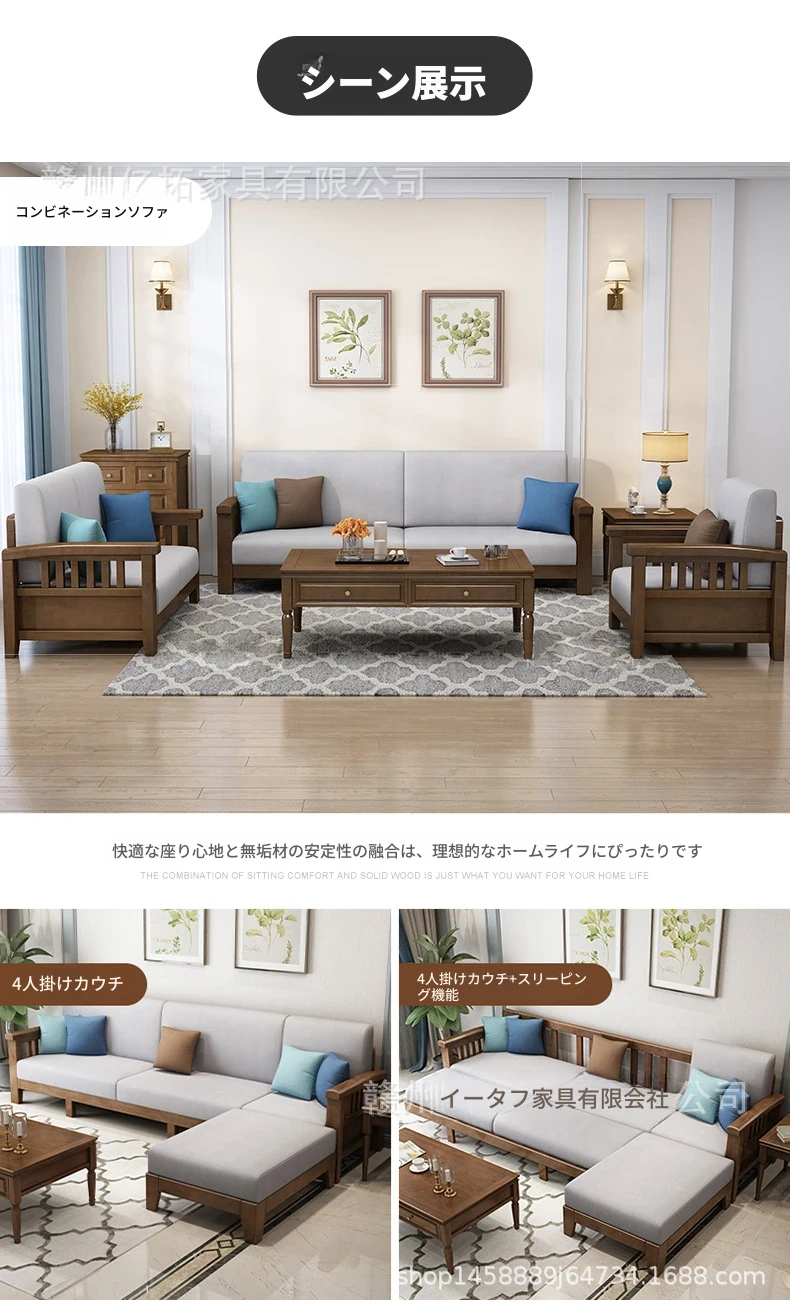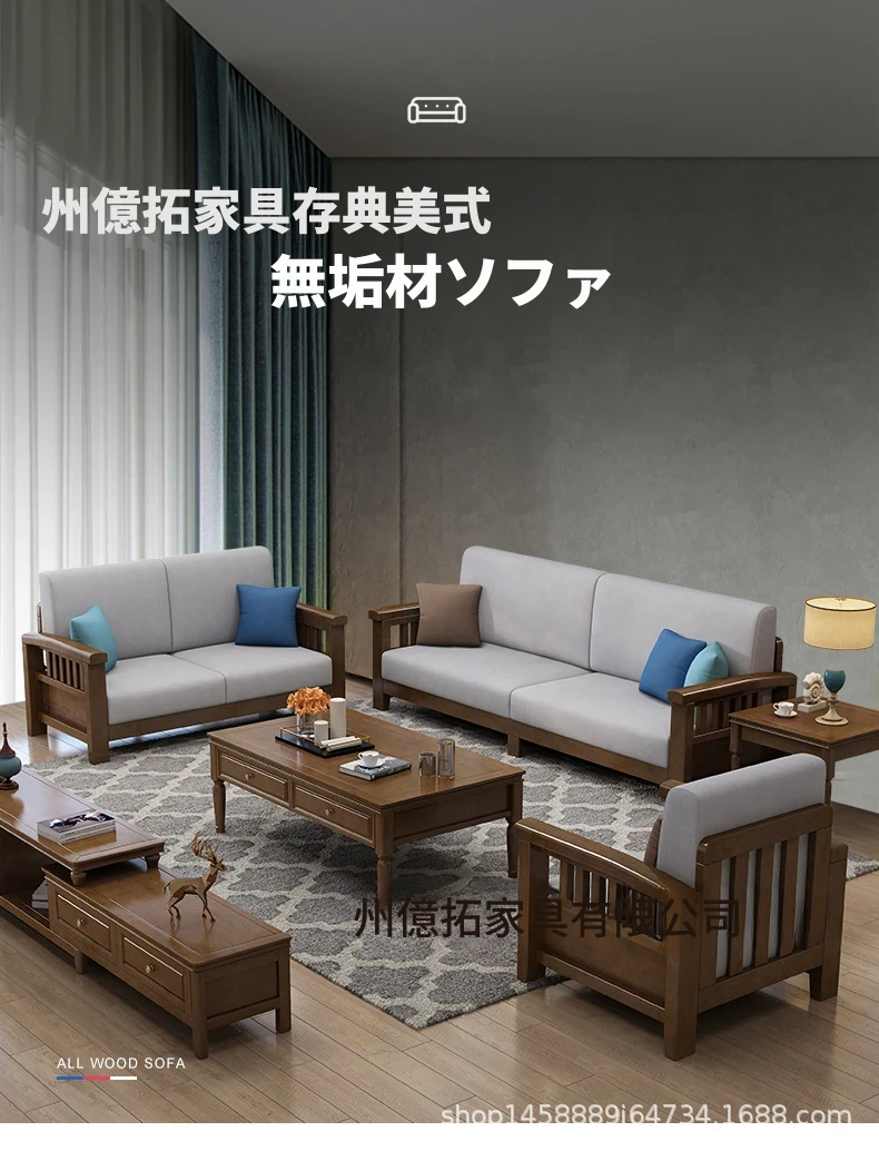 アメリカンスタイルのフルウッドソファセット - モダンでシンプル、経済的な小型アパートに最適なコーナー・カウチソファ。おしゃれで快適なリビング空間を実現!