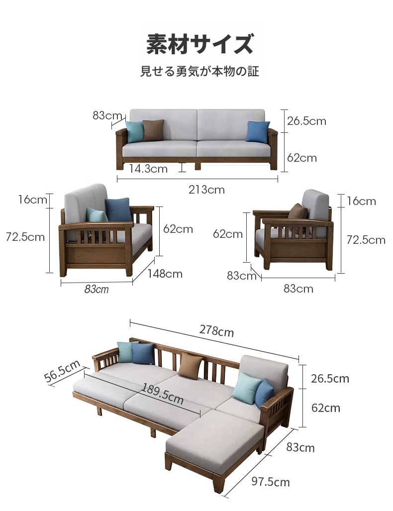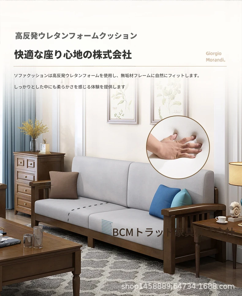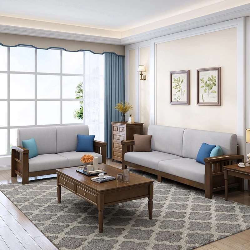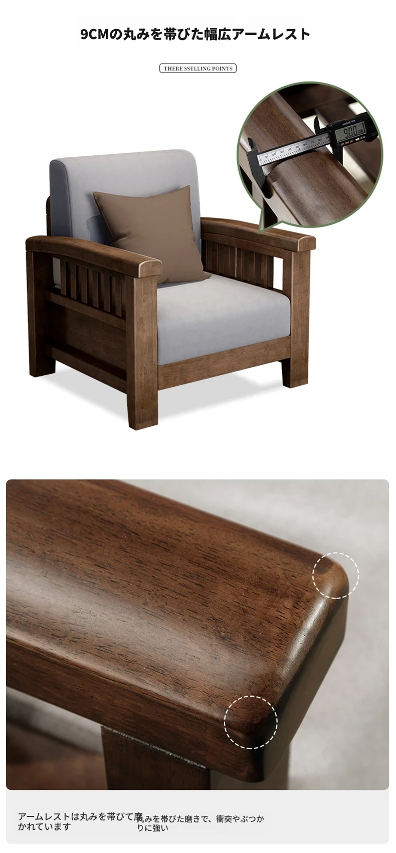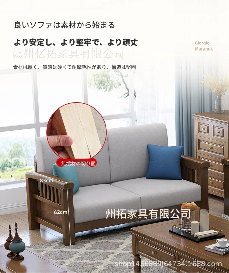 アメリカンスタイルのフルウッドソファセット - モダンでシンプル、経済的な小型アパートに最適なコーナー・カウチソファ。おしゃれで快適なリビング空間を実現!