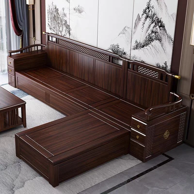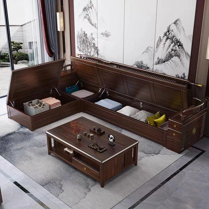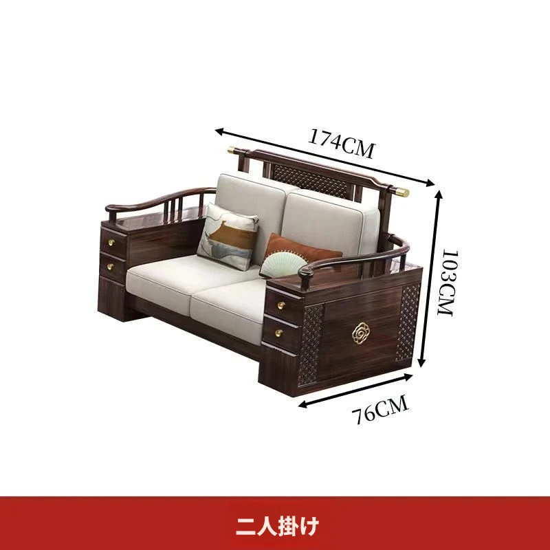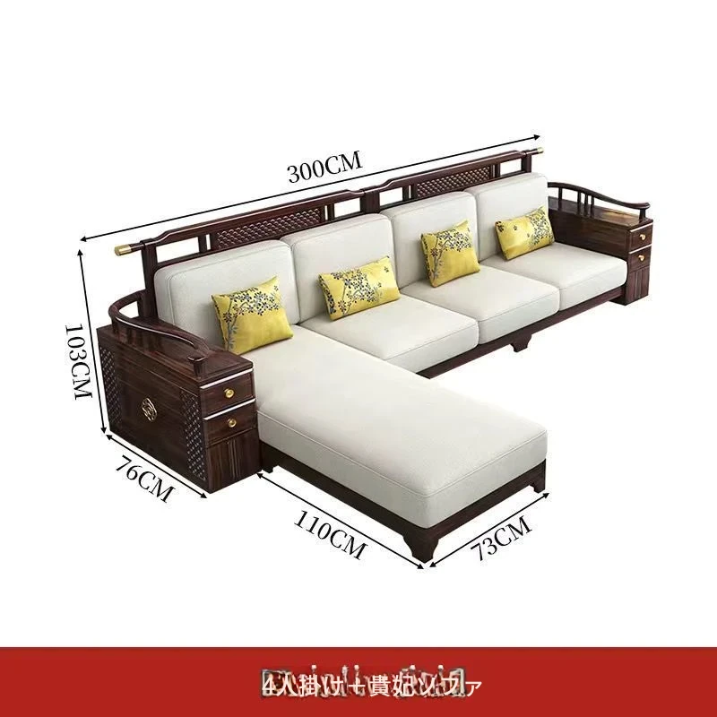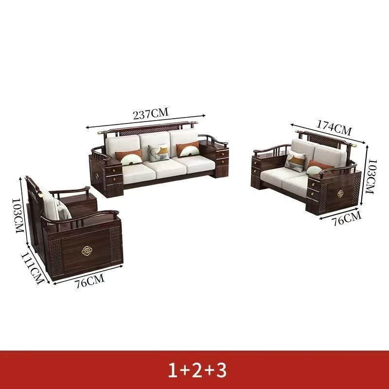 新中式ウッディウッドソファセット - 現代的なシンプルスタイル、大小様々な部屋に最適な禅の心を感じるリビング用フルセット家具。あなたの空間に優雅さと落ち着きをプラスします!