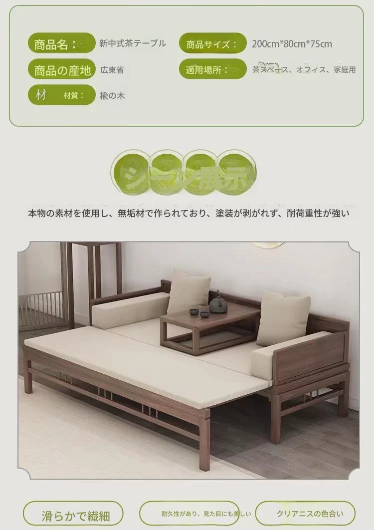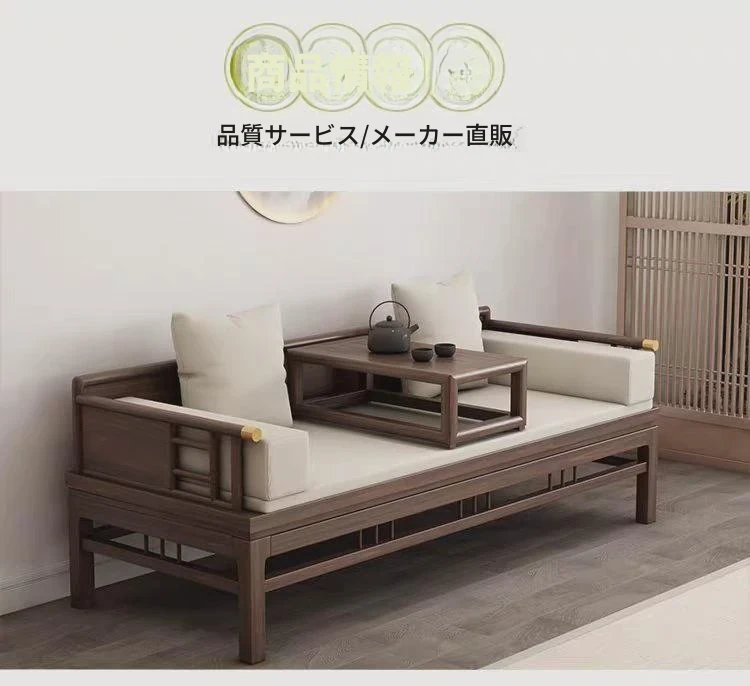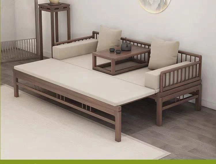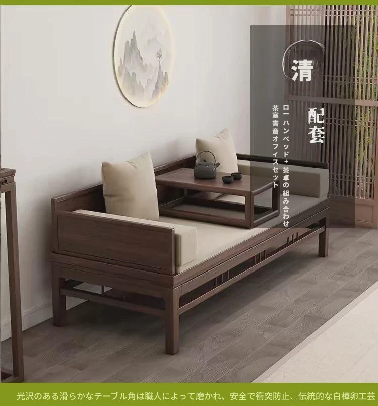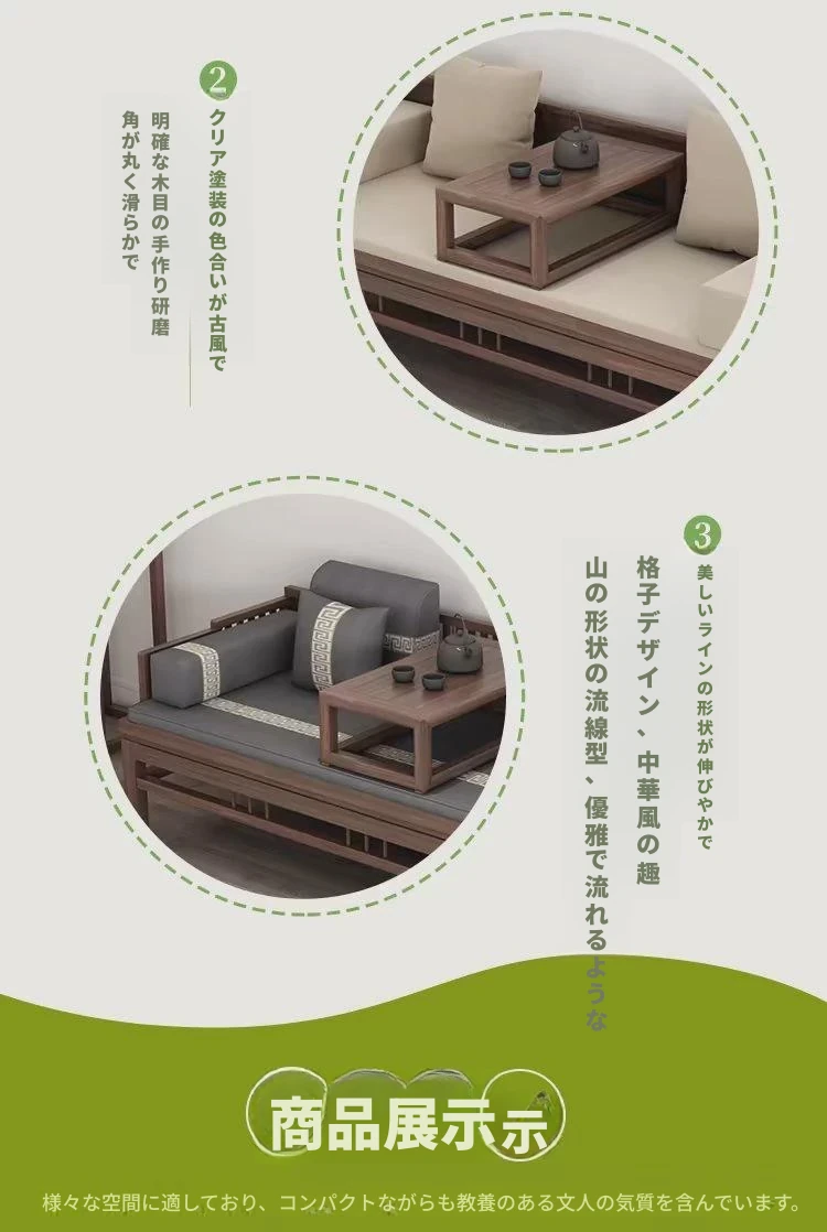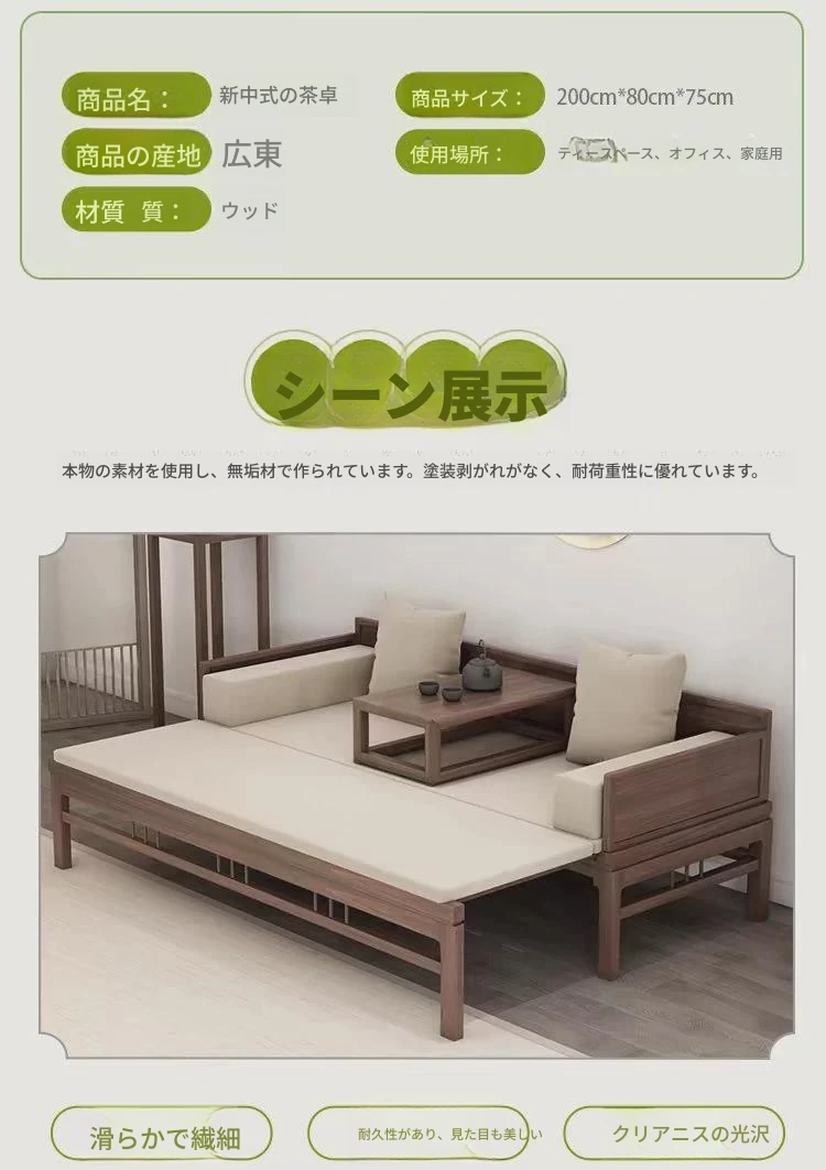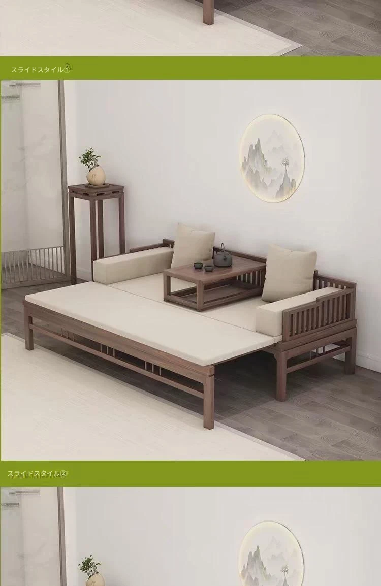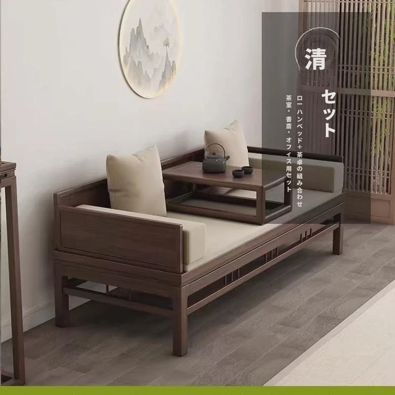 新中式デザインのロハンベッド - リビング・バルコニー・オフィスに最適!シンプルでスタイリッシュなソファベッド、スライド式の実木製で折りたたみ可能!快適なスペースを演出します。