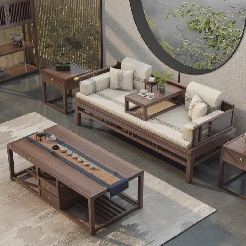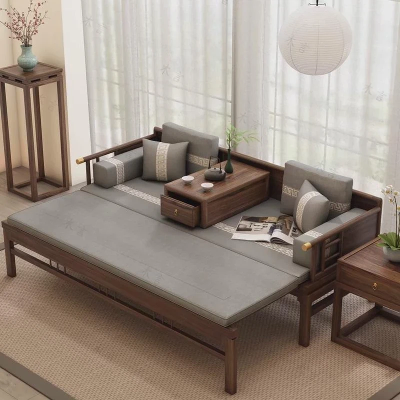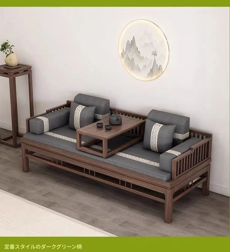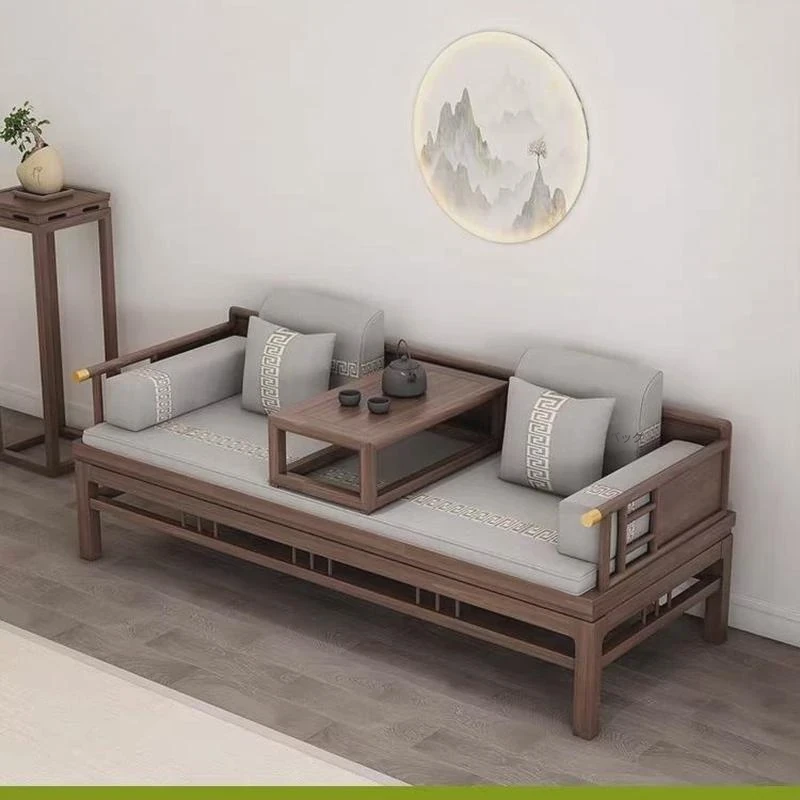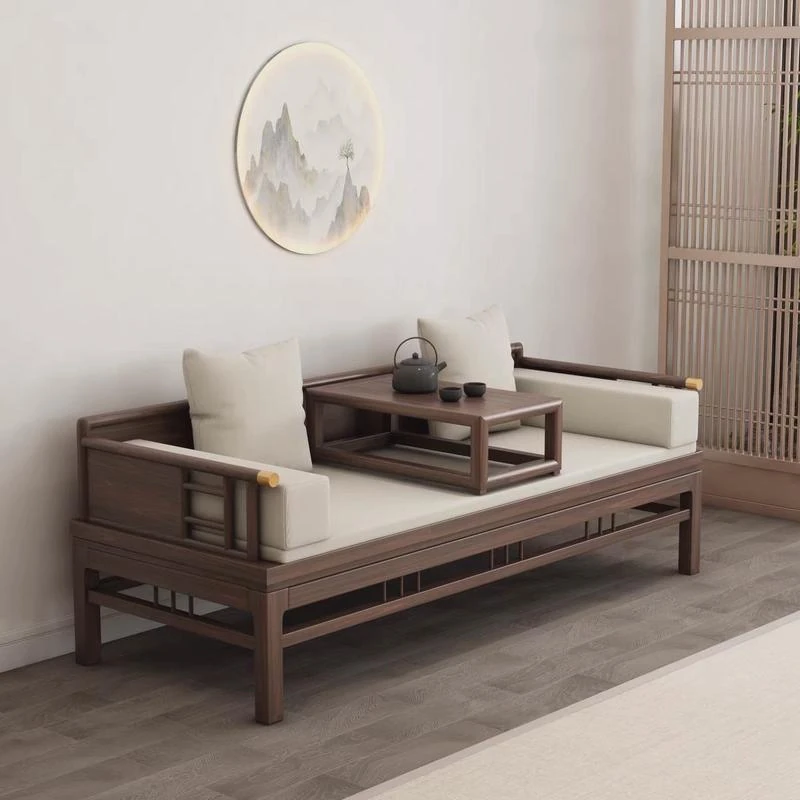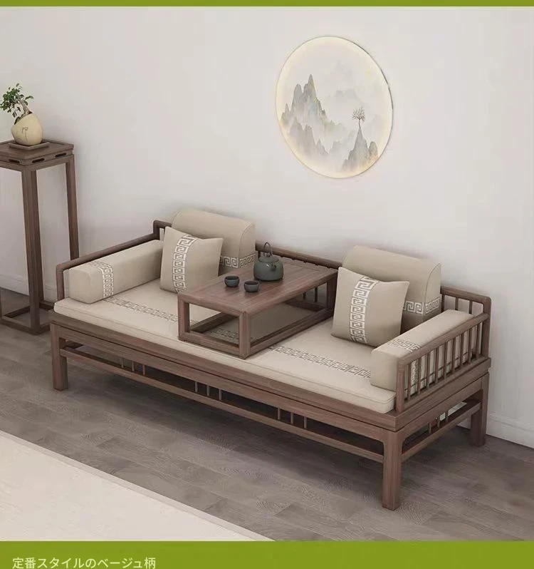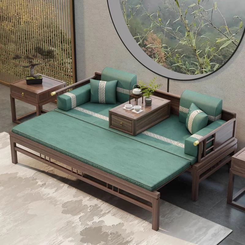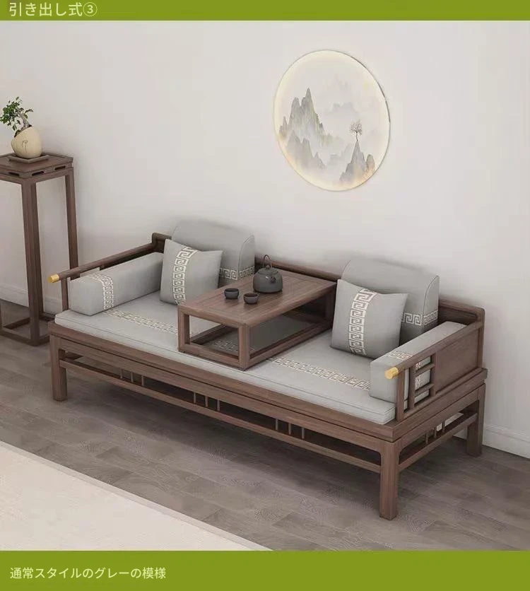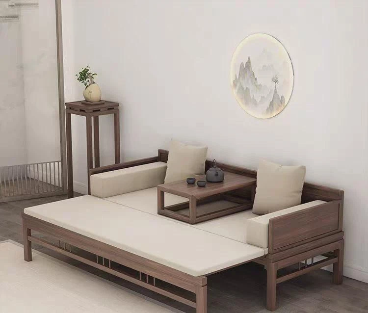 新中式デザインのロハンベッド - リビング・バルコニー・オフィスに最適!シンプルでスタイリッシュなソファベッド、スライド式の実木製で折りたたみ可能!快適なスペースを演出します。