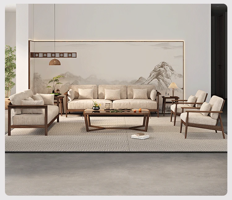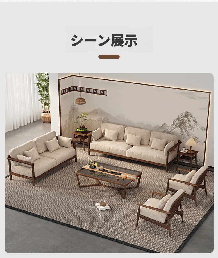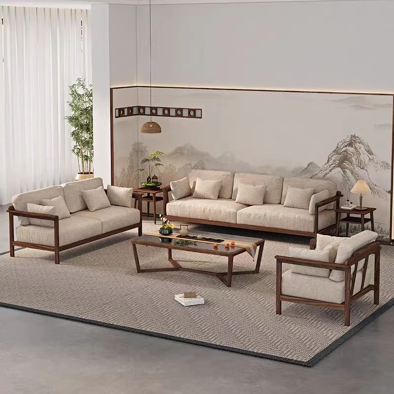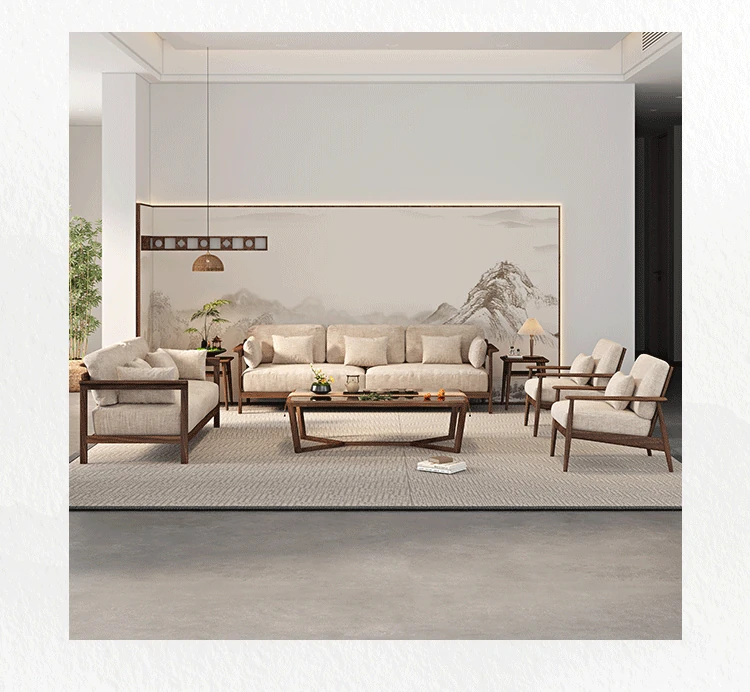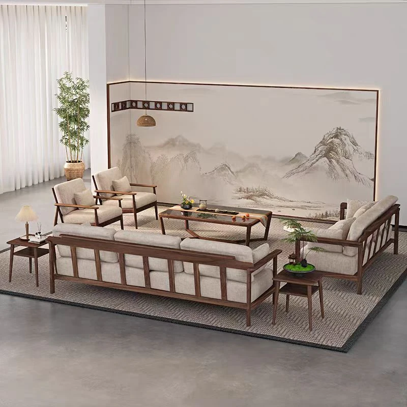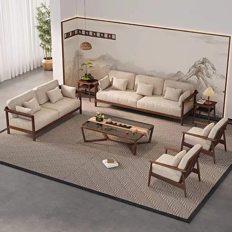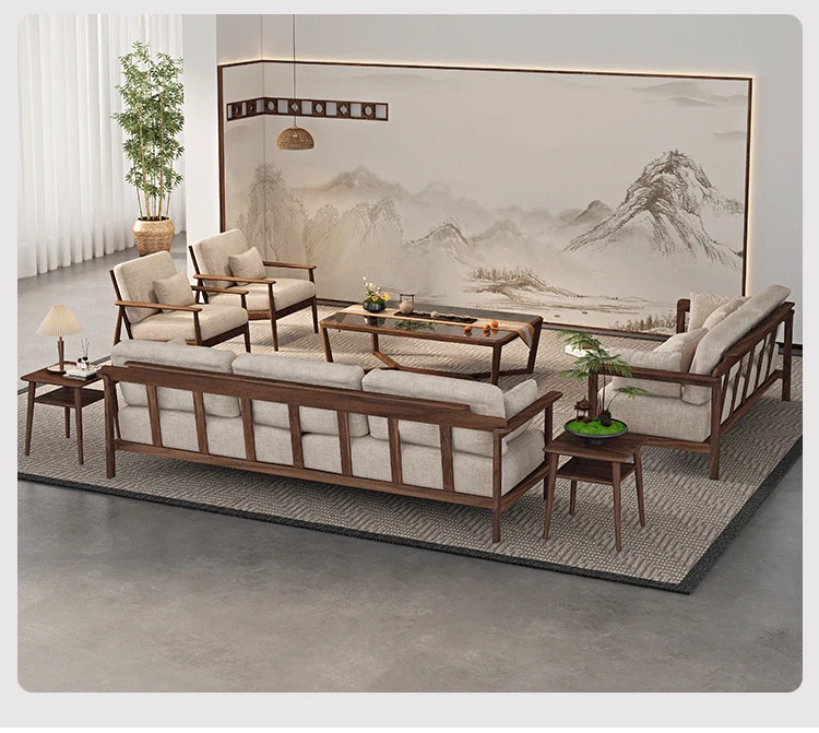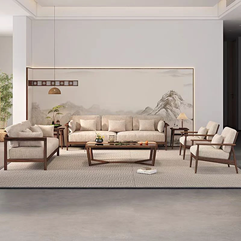 新中式の販売オフィス用禅スタイルソファ、モダンなリビングルームにぴったりのヴィラ展示室セット、工場直送で高品質な家具をお届けします!快適な空間を演出し、心を癒すひとときをお楽しみください。