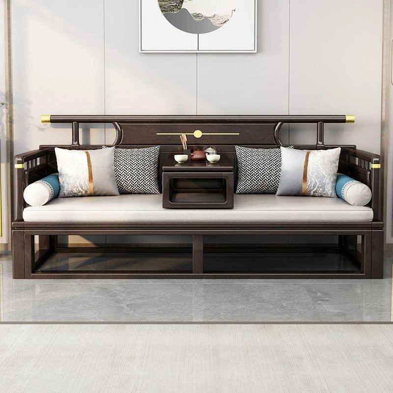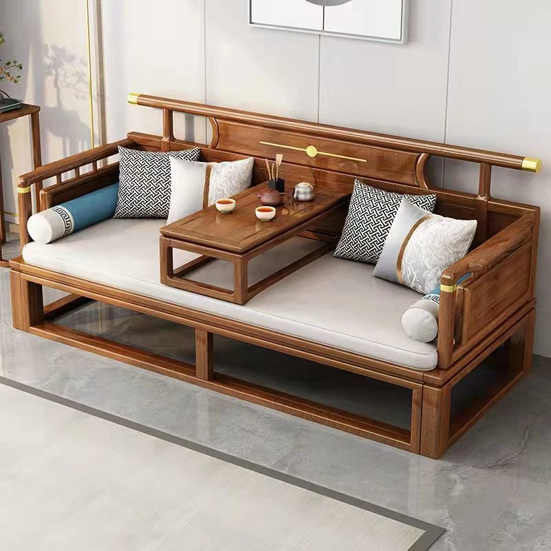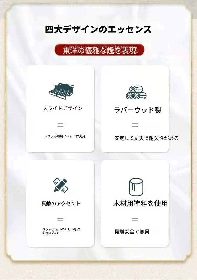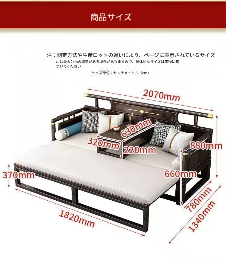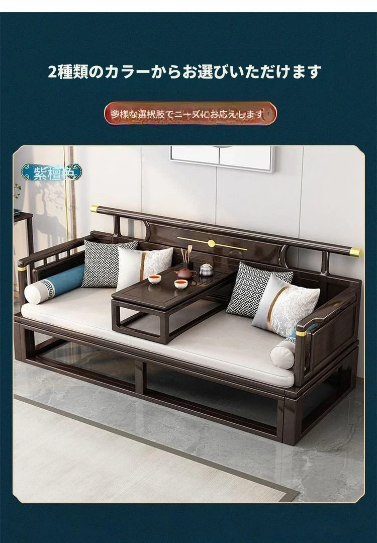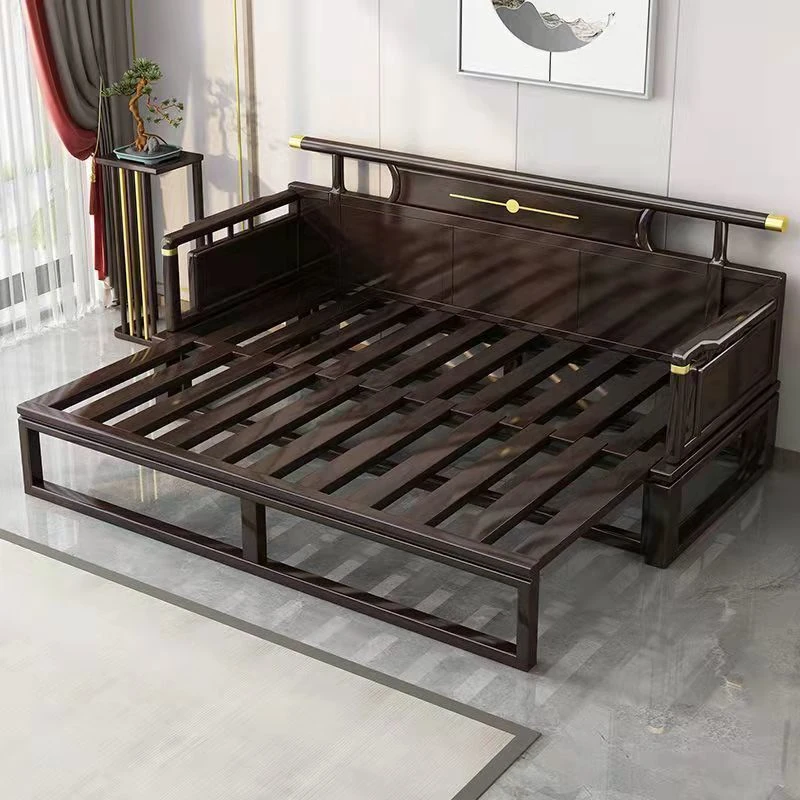 新中式スタイルの無垢材ロハンベッド - リビングや家庭に最適!コンパクトなサイズで、シンプルな伸縮式デザインのソファベッド。多機能で使いやすく、どんなお部屋にもマッチします!