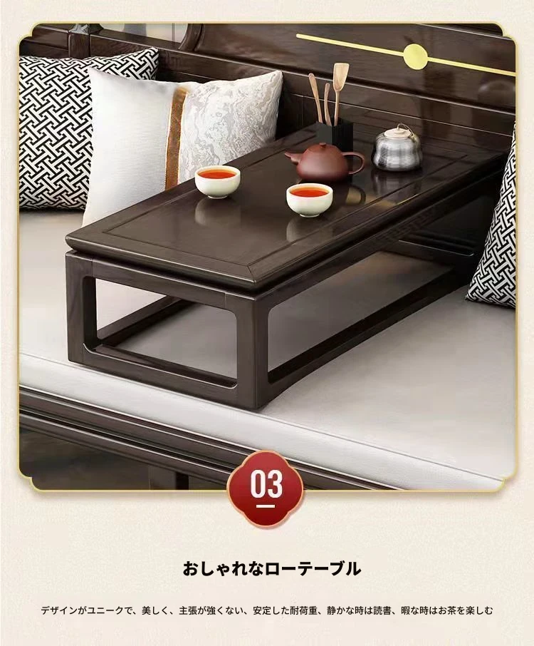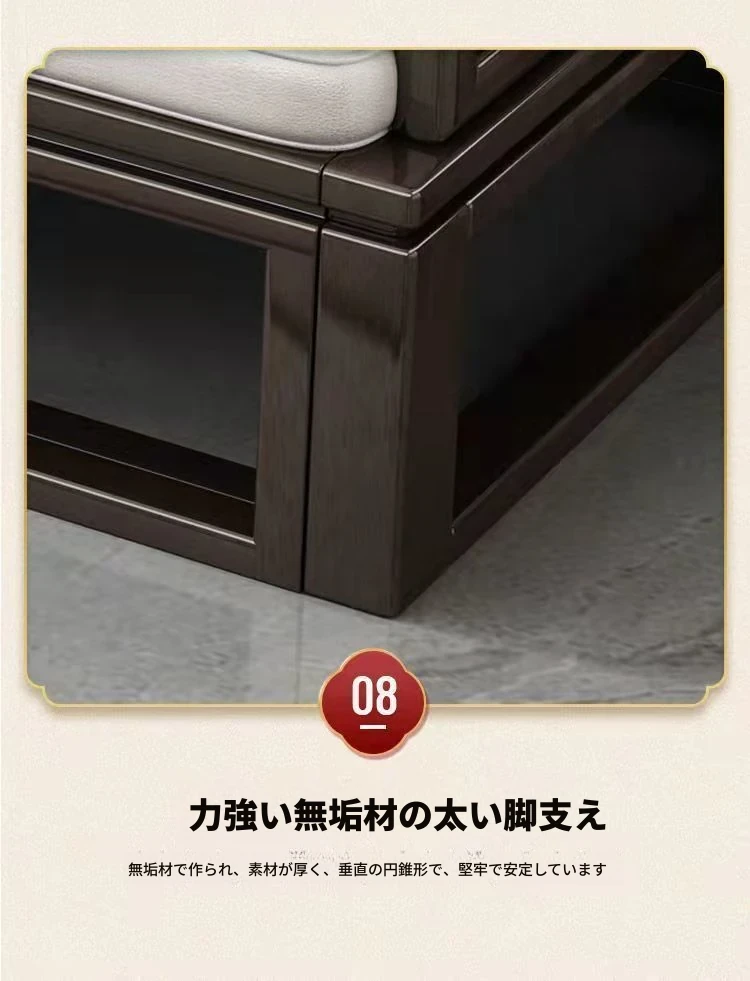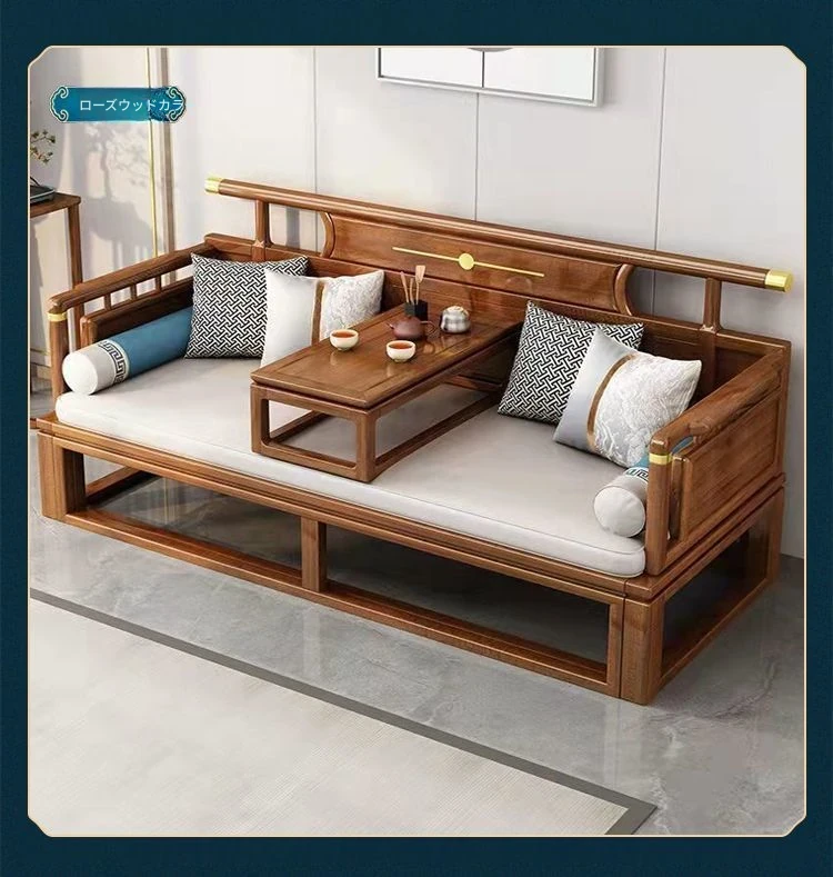 無垢材の引き出し式羅漢ベッド+坑几(クッション付き)