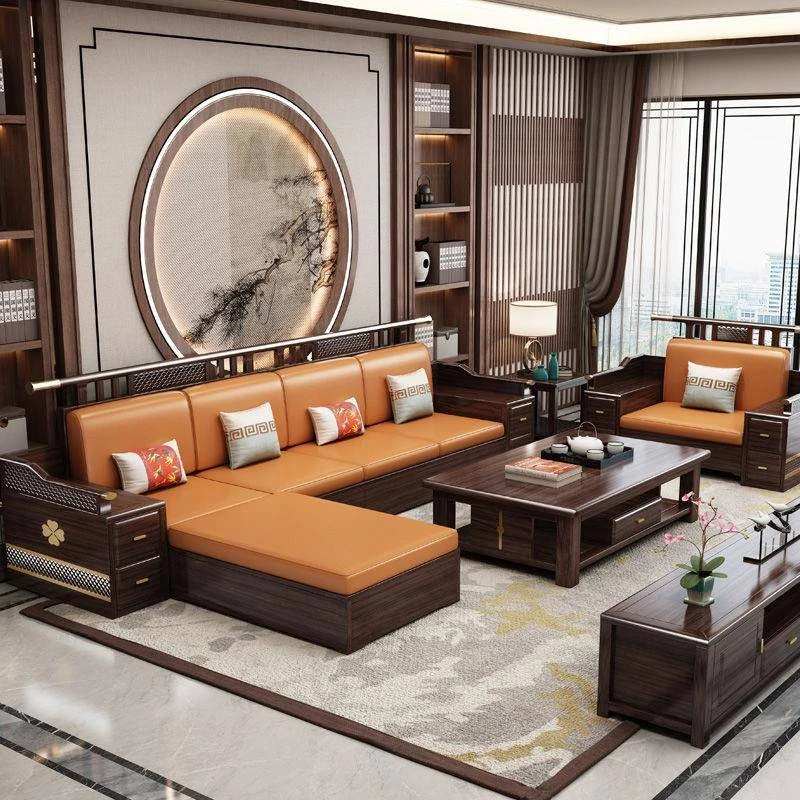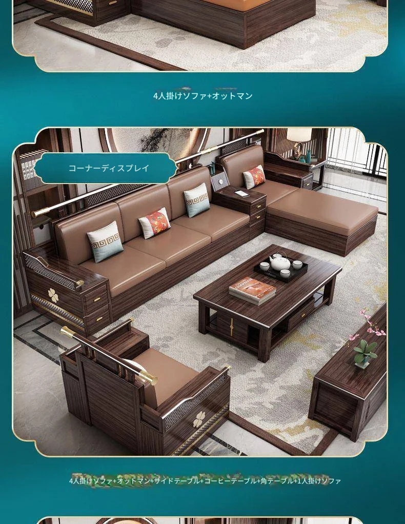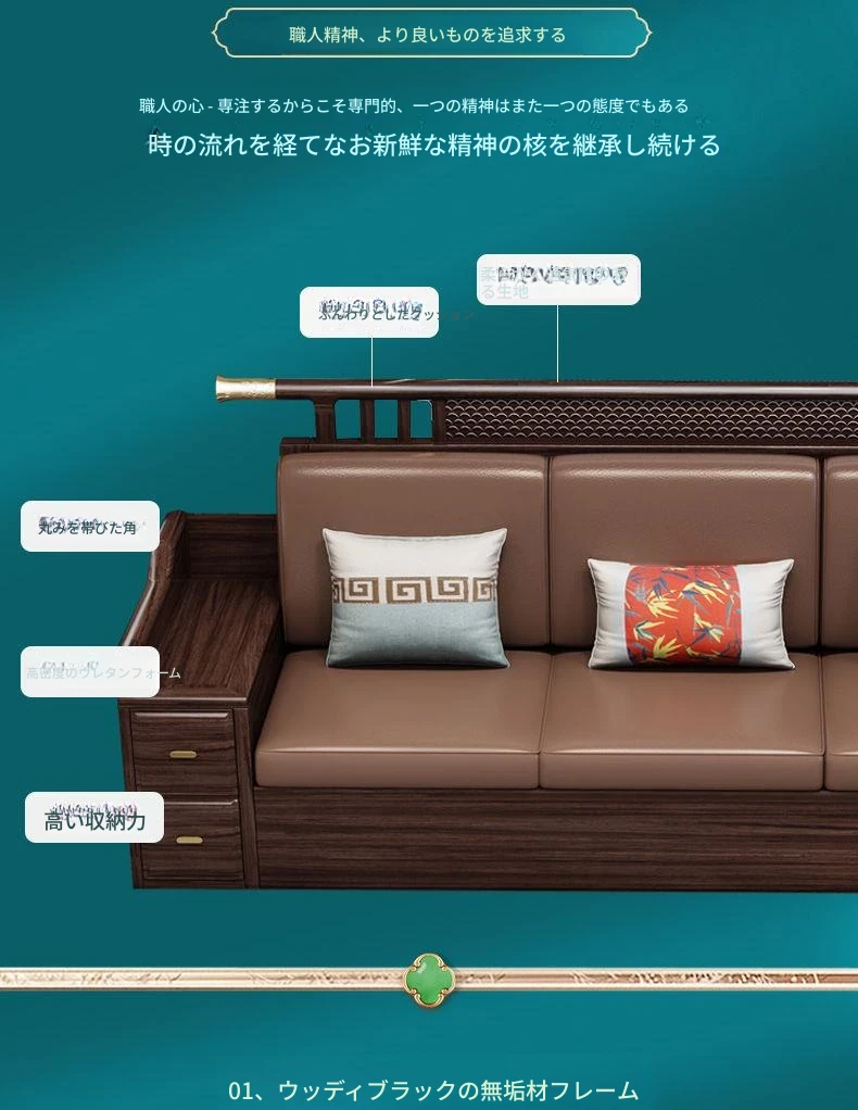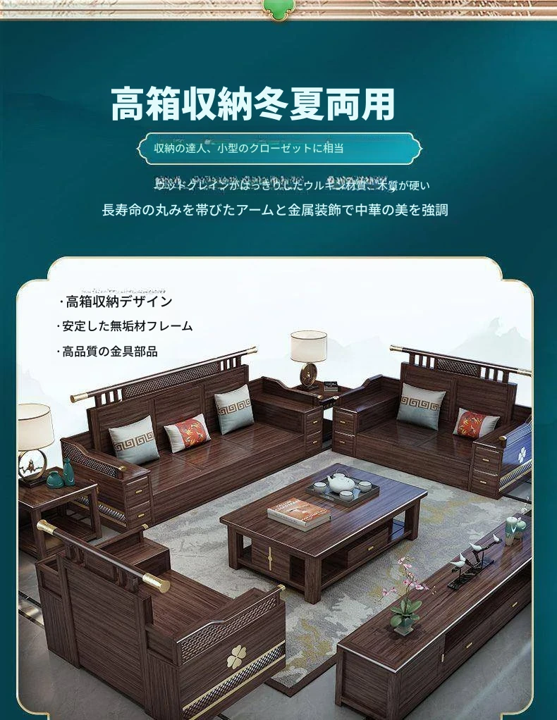 新中式ウッドブラックソファー 冬夏兼用 モダンリビング小型向け 貴妃型コーナー収納家具で快適な空間を実現!
