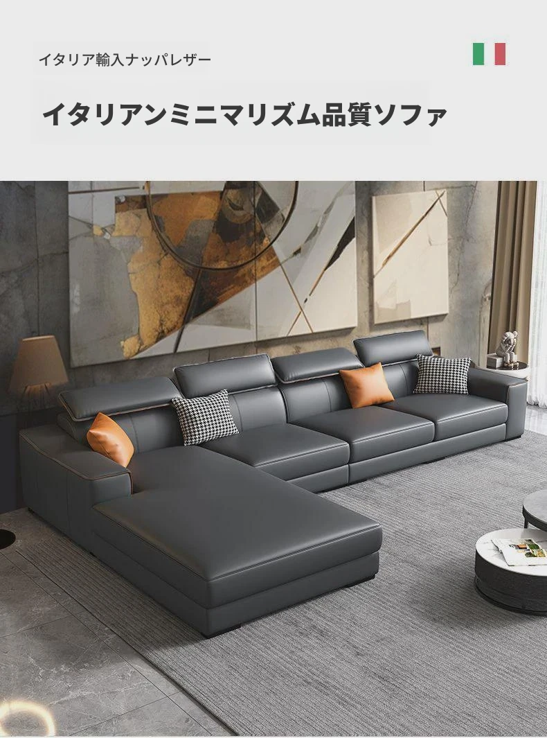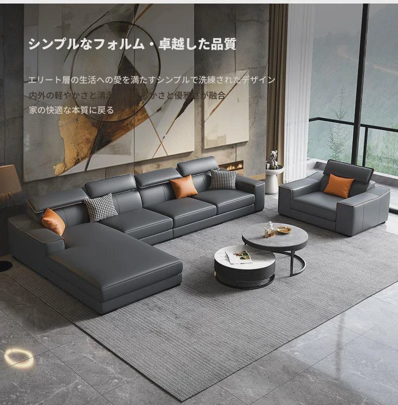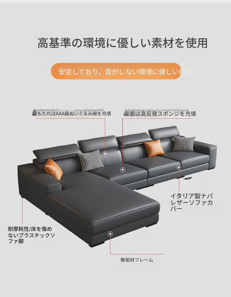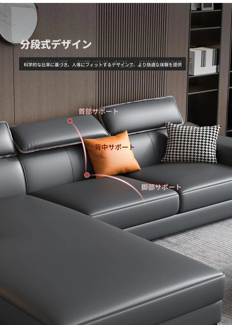 本革使用!モダンでシンプルなデザインのレザーコーナーソファ。コンパクトなリビングにもぴったり!贅沢な座り心地を実現した、サイズ調整可能なフェイスタイプ。