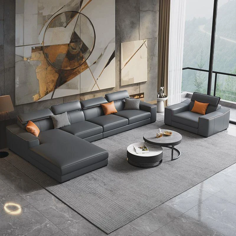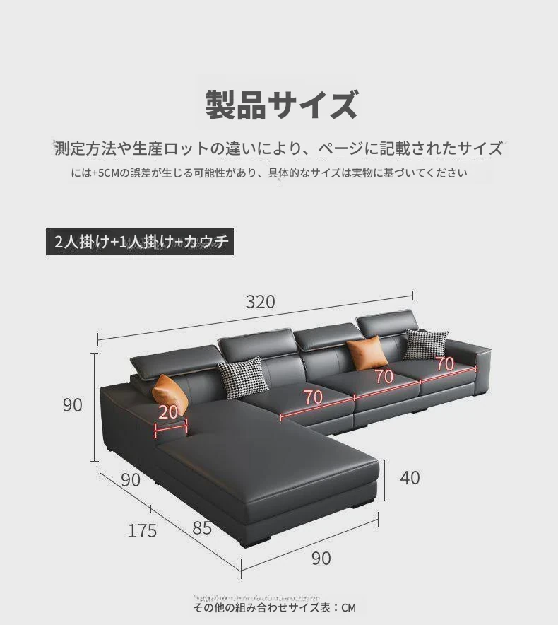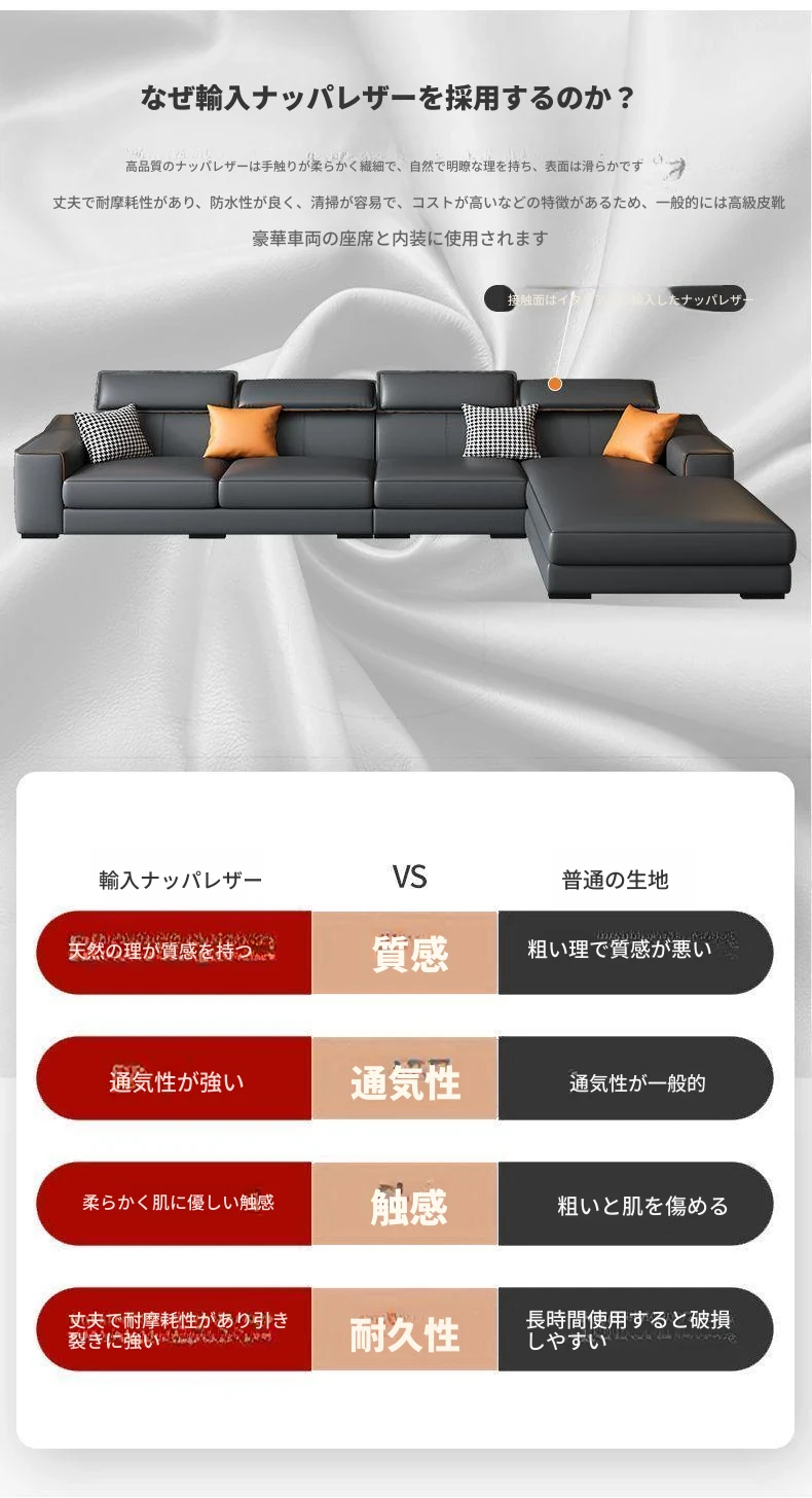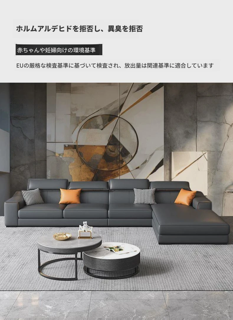 本革使用!モダンでシンプルなデザインのレザーコーナーソファ。コンパクトなリビングにもぴったり!贅沢な座り心地を実現した、サイズ調整可能なフェイスタイプ。