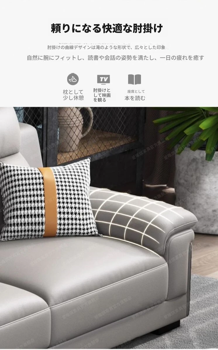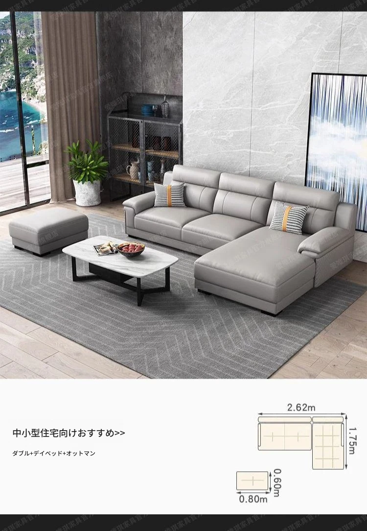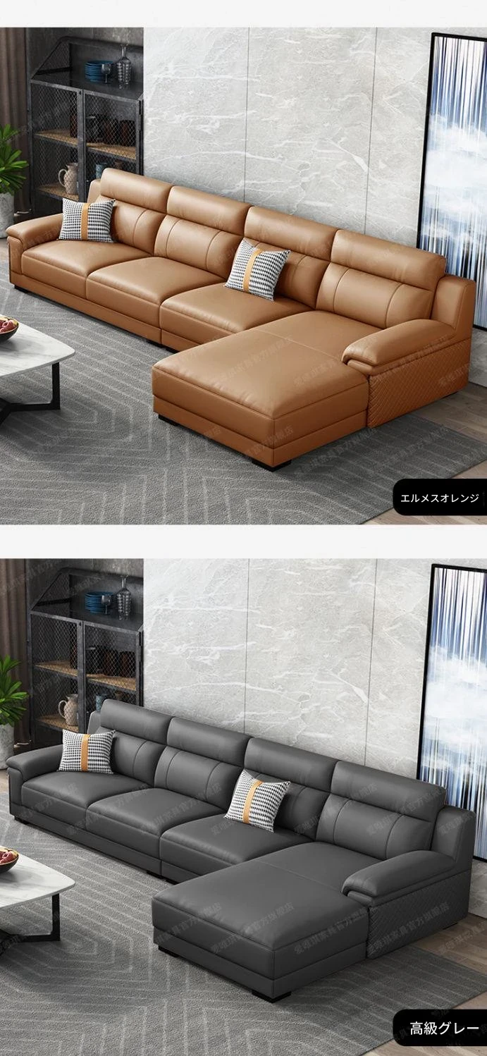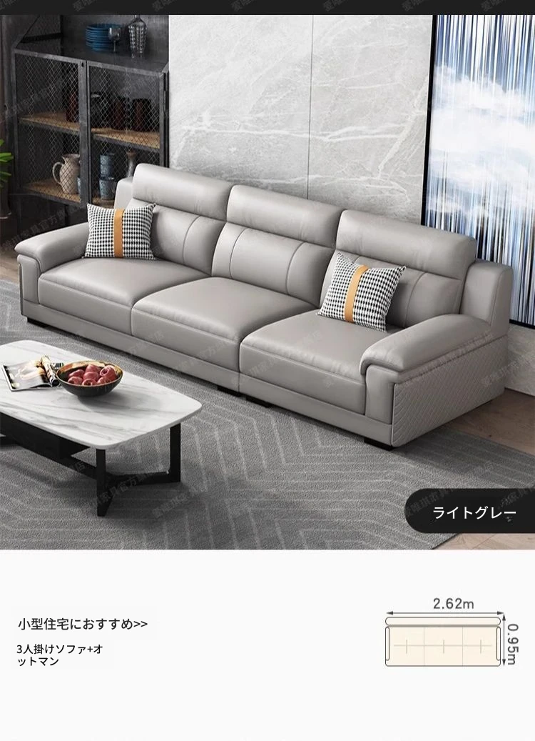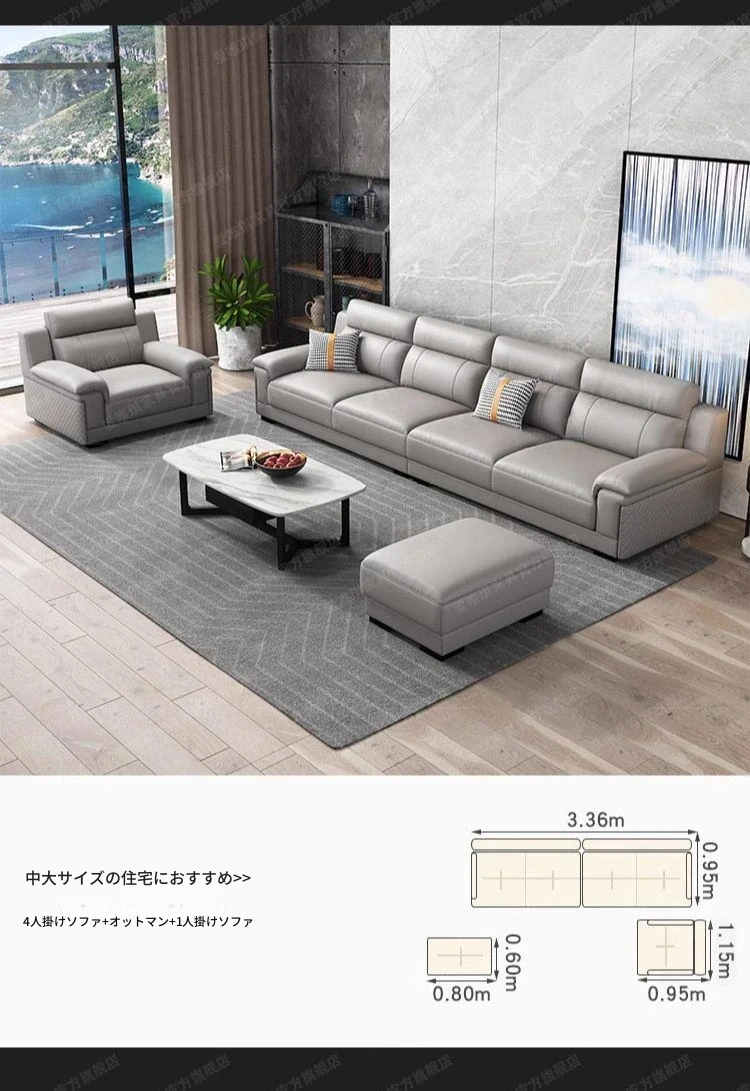 本革使用 イタリアンレザー ソファ モダンでシンプルなデザイン 小型住宅向けの家具セット リビングに最適な高級感溢れる皮革ソファ
