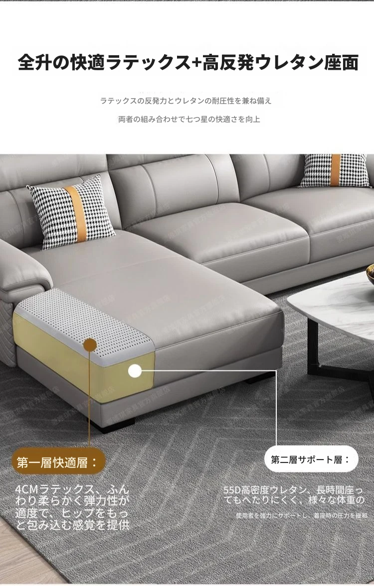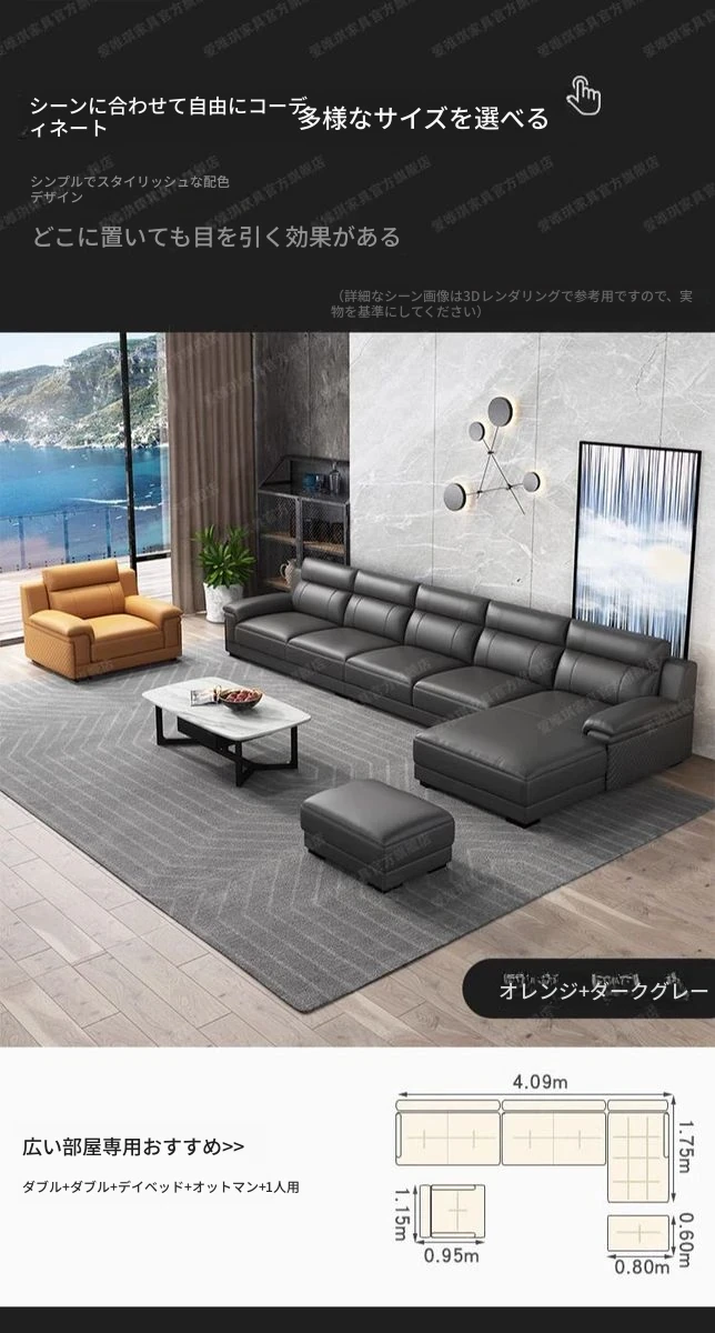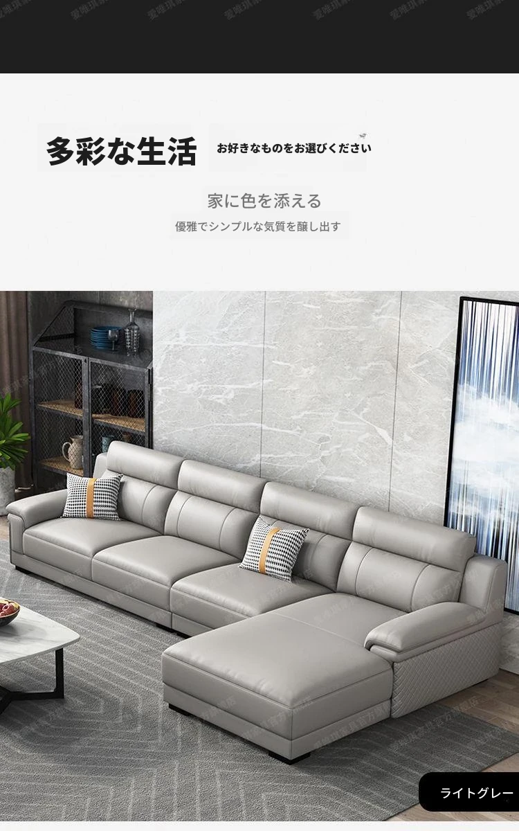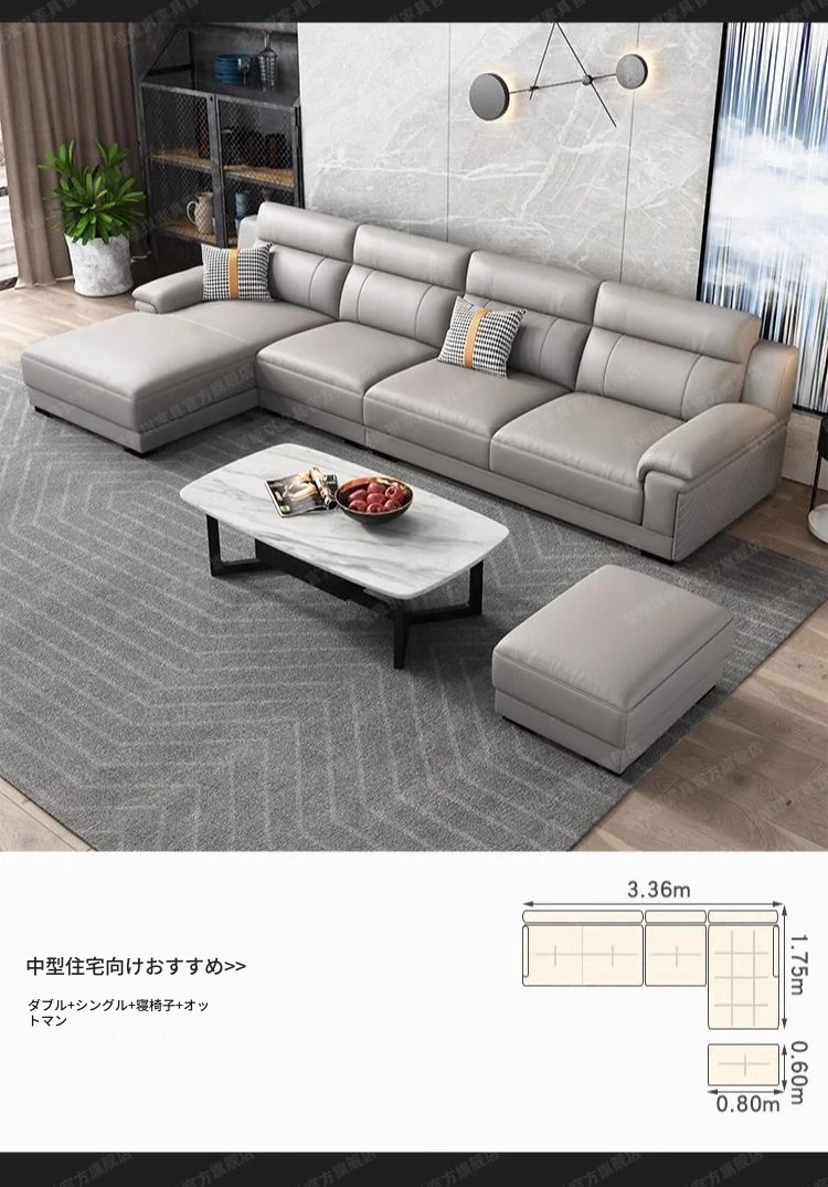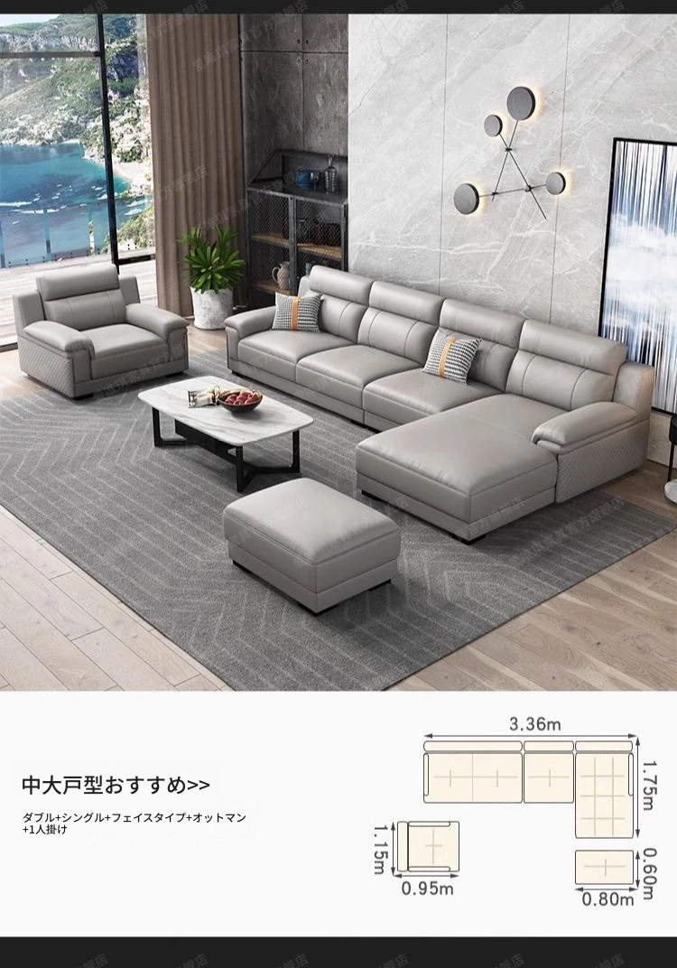 本革使用 イタリアンレザー ソファ モダンでシンプルなデザイン 小型住宅向けの家具セット リビングに最適な高級感溢れる皮革ソファ